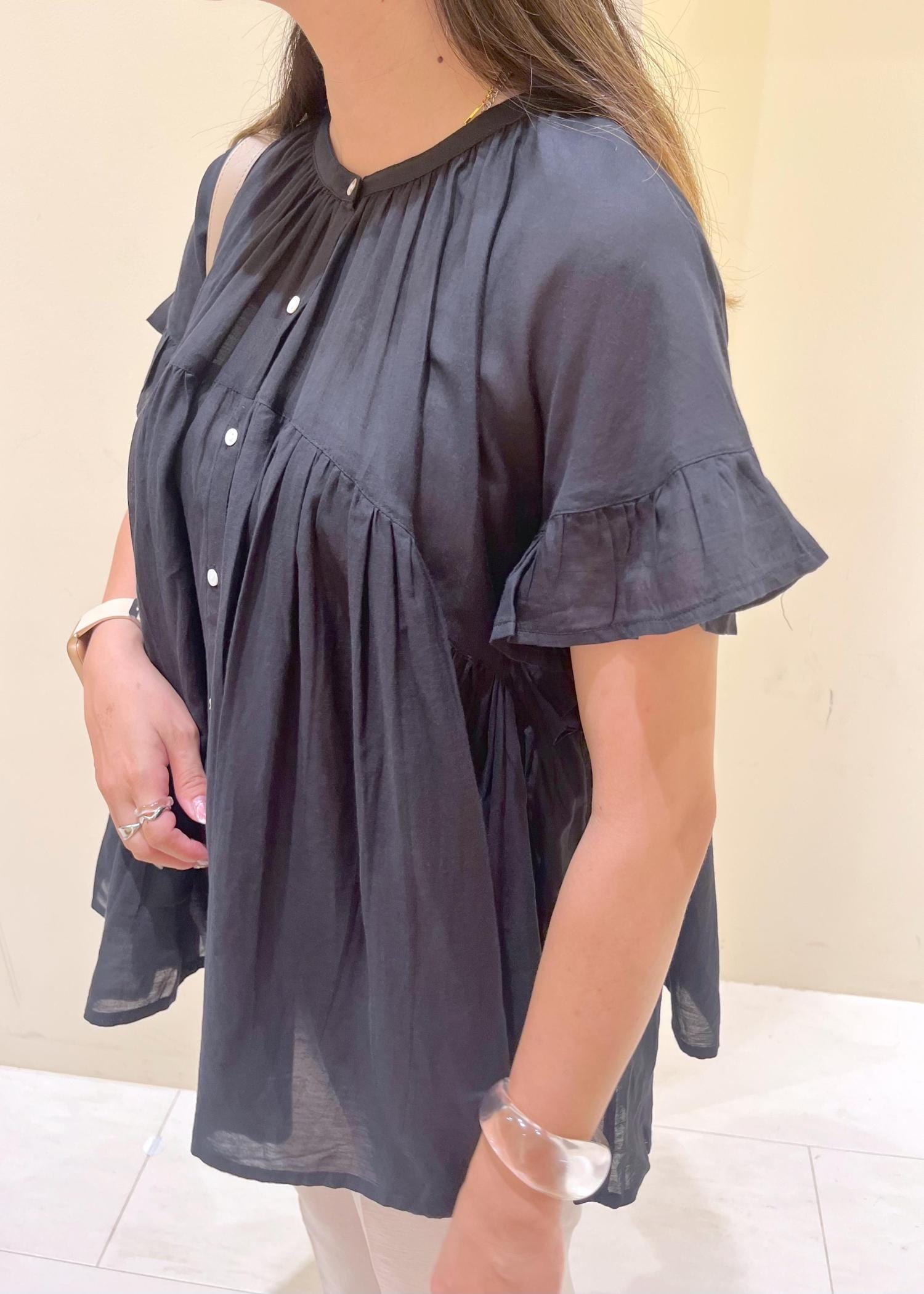 ROPÉ PICNICコットンボイルギャザーブラウス/リンクコーデブラック / 38¥4,994レビューキッズリンクも楽しめるゆったりシルエットのギャザーブラウス。