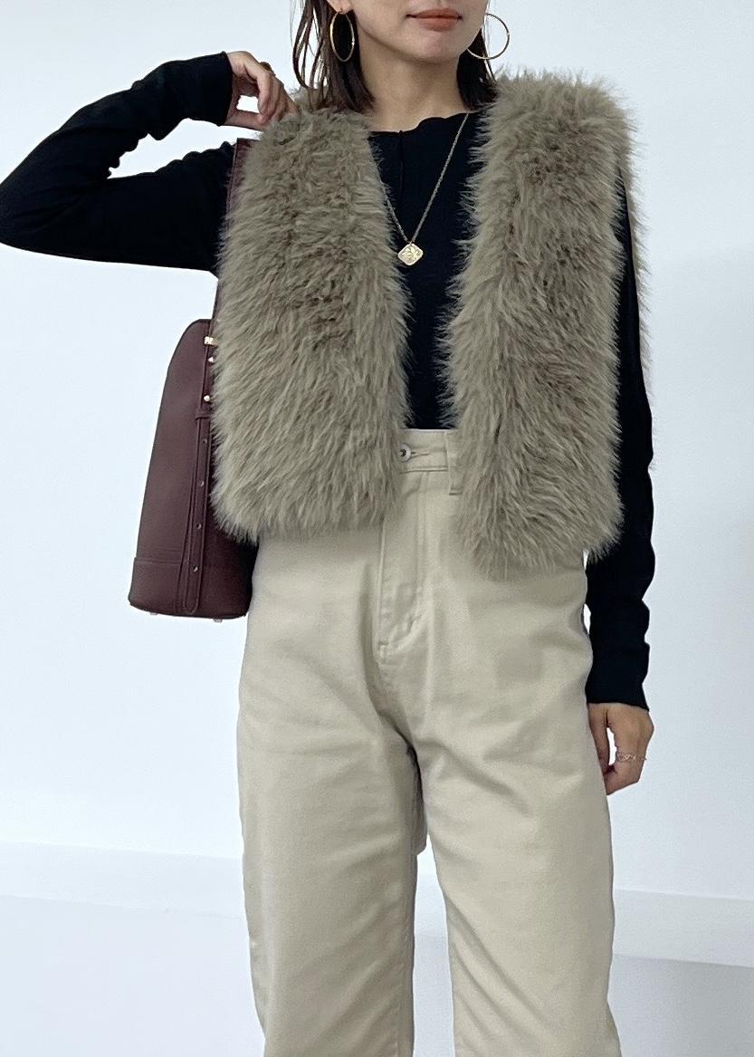 ふわふわした手触りが気持ちいいファーベストは、着るだけで秋冬らしくなるおすすめの1着。