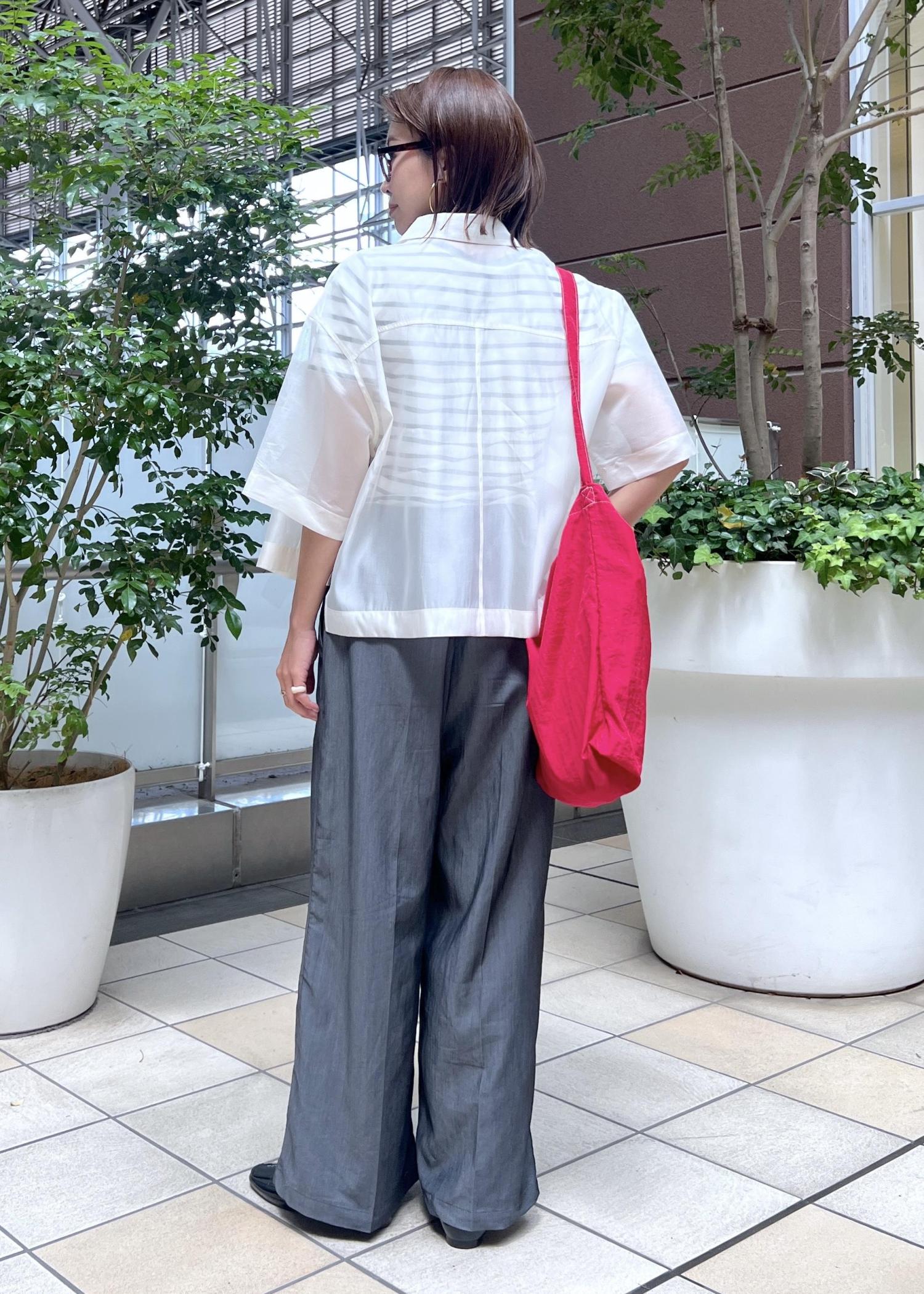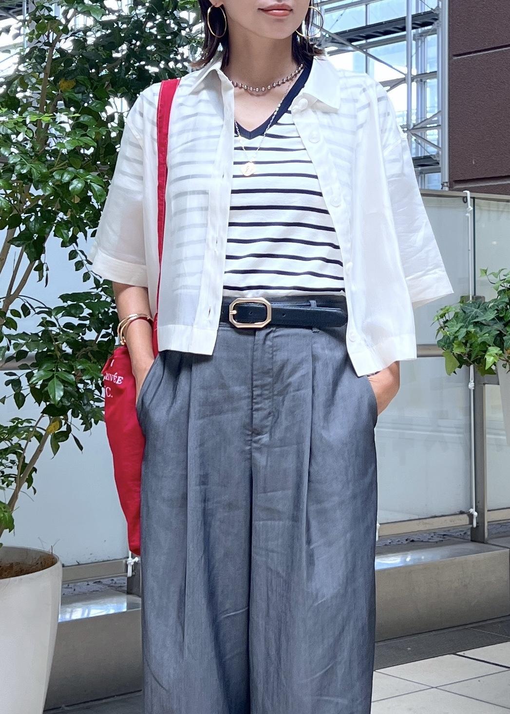全体的に透け感のある軽い素材感で、暑い時期にも羽織りやすい生地感。