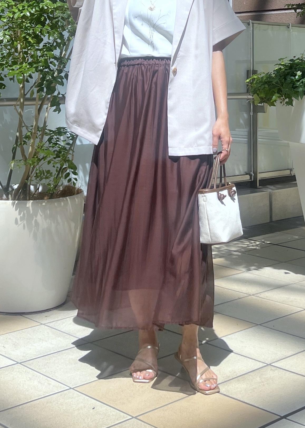 ROPÉ PICNICエアリーシアーギャザーロングスカートダークブラウン / 38¥6,490レビュー表地はやや透け感のある軽い生地ですが、裏地付きなのでペチコート無しで透け感を気にせず着られます。