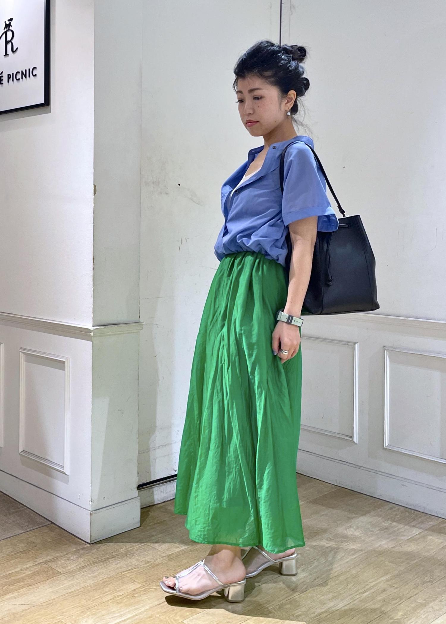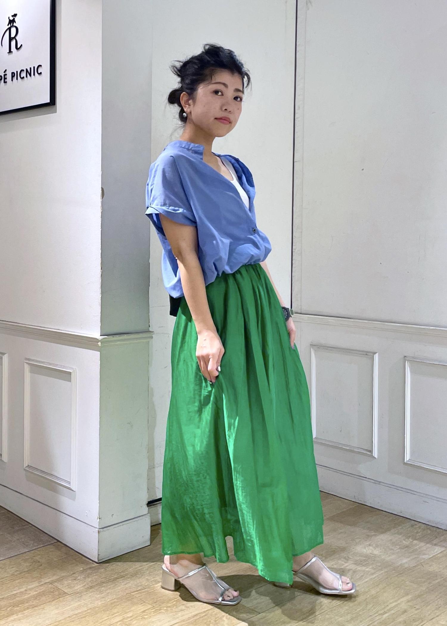 ROPÉ PICNICエアリーシアーギャザーロングスカートグリーン / 38¥6,490レビュー軽いシアーの素材が見た目にも涼しげです♪