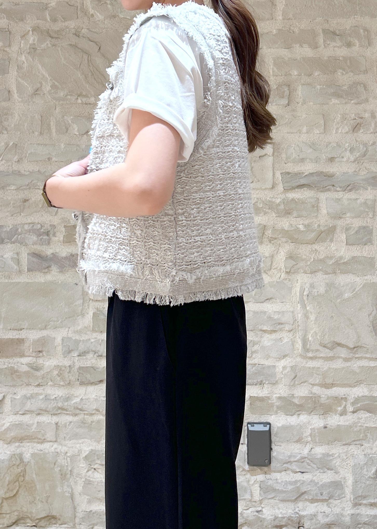 ツイードジレ×ボトムでキレイめカジュアルコーデ