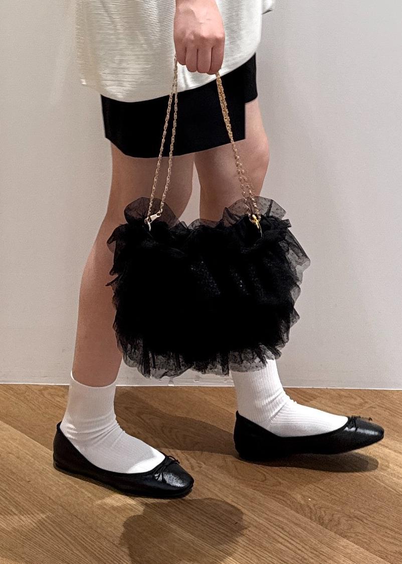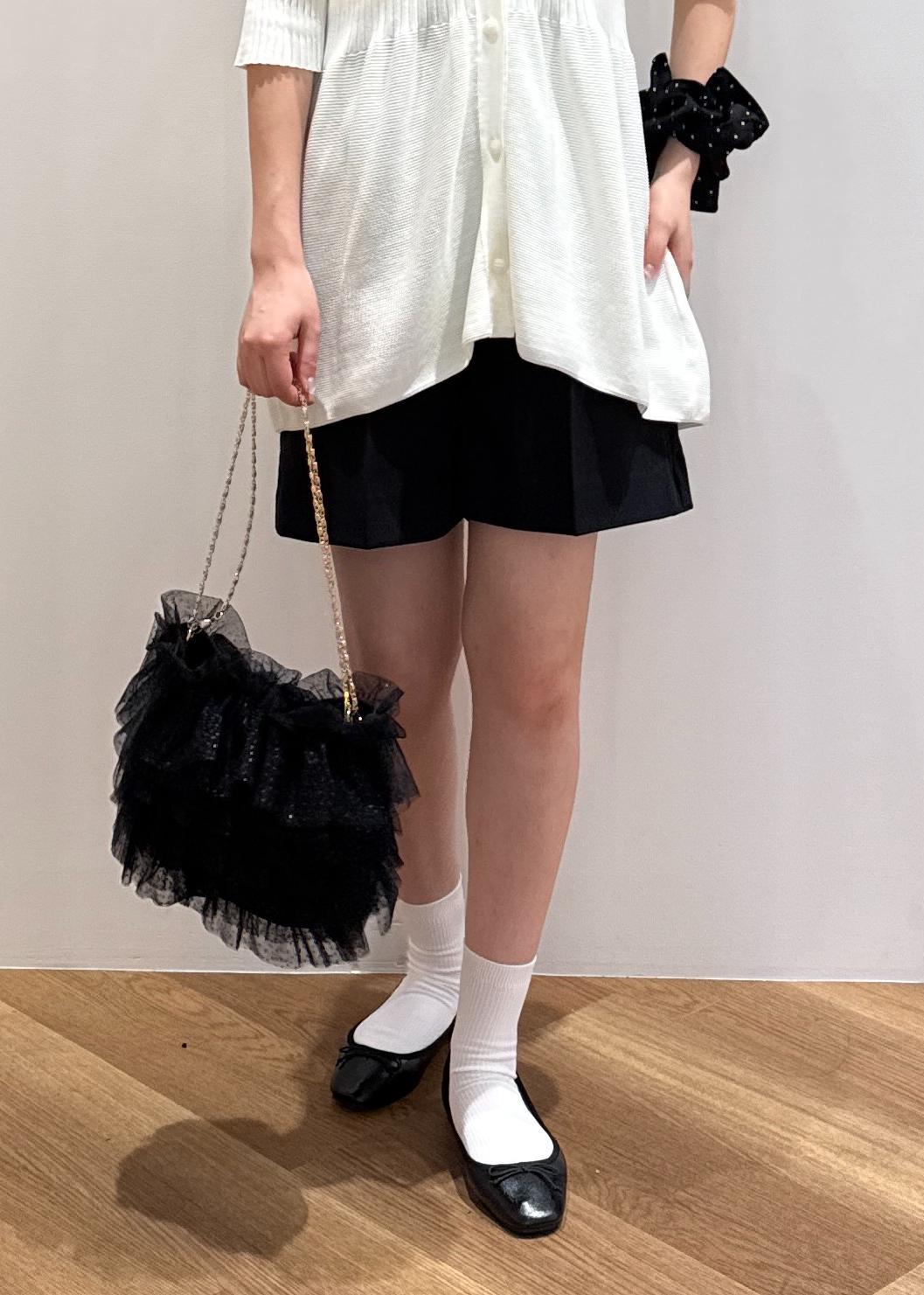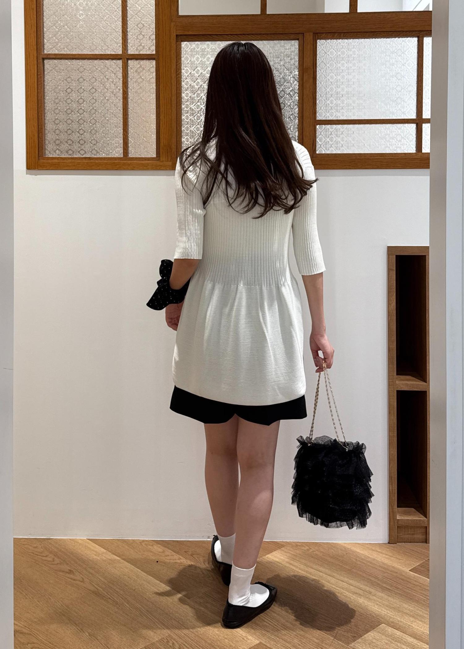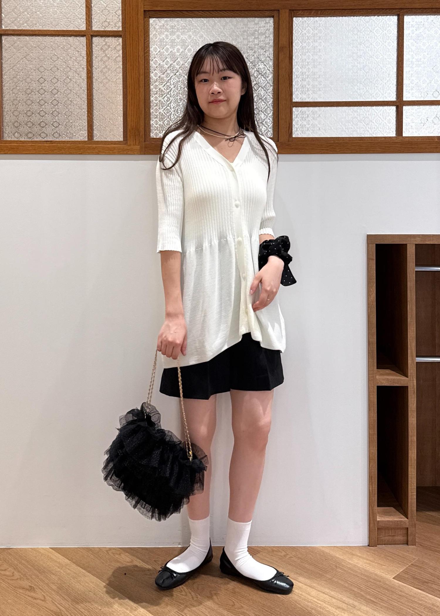 カラーはブラックとホワイトのモノトーンで合わせ、甘くなりすぎないコーディネートにしました。