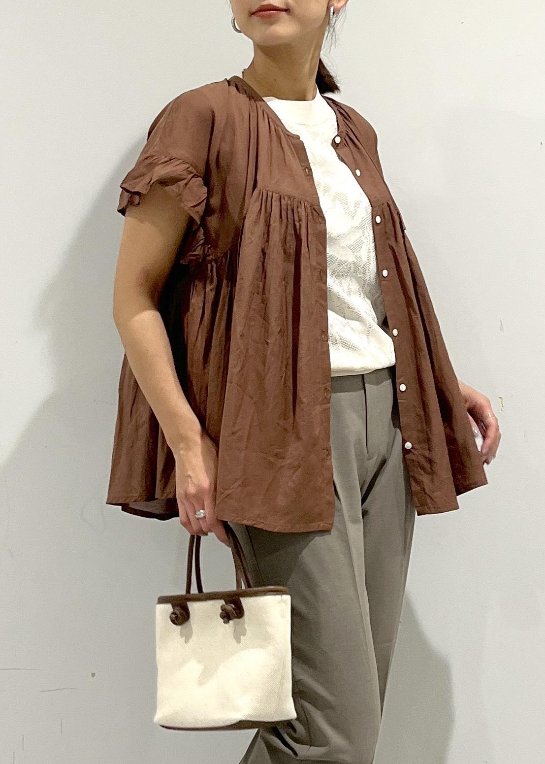 ブラウン系でまとめて、今から秋まで使えるコーディネートに。