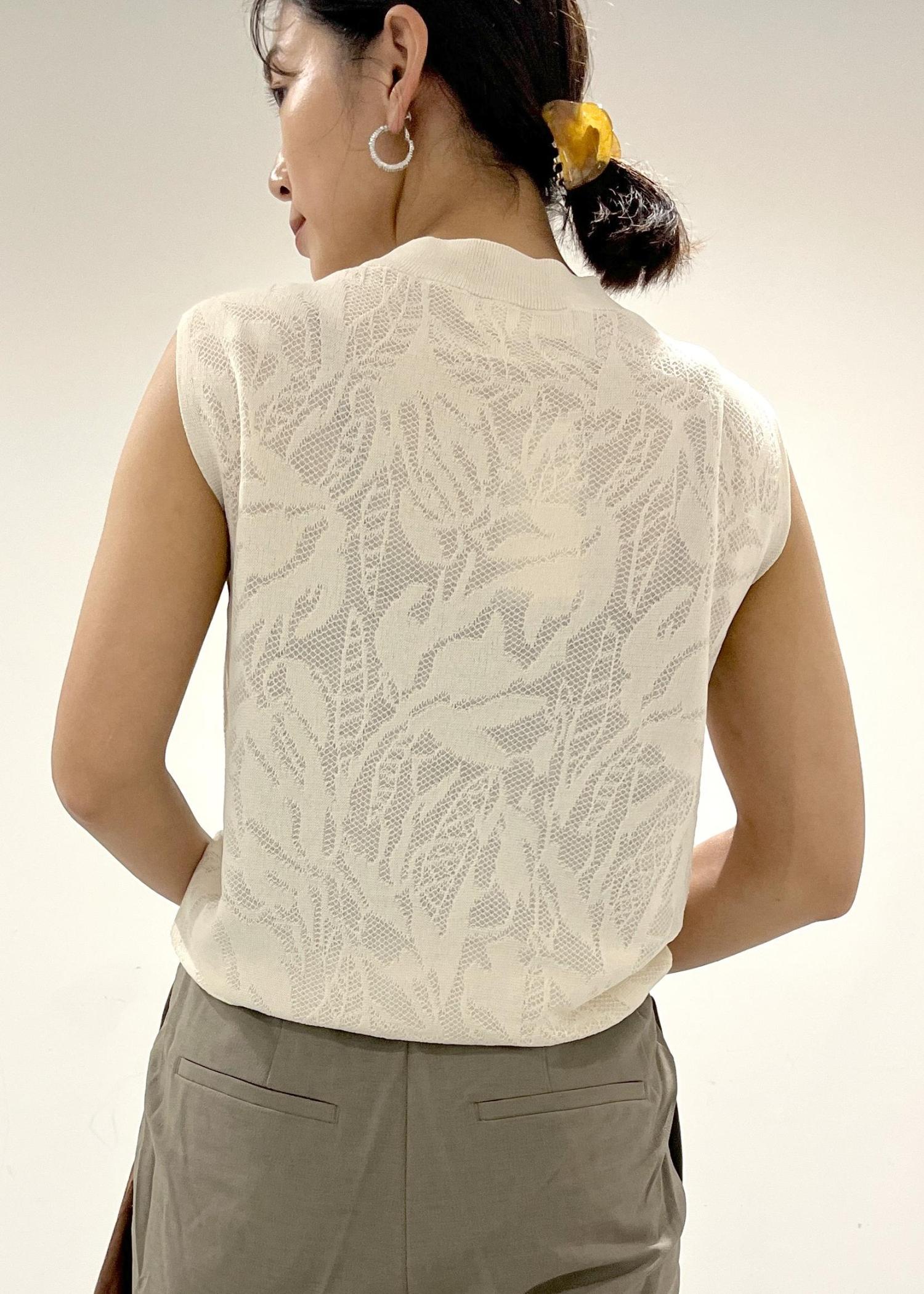 インナーのトップスも透かし編みで涼しげなアイテムにしてみました。