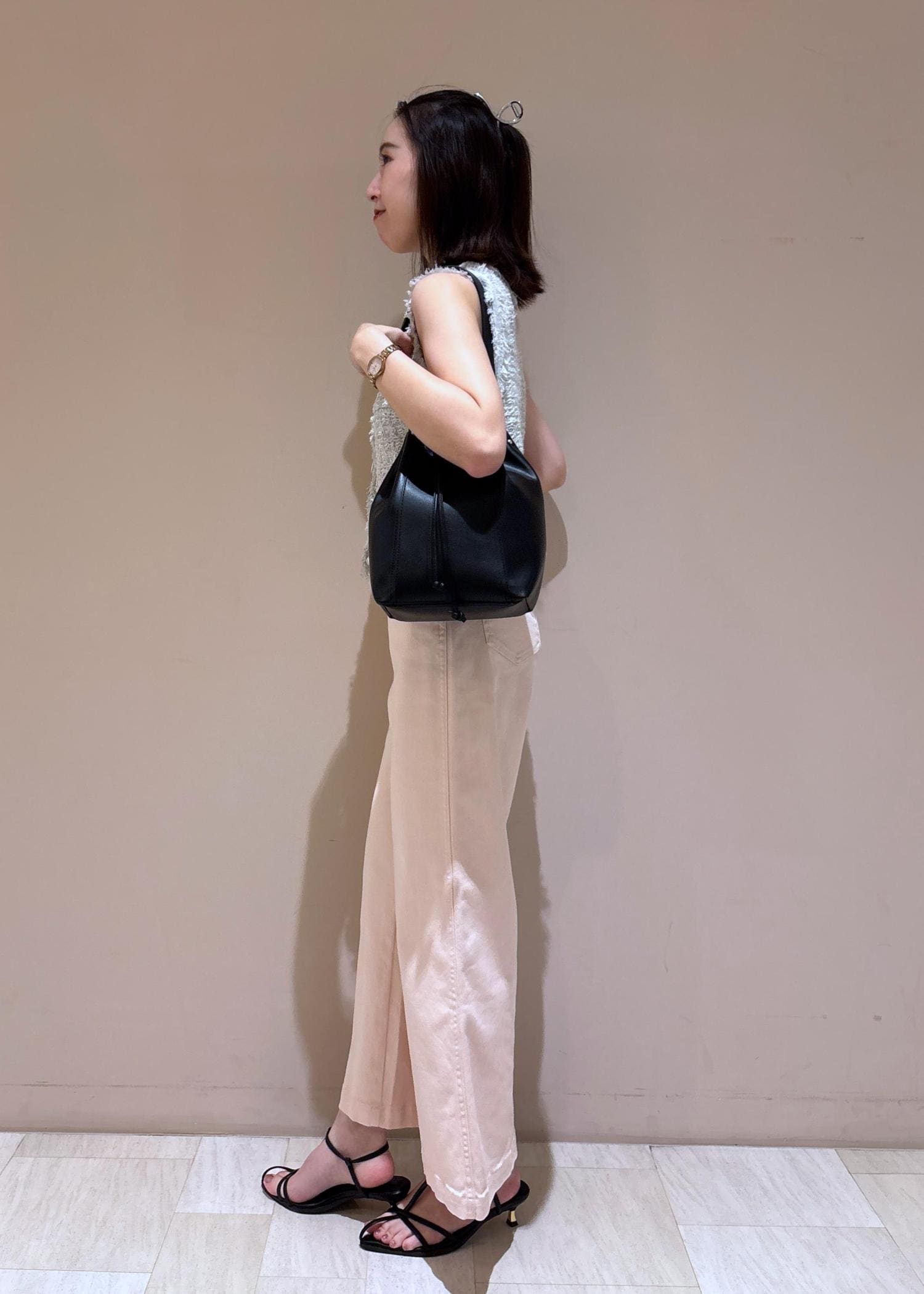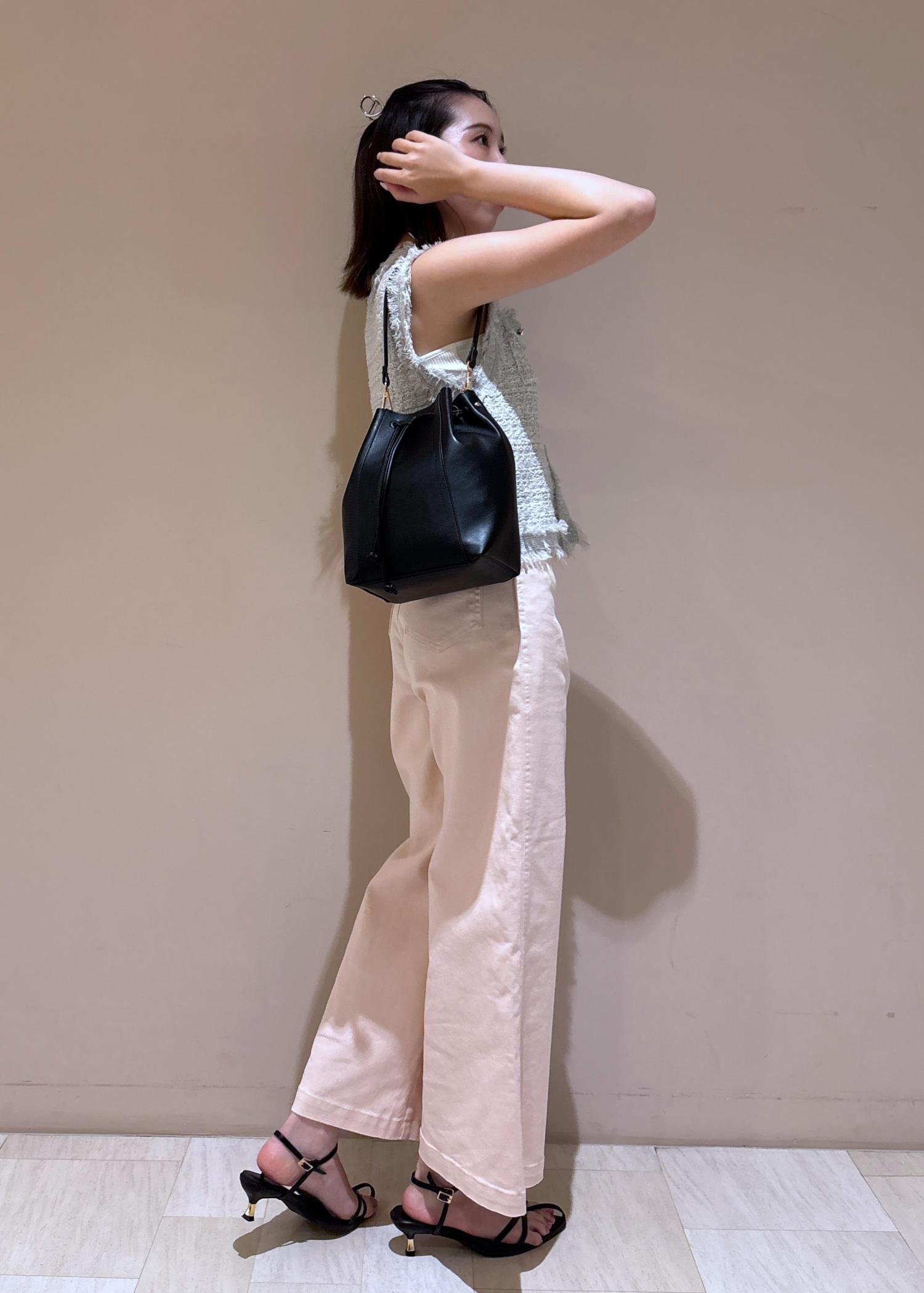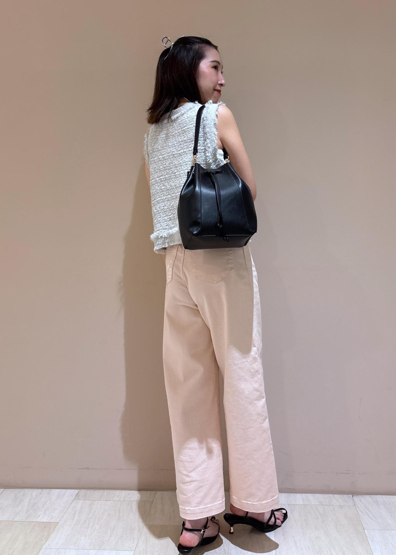 甘くなり過ぎないようにバッグと足元はブラックで統一。