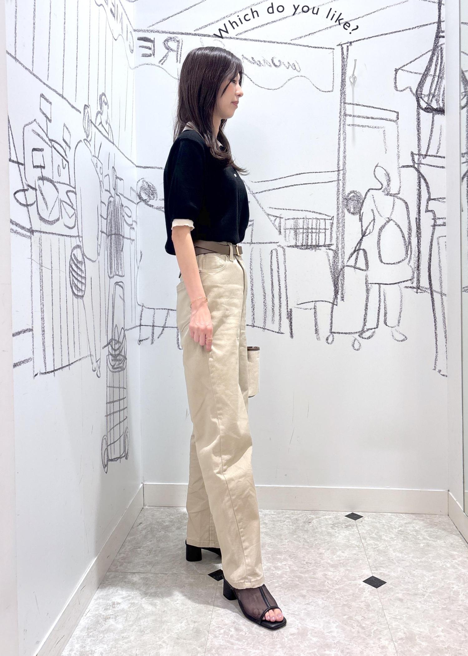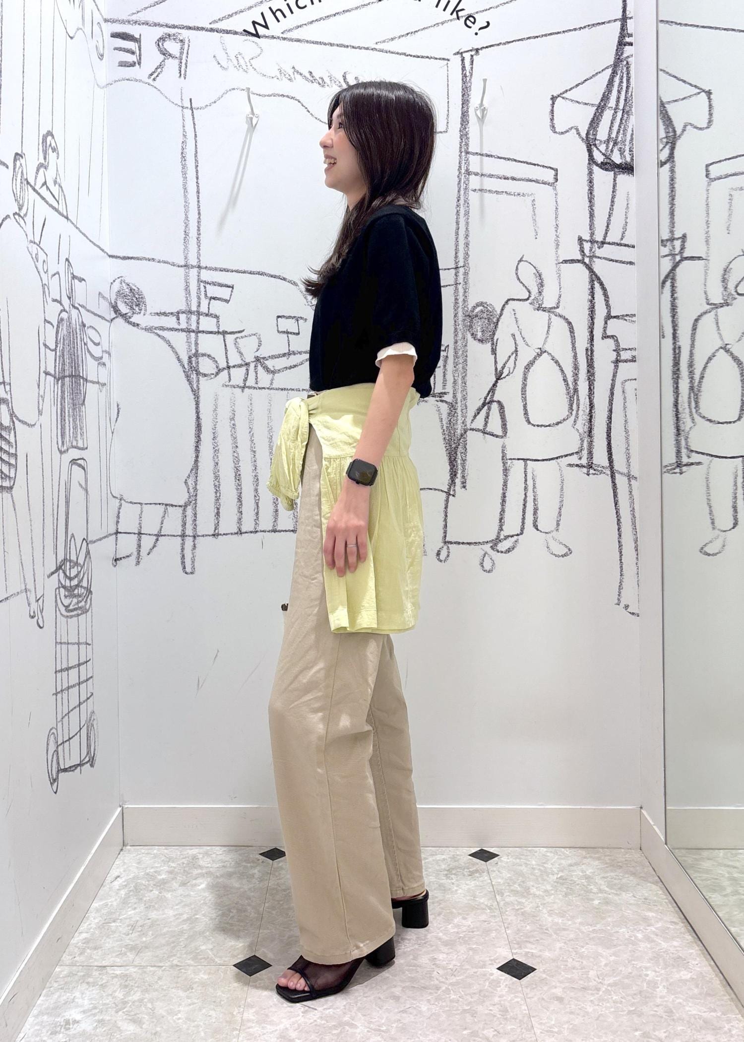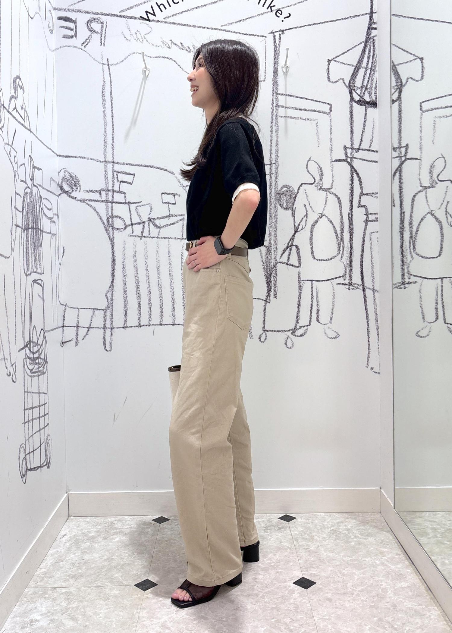 ワイドすぎないシルエットなので、トップスも合わせやすいです。