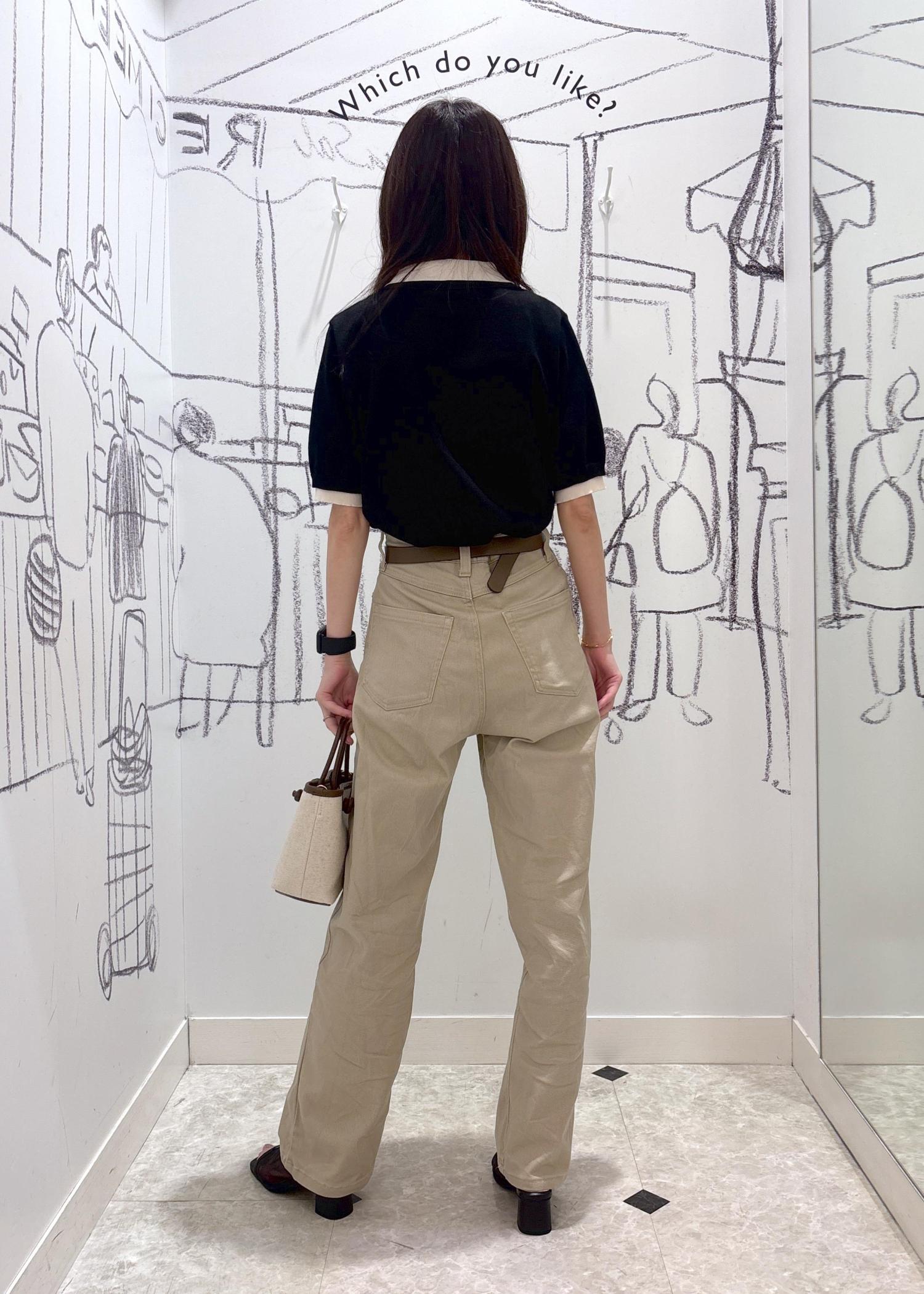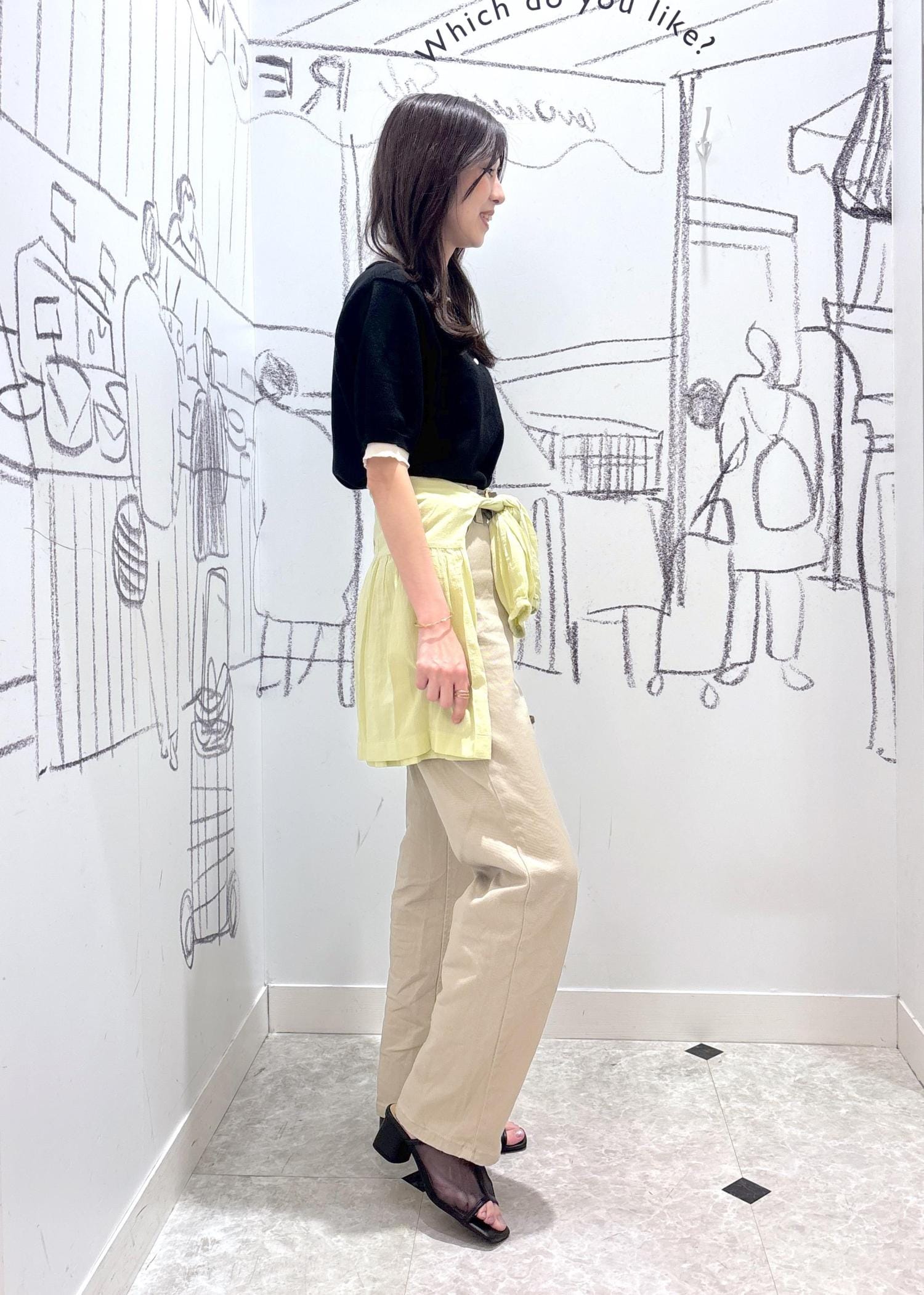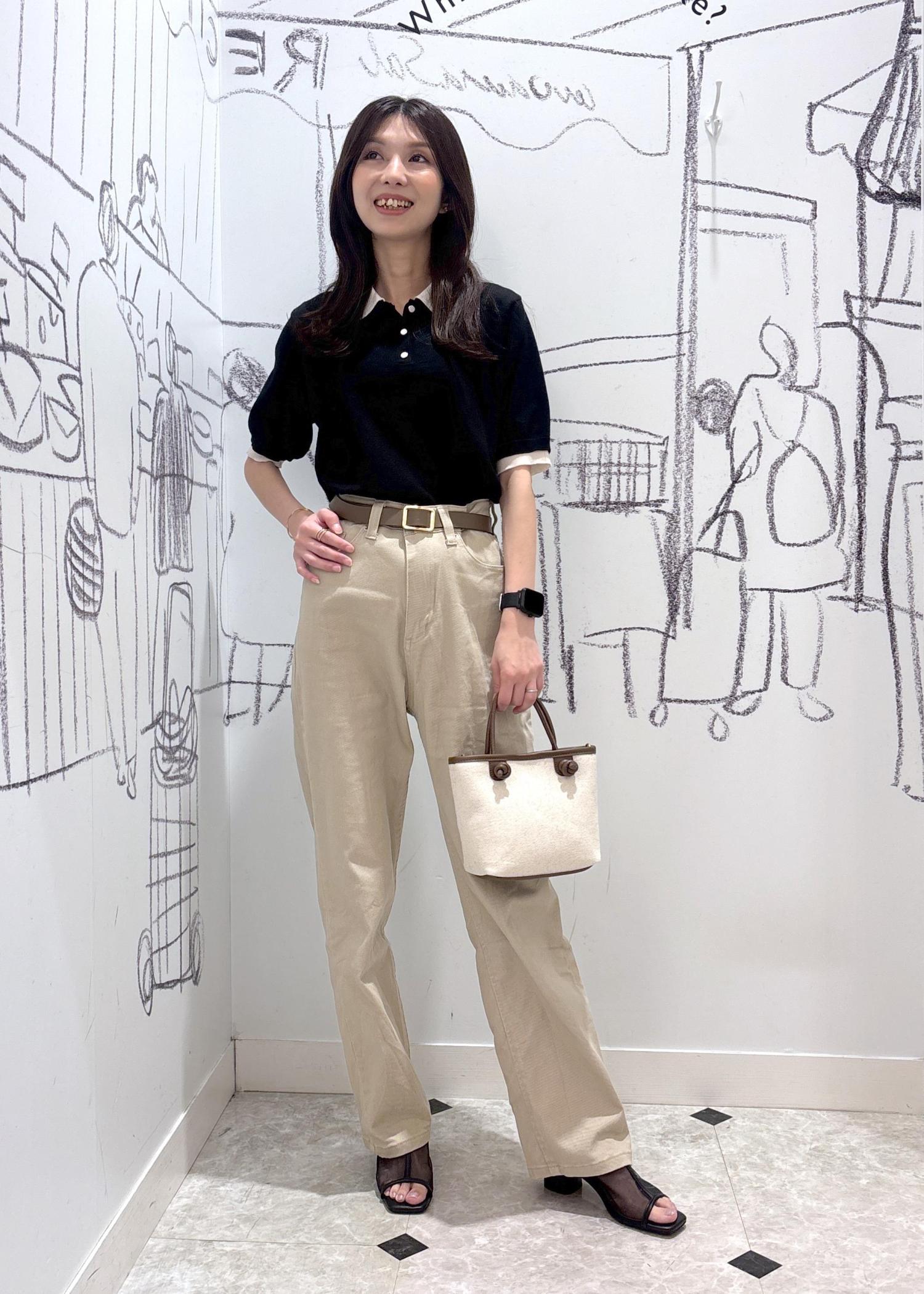 ワイドすぎないシルエットなので、トップスも合わせやすいです。