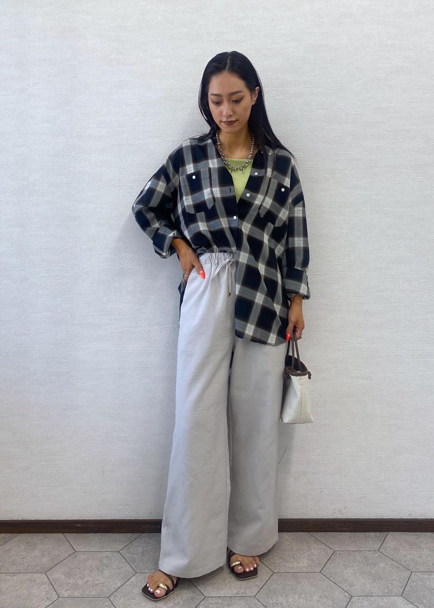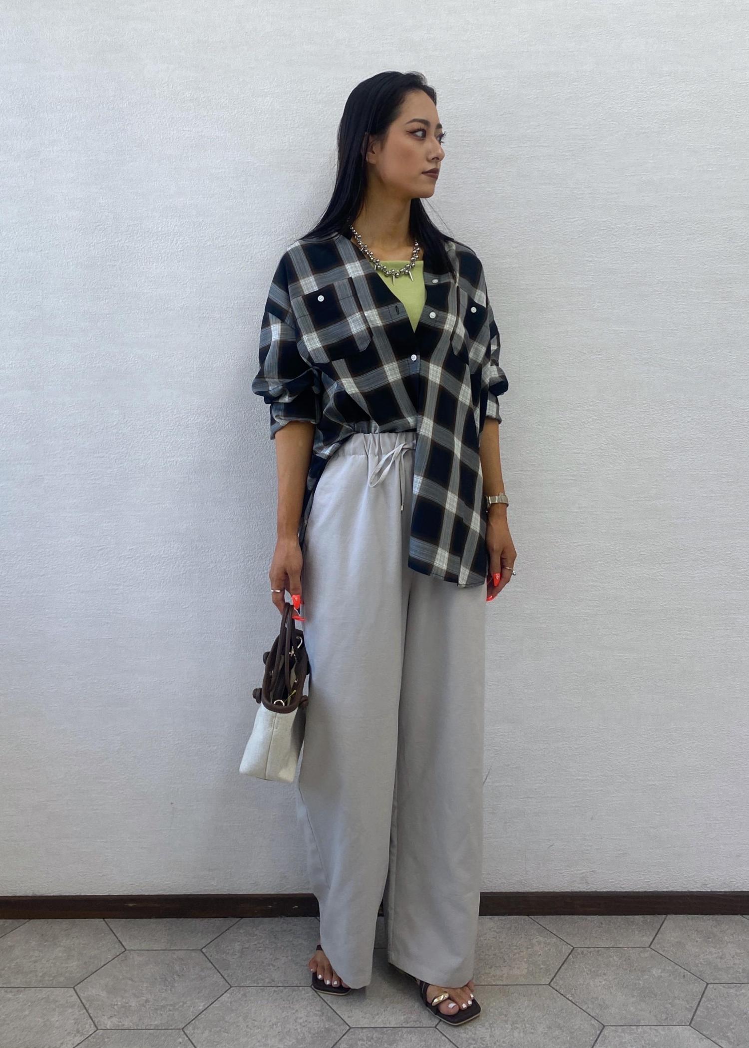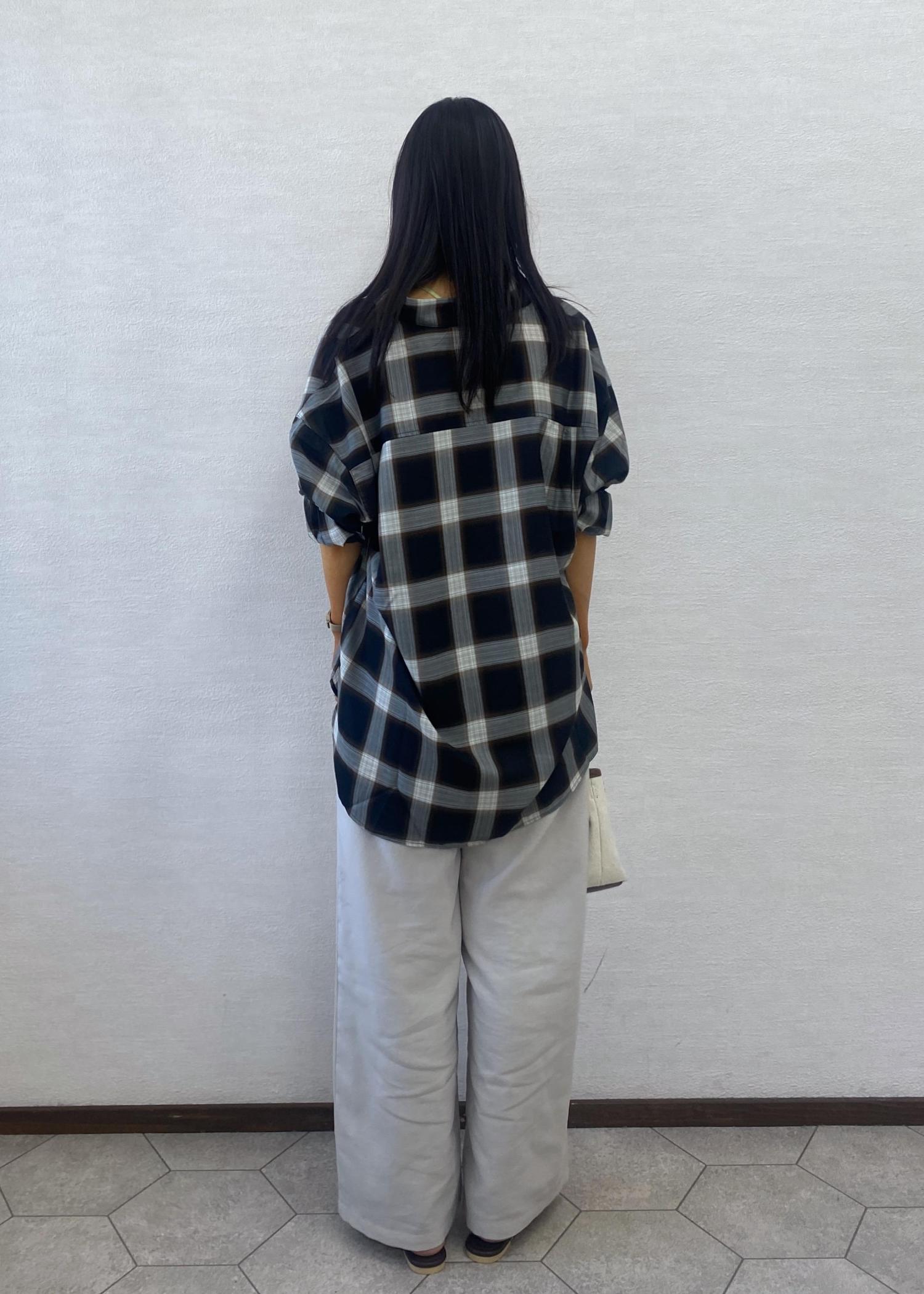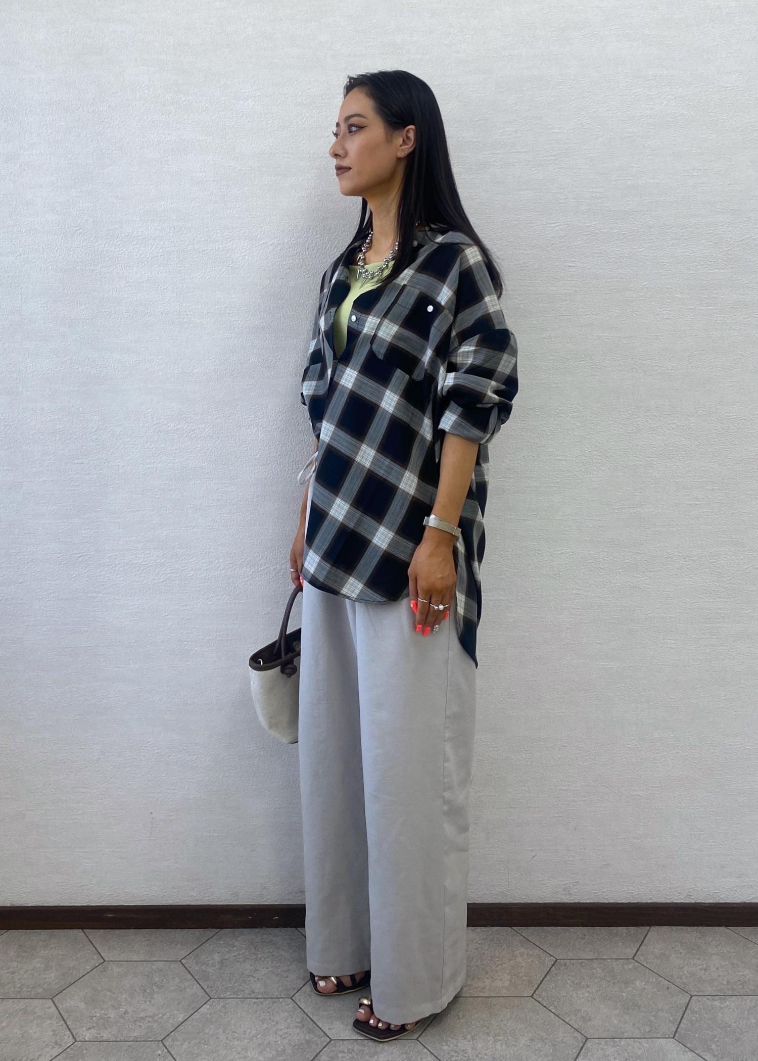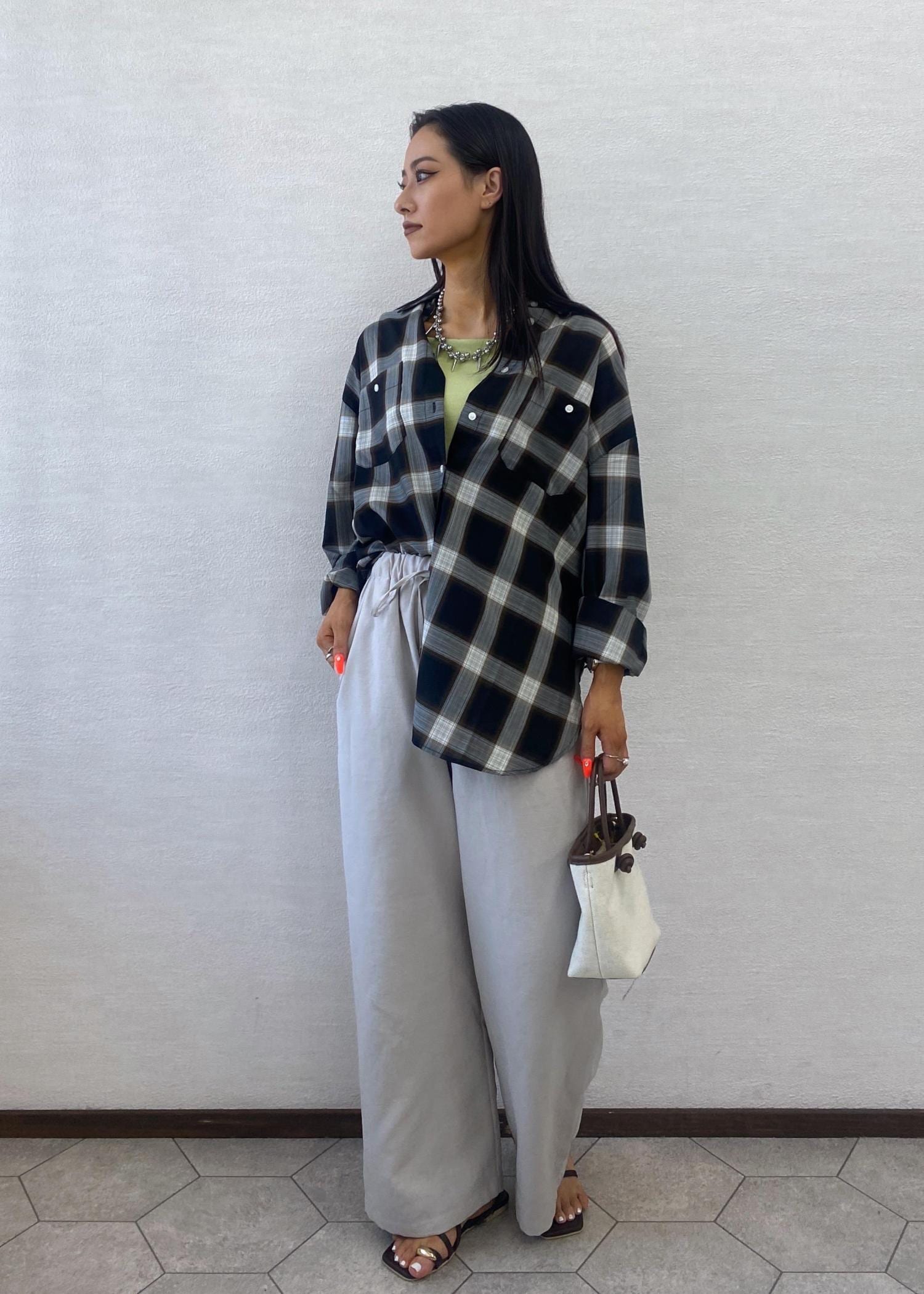 秋を先取りできるチェック柄のシャツの大人カジュアルなコーディネートです。