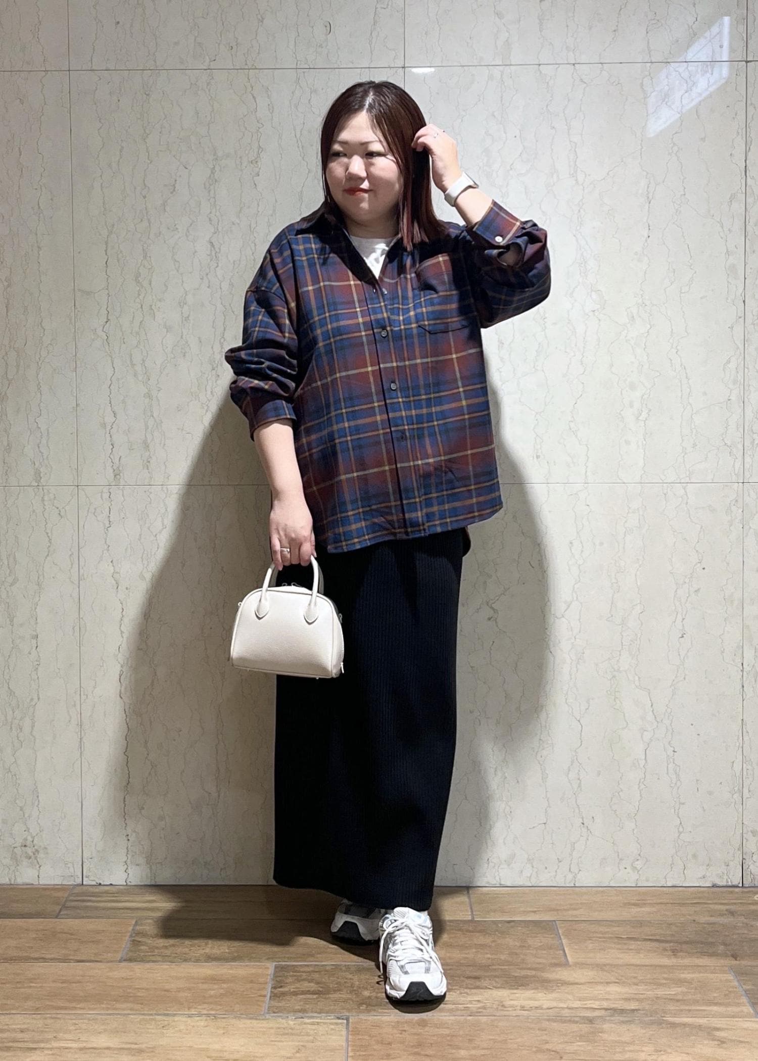 チェック柄キャミワンピースのインナーにブラックのシンプルなニットを合わせた晩夏にピッタリなコーディネートです☺︎