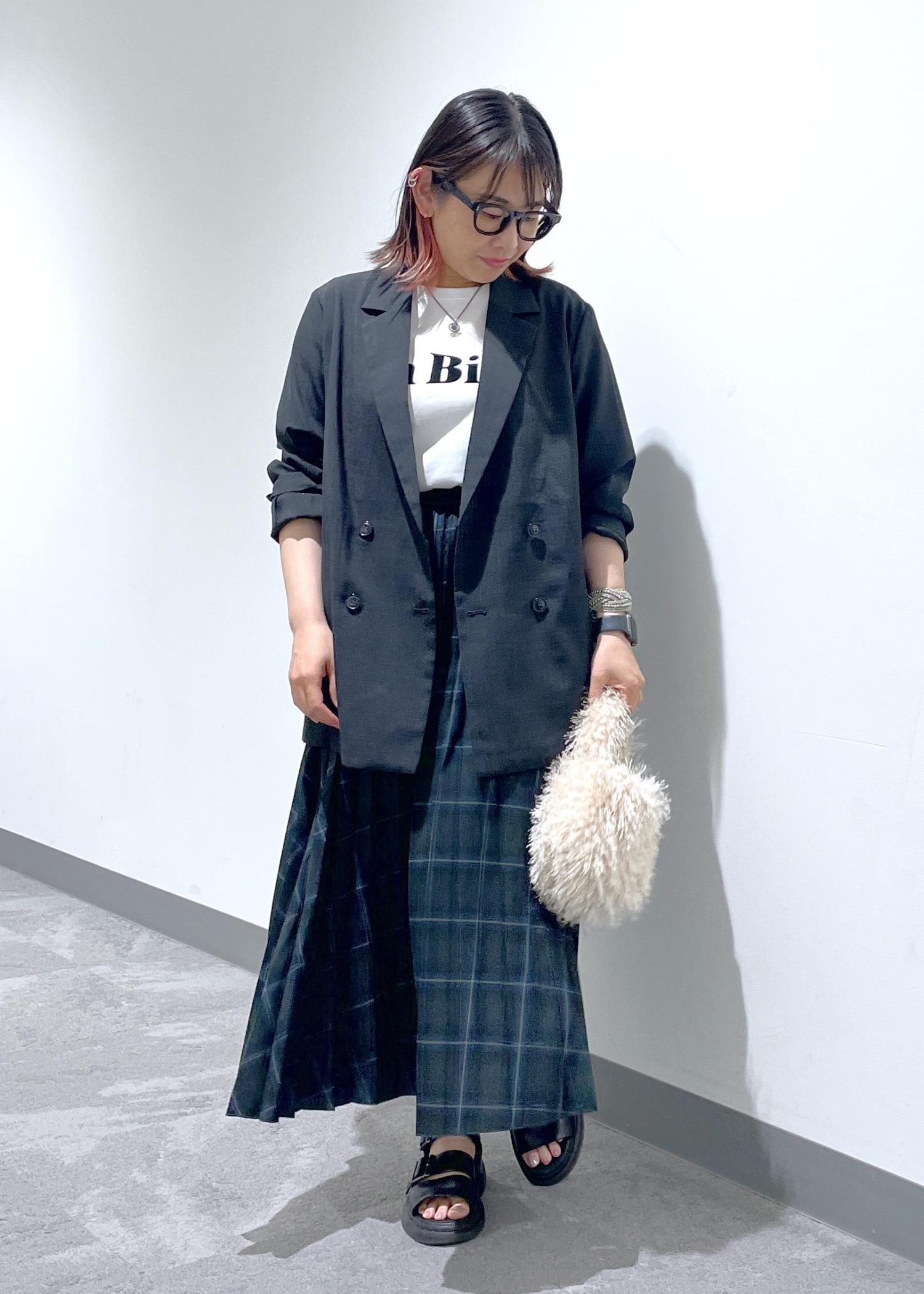 ゆったりとした長袖ダブルジャケットです。UVカット、接触冷感など機能性素材なのも嬉しいです。サラッと羽織りやすく今からの時期、大活躍間違いなしです○