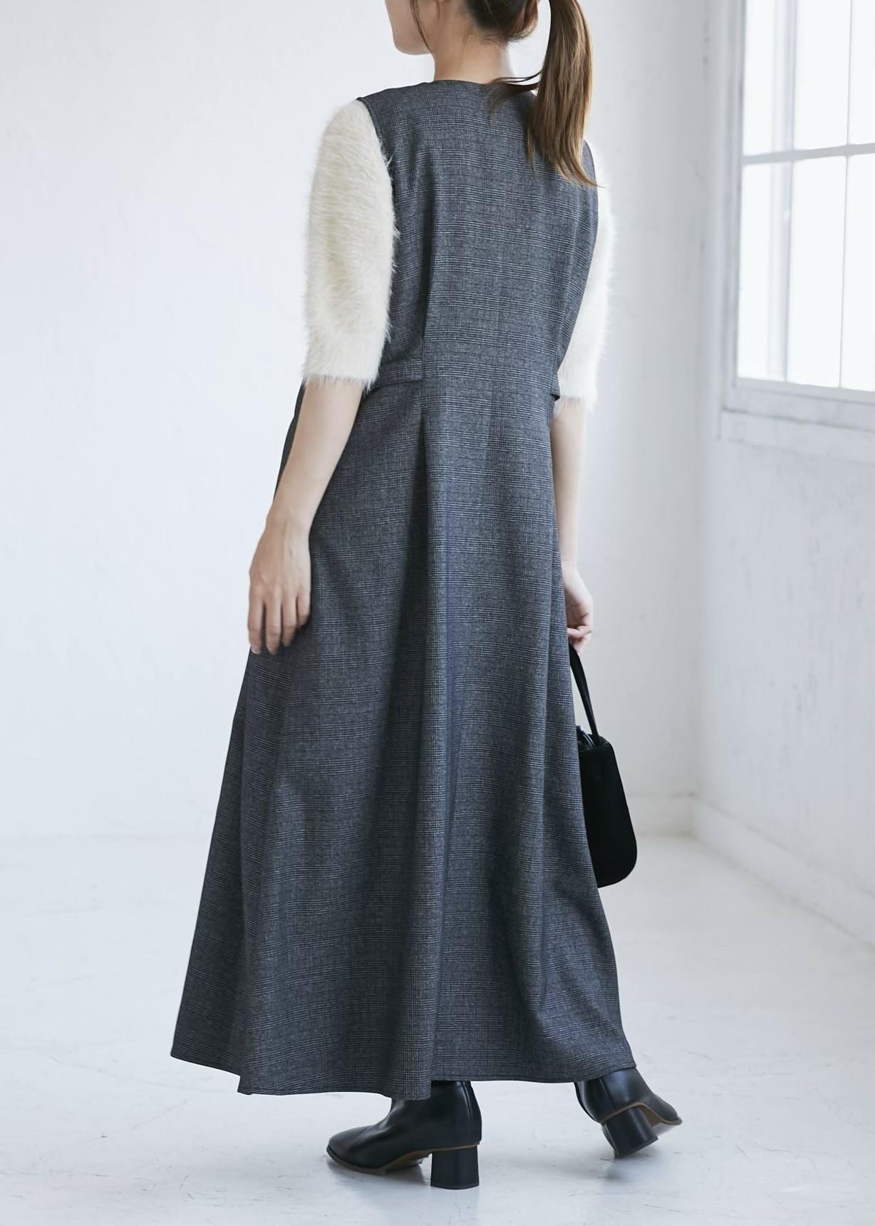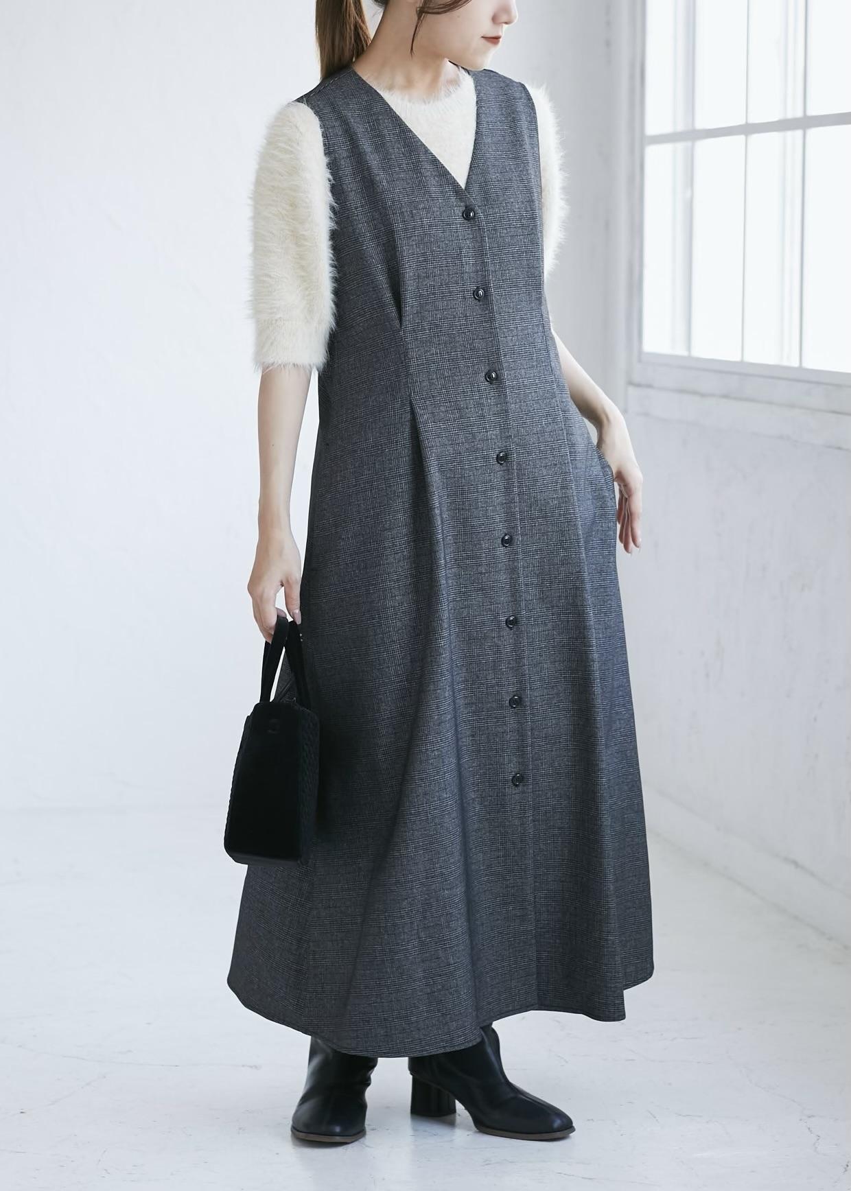 きれいめなウールライクのタックワンピースを合わせた秋っぽコーデです。