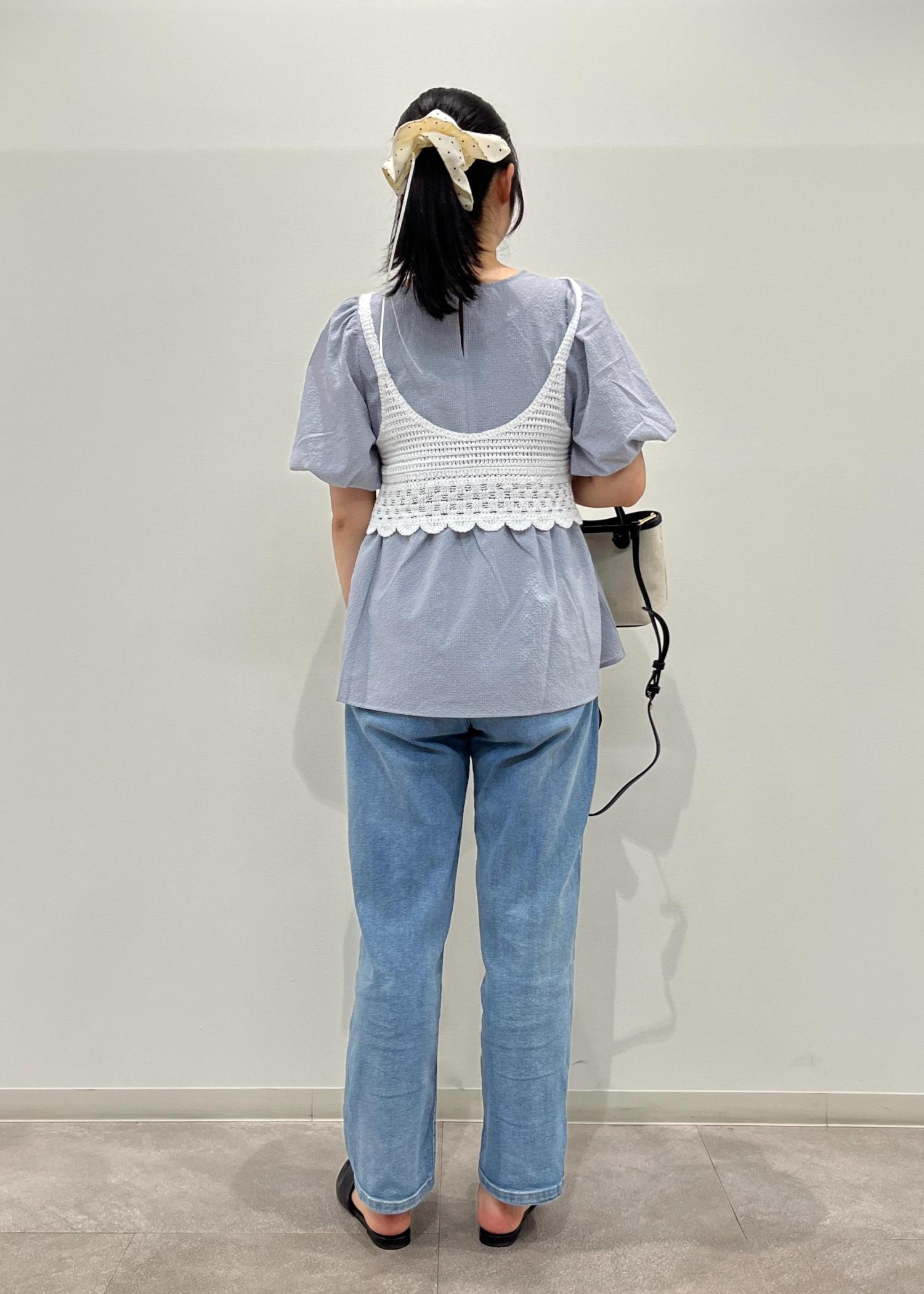 アウトレットROPÉ PICNICクロシェビスチェ/リンクコーデホワイト / 38¥2,992レビューゆとりのあるサイズ感なので薄手のニット生地までならレイヤードできそうです。