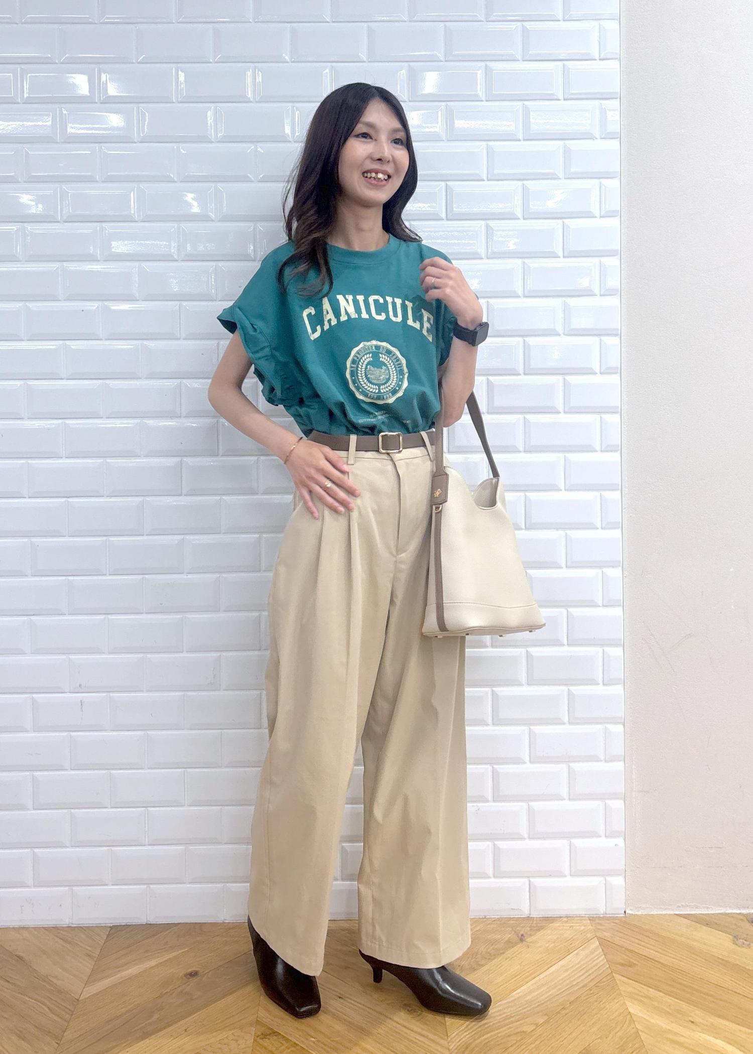ROPÉ PICNIC袖フリルカレッジロゴTシャツグリーン / 38¥4,499レビュー袖がフリルになっており、カジュアルすぎずに着こなしできます。