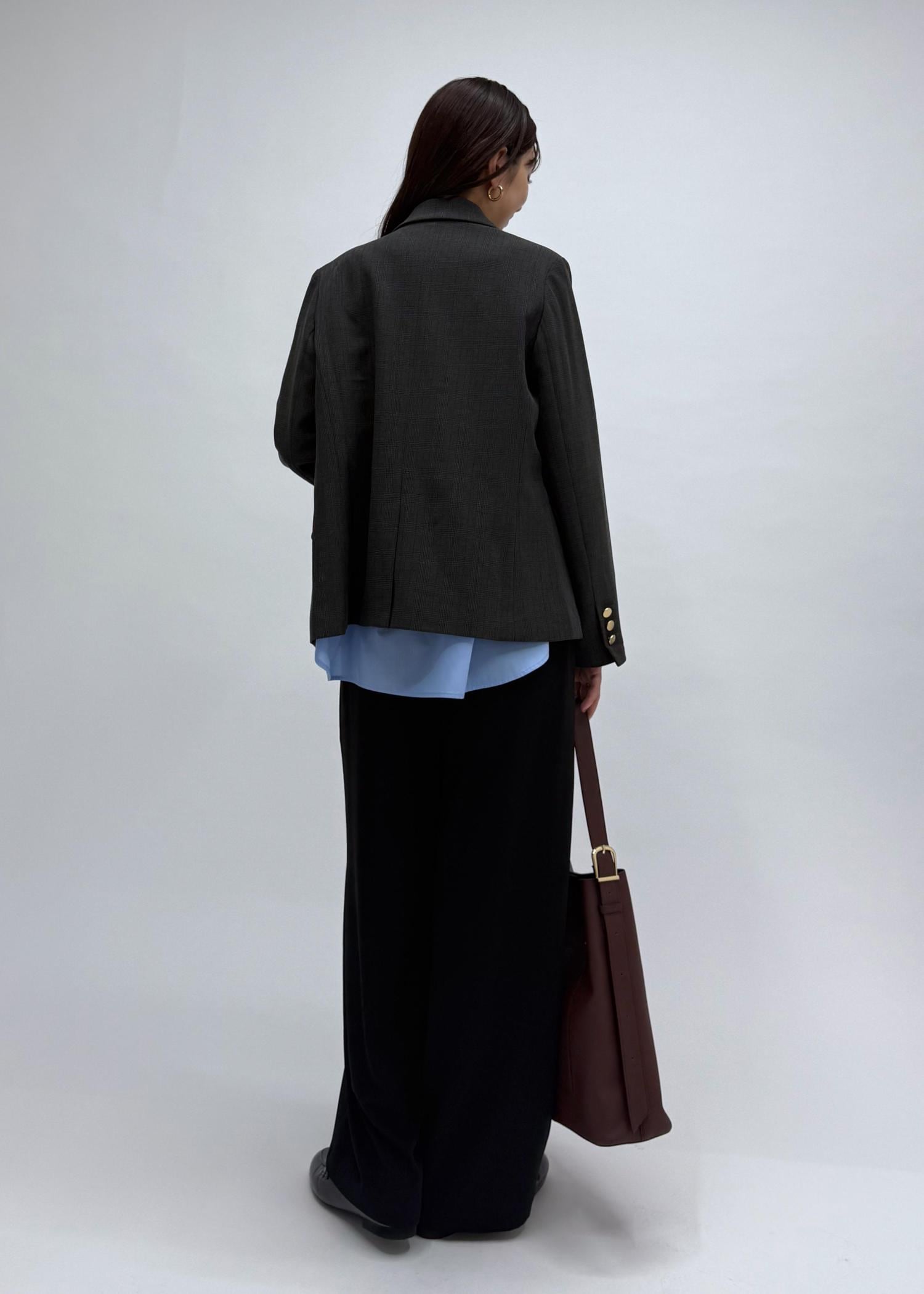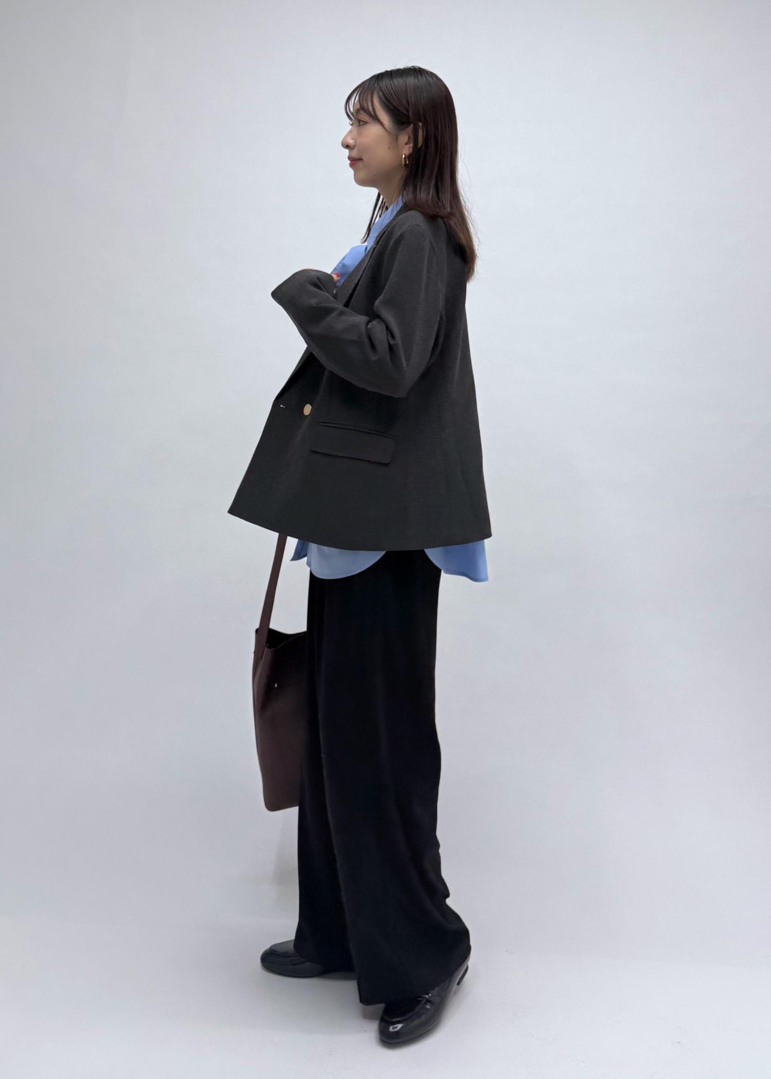 ROPÉ PICNICレディハンサムシリーズ ウールライク金ボタンジャケット(半裏地)/セットアップ・通勤対応ライトグレー / M¥8,998レビューある程度ゆとりのあるシャツなども難なくスルッと袖通しし易いサイズ感です。重みもそこまでなく肩肘張らずに着られる優しい着心地も人気のひとつ。こちらの着丈は腰がしっかり隠れる長さでバランスが取りやすくボトムスを選ばない丈感になります。