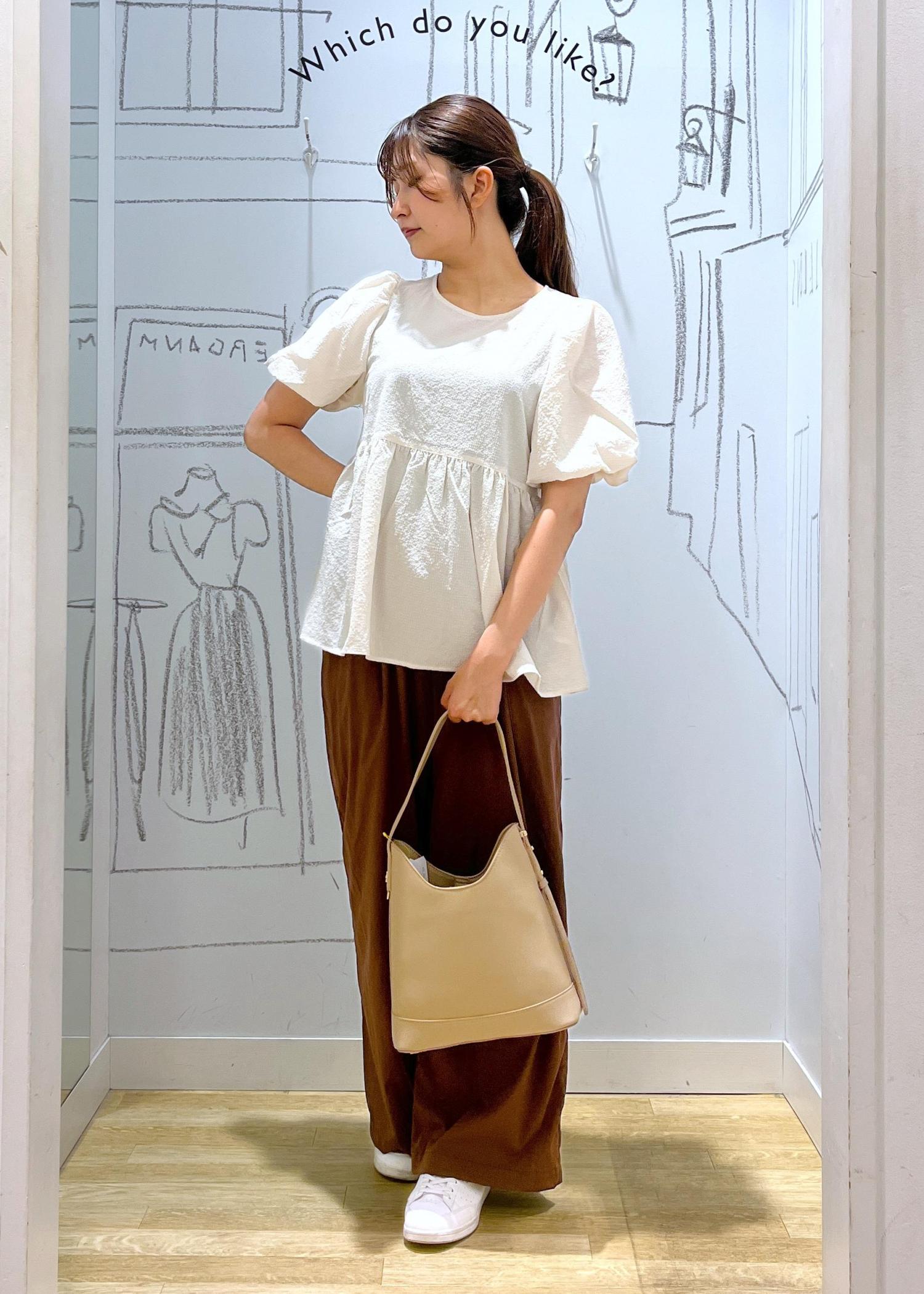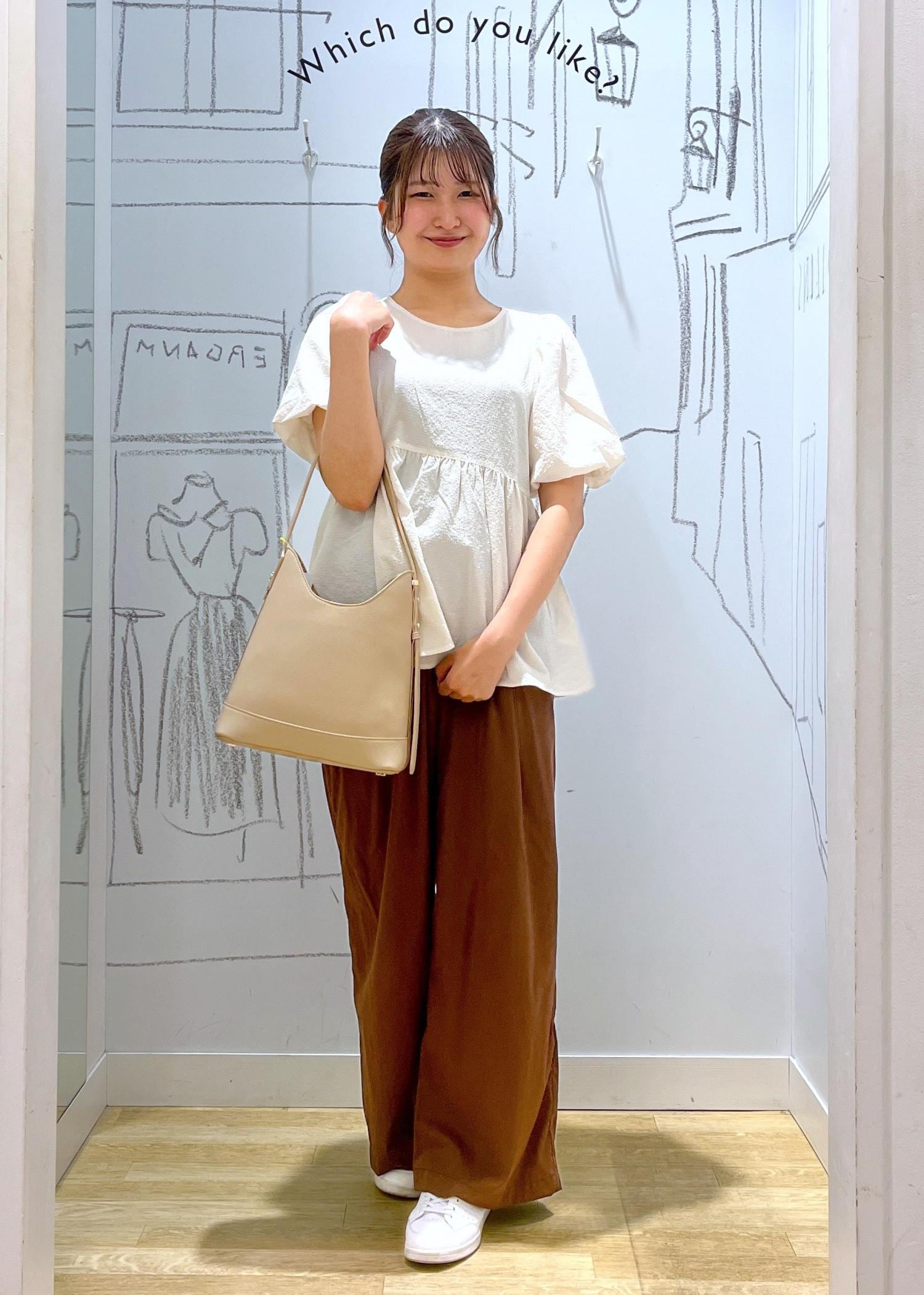 かわいさと上品さを掛け合わせた白×茶のコーディネートです。通学・通勤はもちろんお出かけやデートなどにもオススメしたいアイテムです。お友達とカフェでおしゃべりもいいですね♡