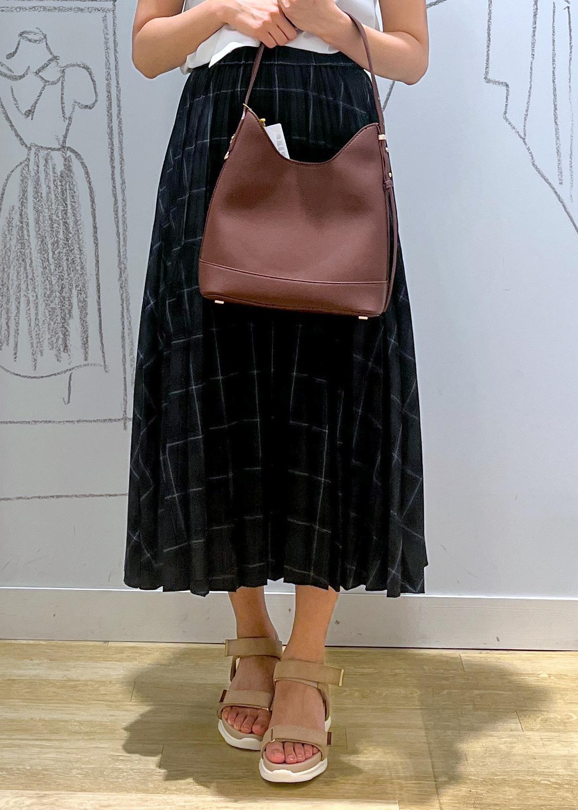 落ち着きのあるチェック柄の為普段チェックを着ない私も合わせやすかったです。お腹周りもゴムなので楽ちんに履き心地が良いです。ボリュームもでにくく、動きの出るスカートです。