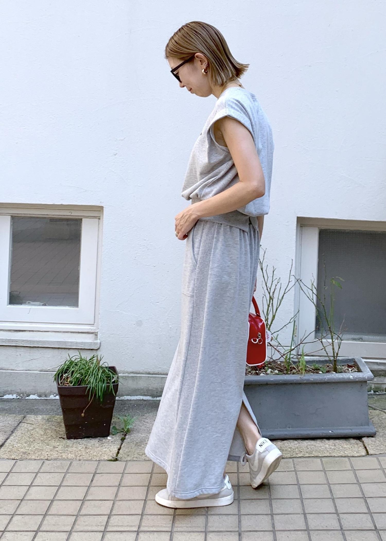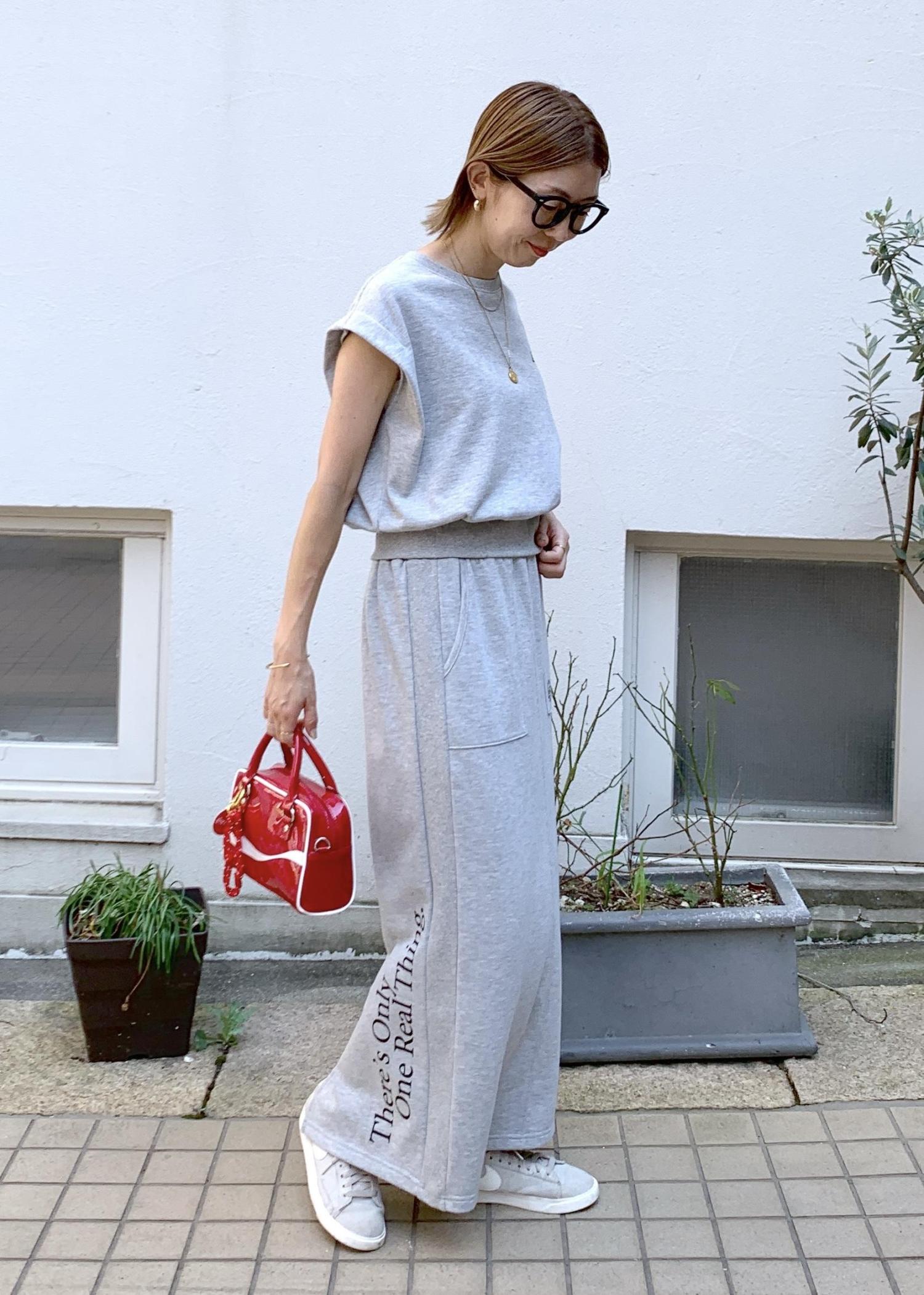 柔らかく楽な着心地のスウェット素材のセットアップ。