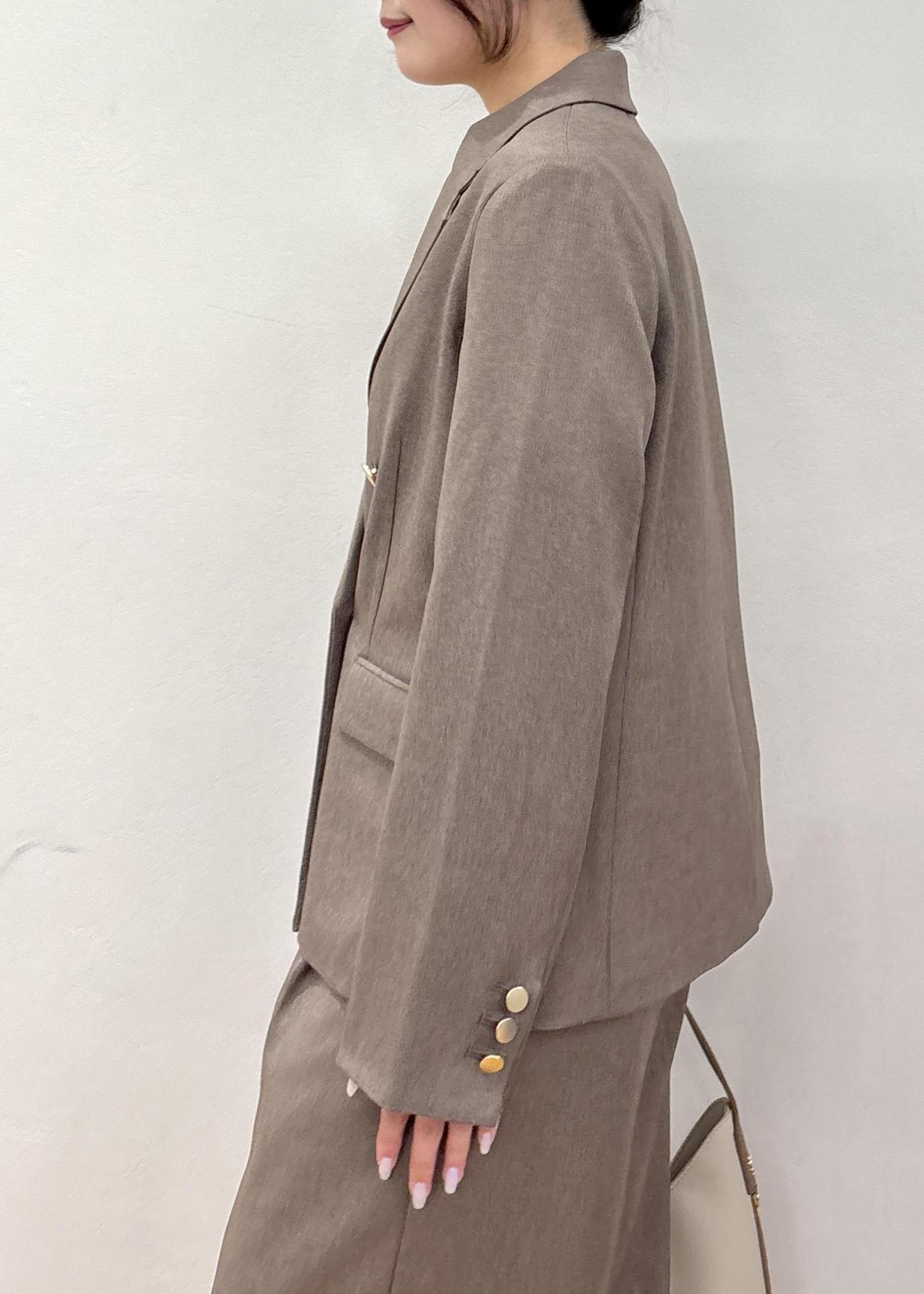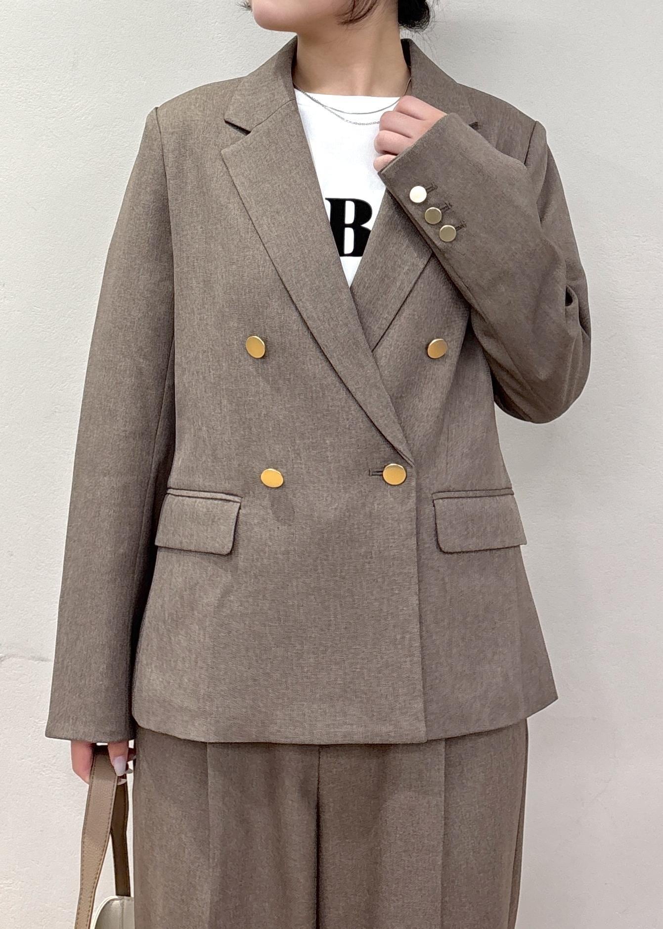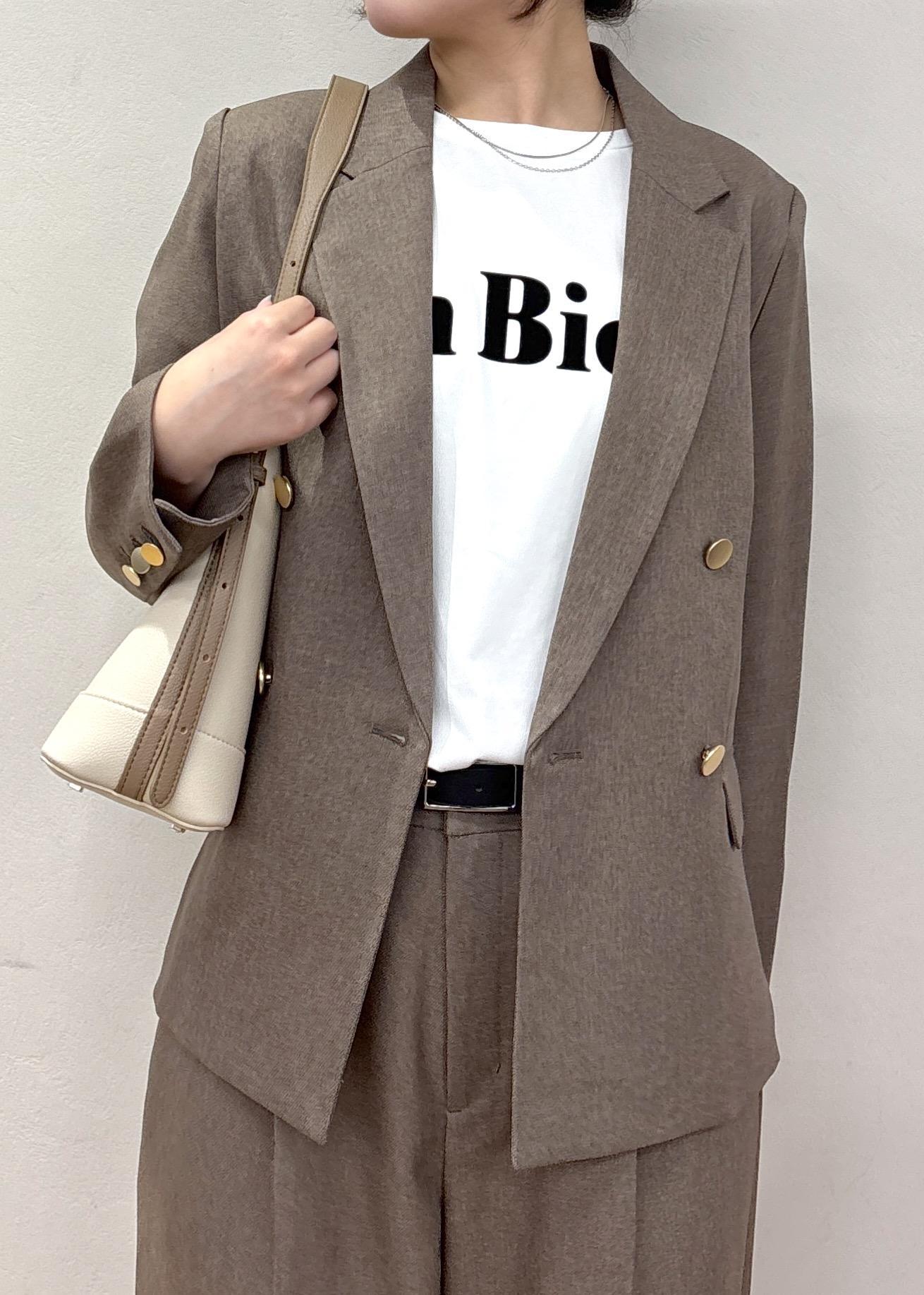 柔らかなブラウンカラーが今年らしいセットアップ。オフィスづかいにもオススメです。