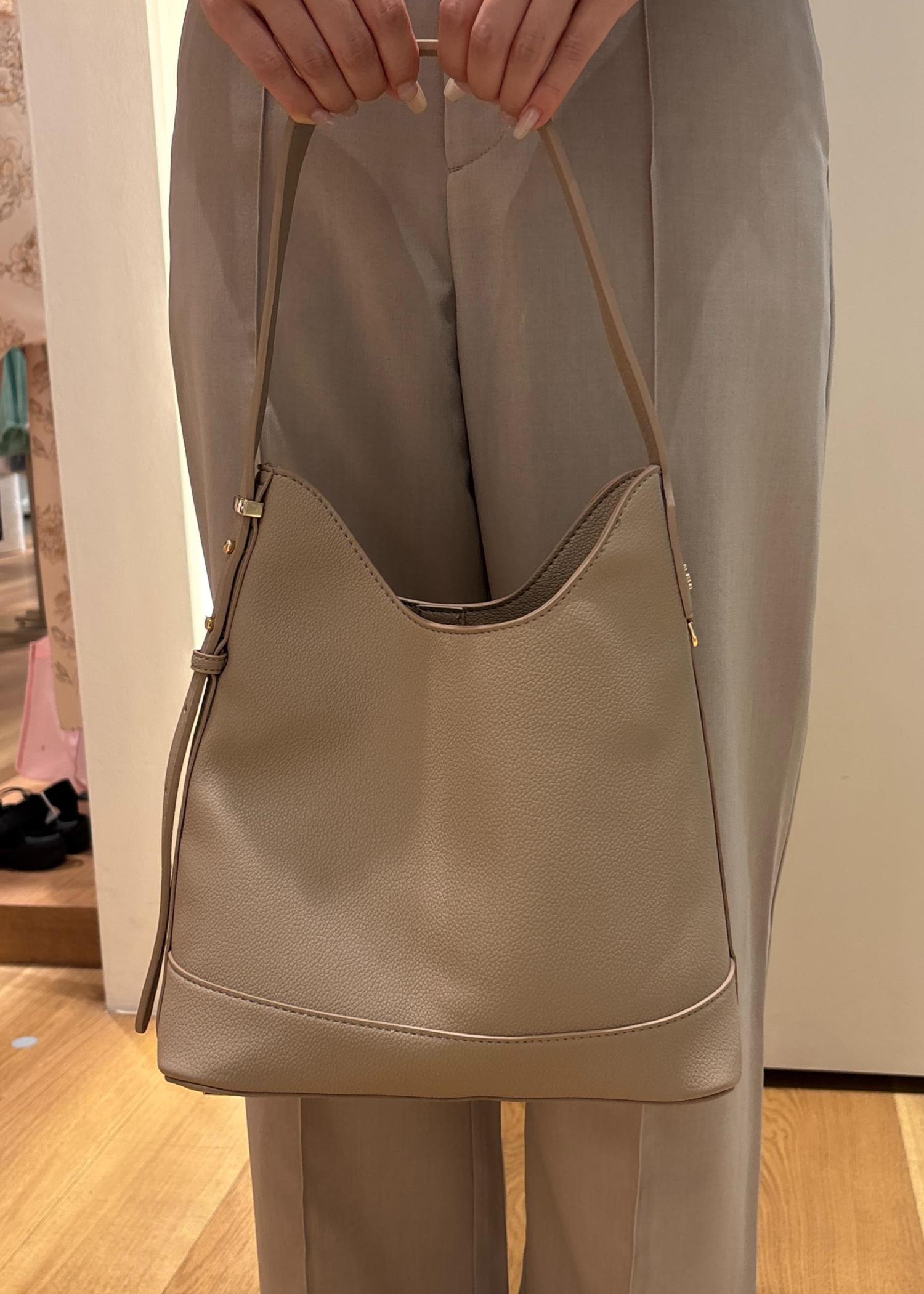 バッグは馴染むようベージュ。