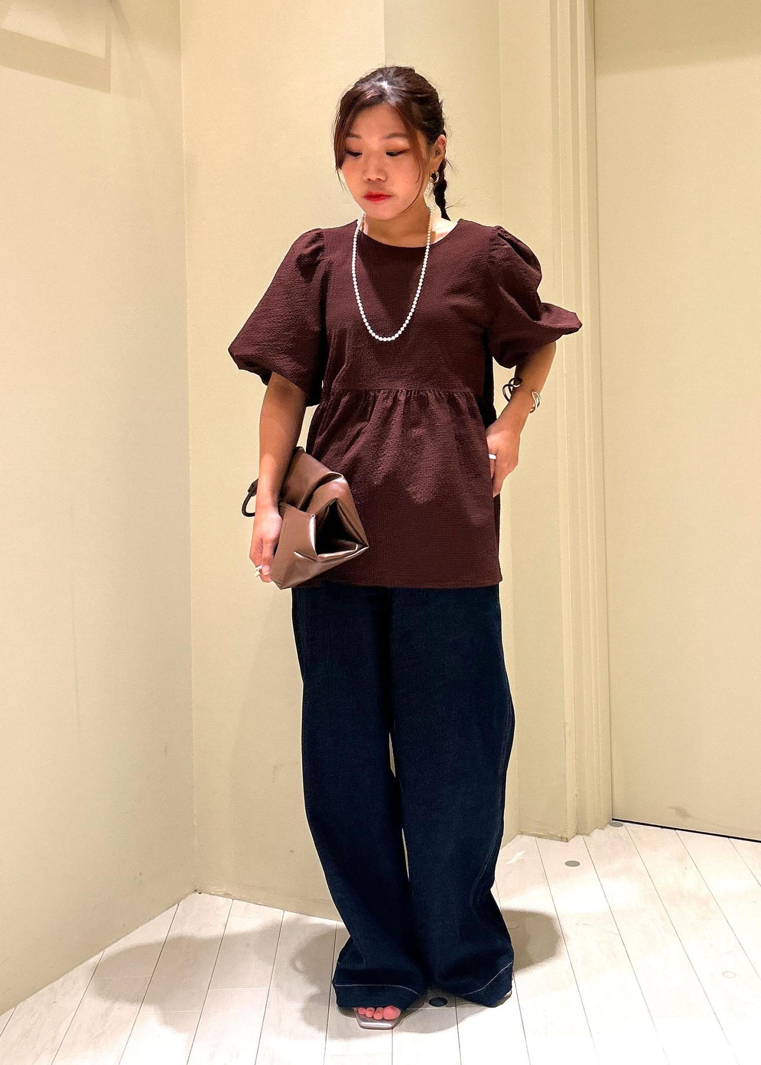 バルーン袖が今年っぽく1枚でトレンド感のあるトップスです。