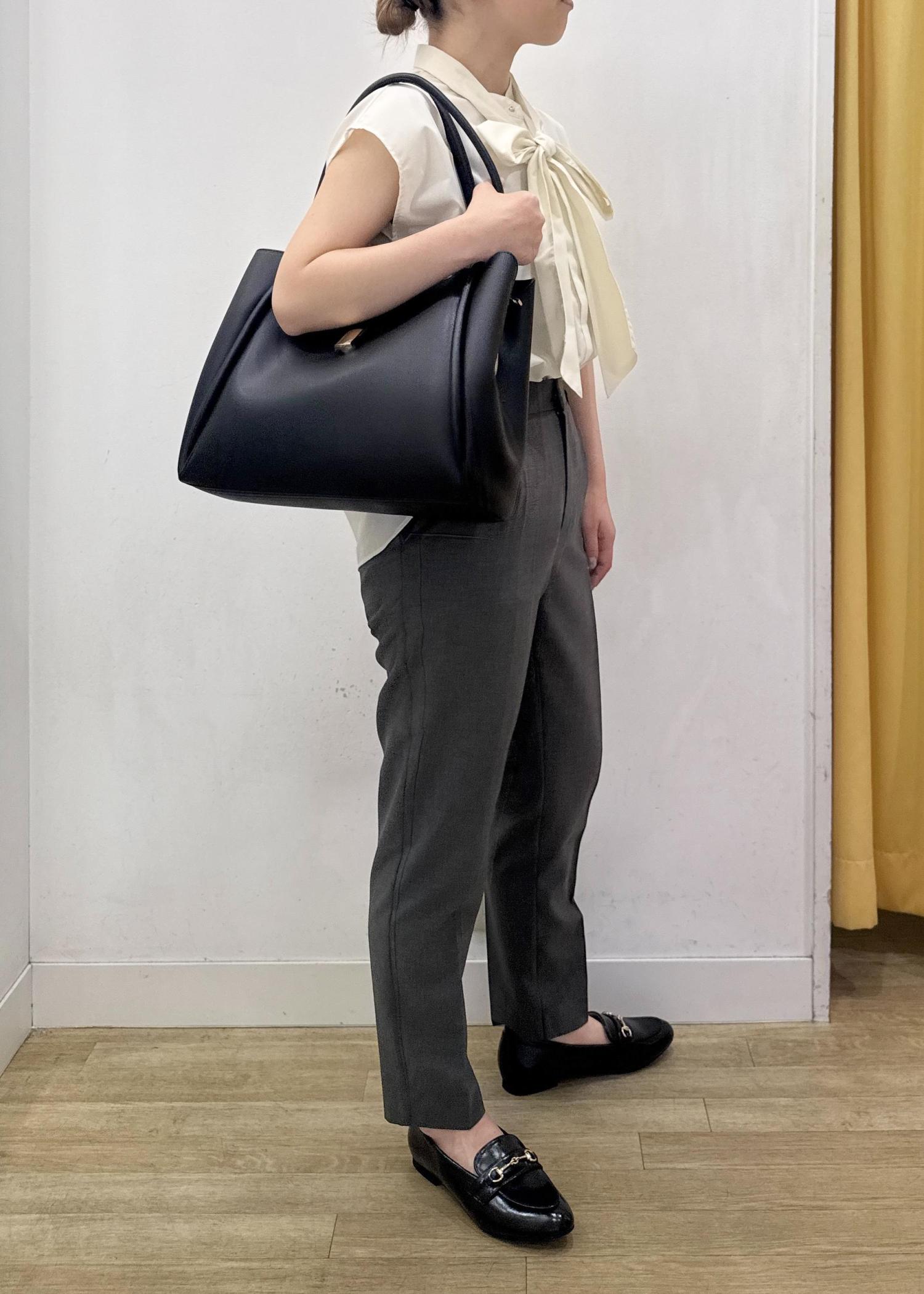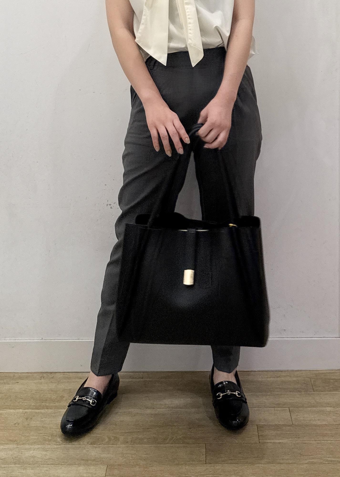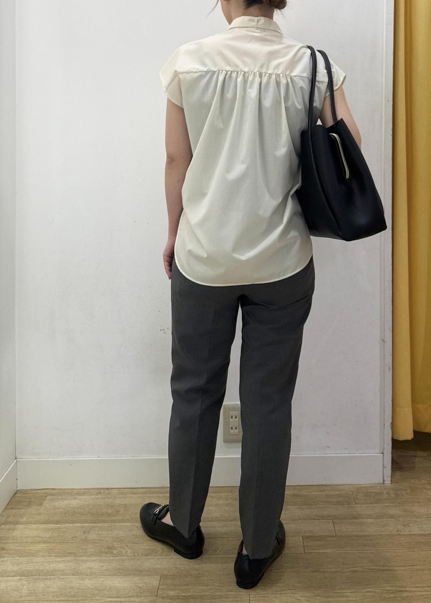 サラッと薄手の素材とスッキリとしたラインのテーパードパンツは夏のお仕事着にもオススメです。 -