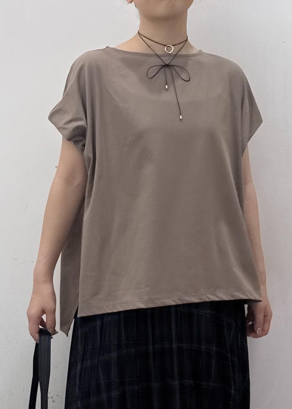 浅めのボートネックデザインなのでインナーを気にせずに着られるのも◎
