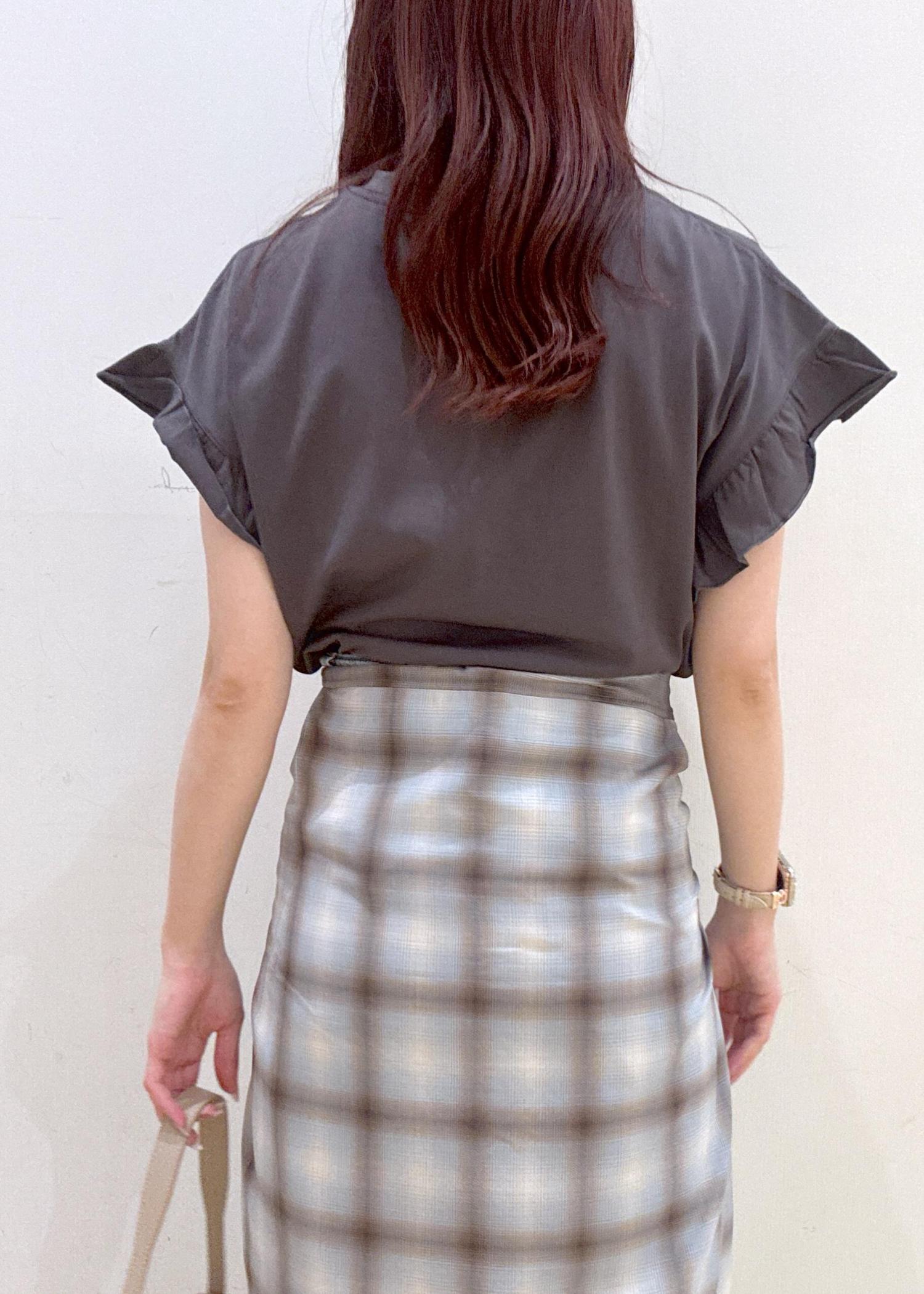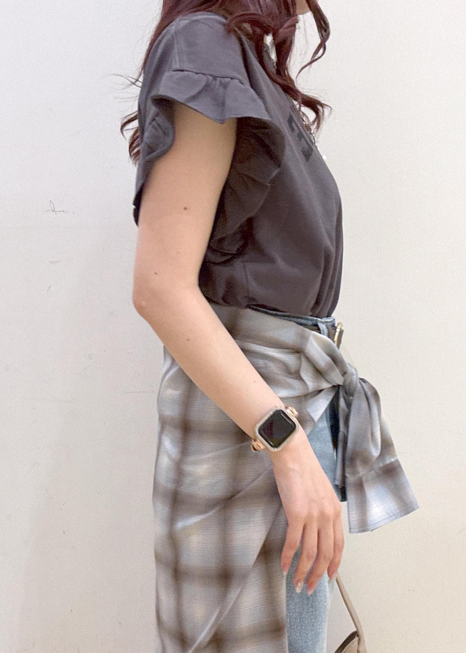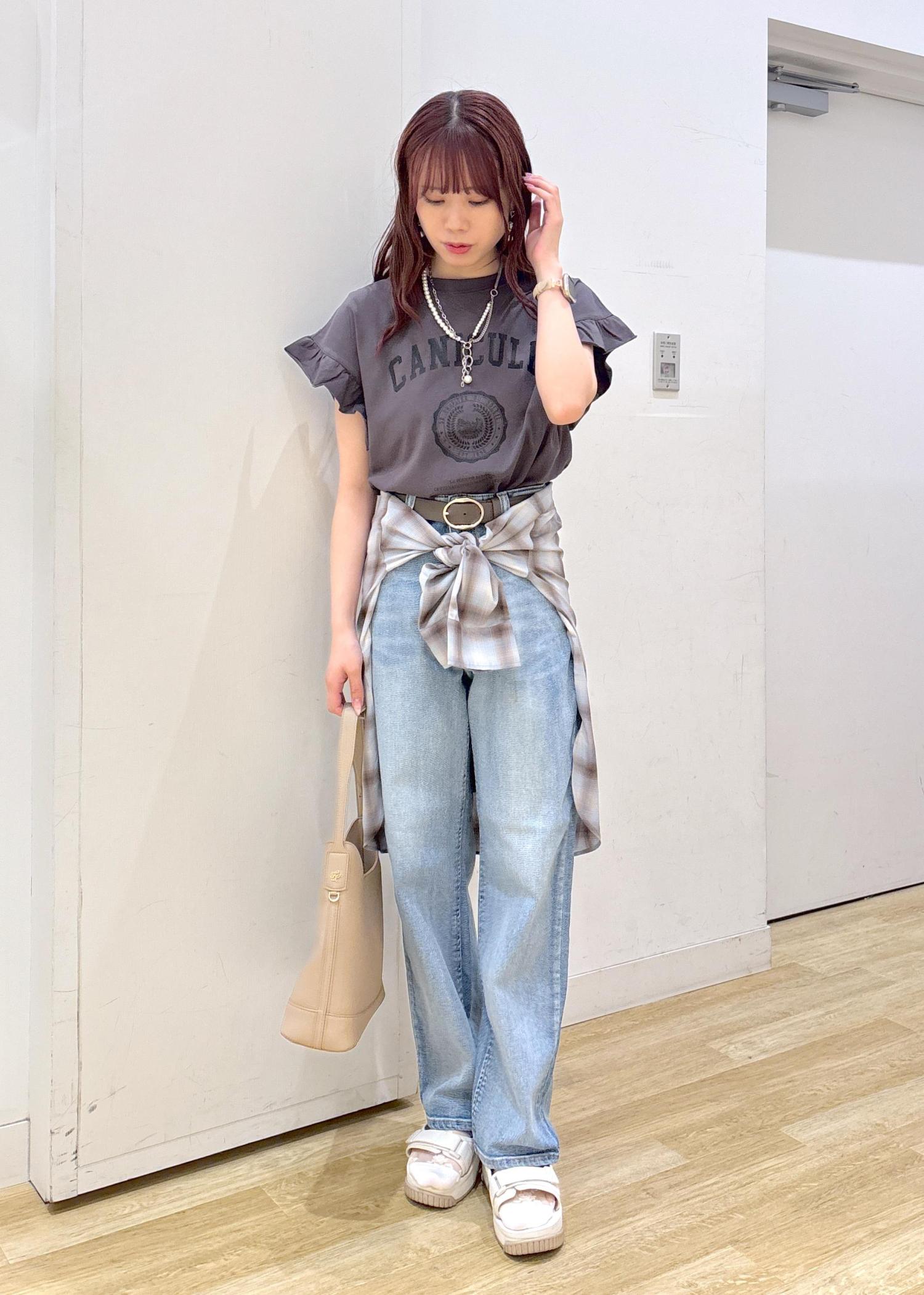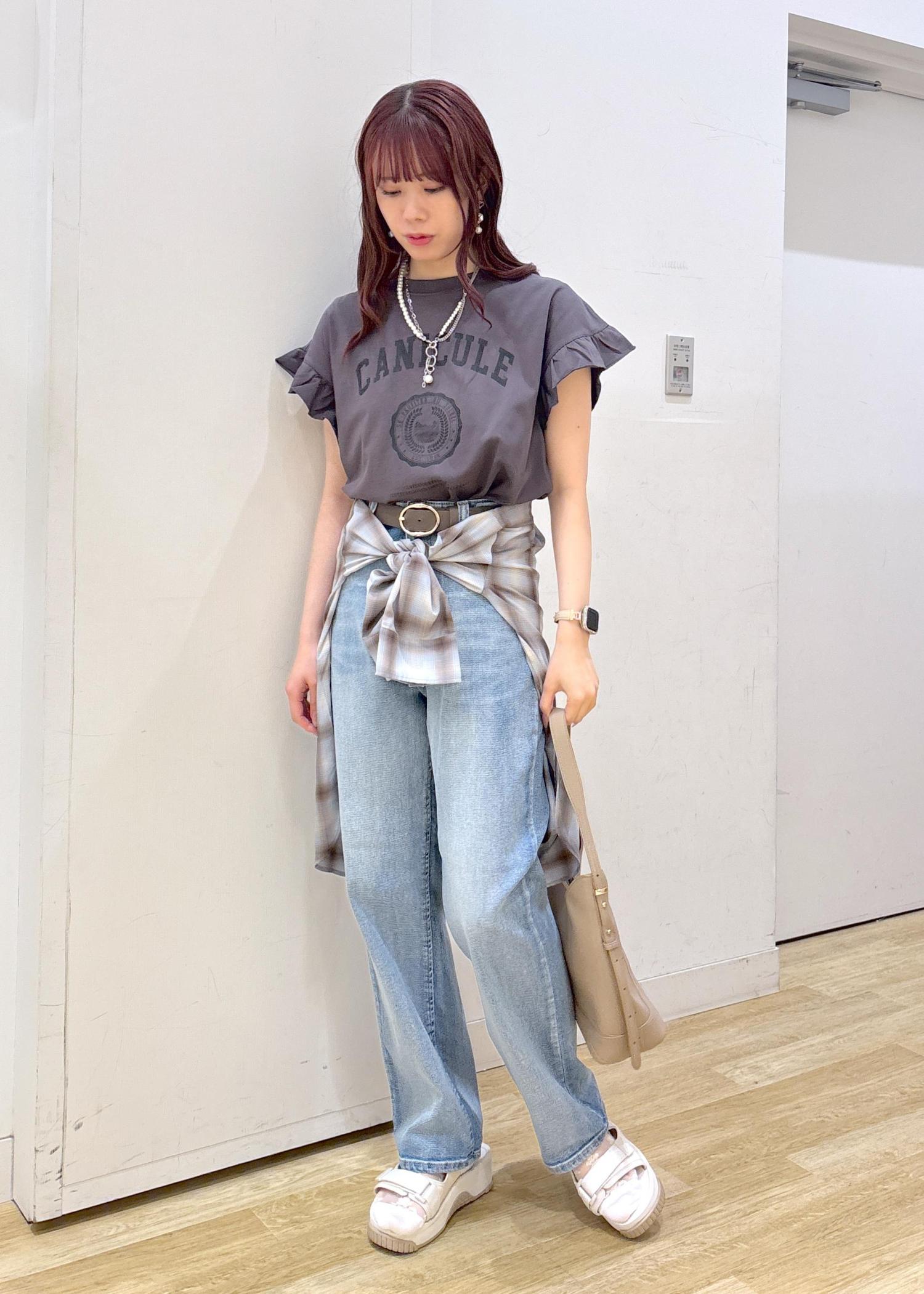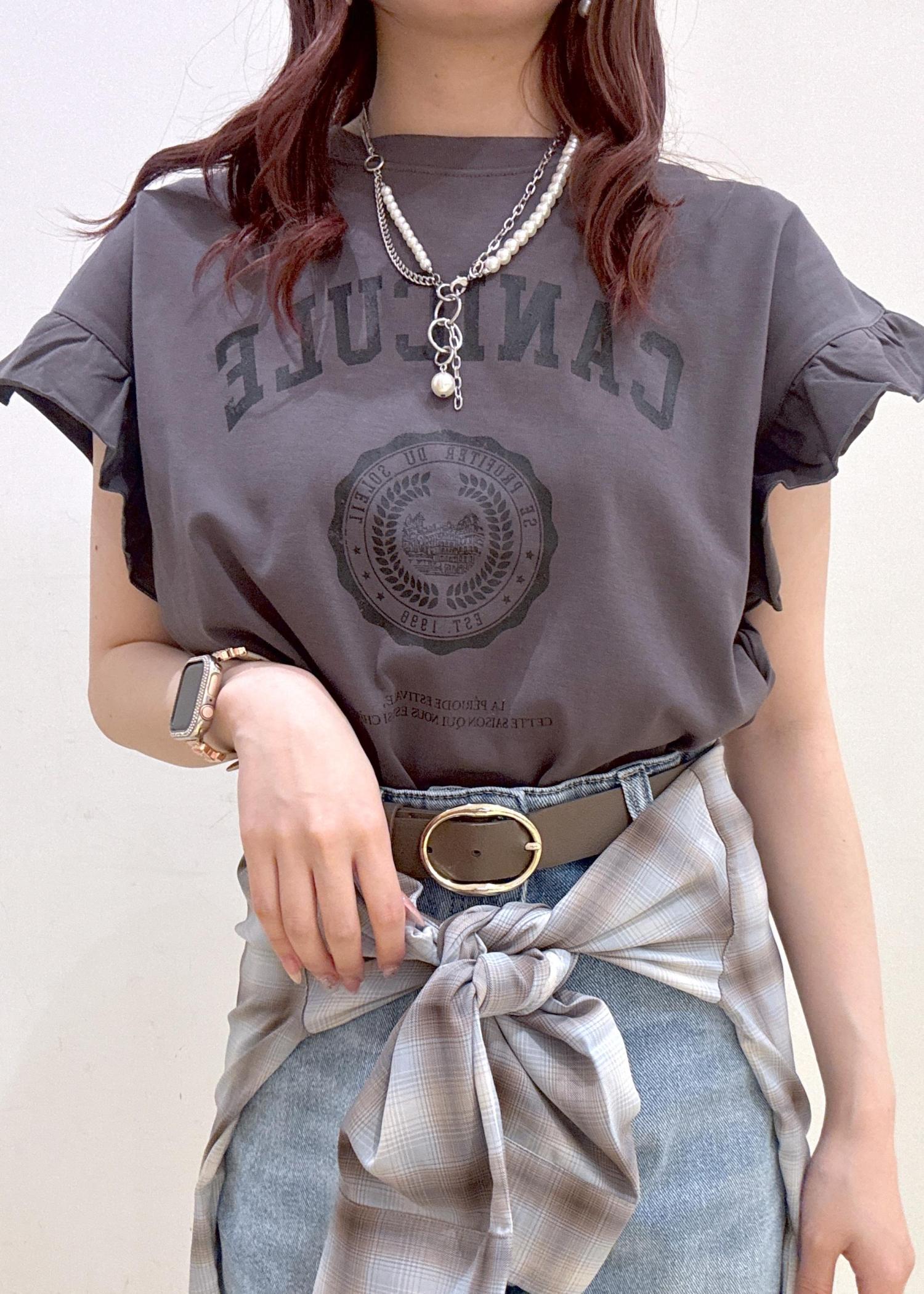 ROPÉ PICNIC袖フリルカレッジロゴTシャツチャコール / 38¥4,499レビューゆったりとしたサイズ感で袖は二の腕が少し隠れるくらいの長さです。