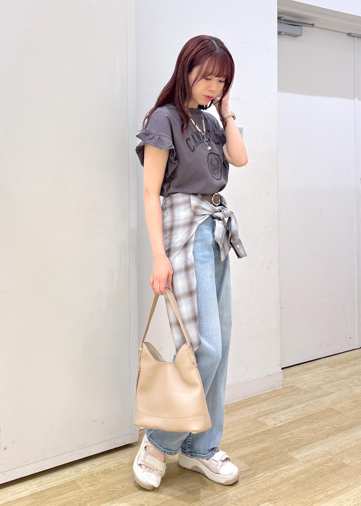 チェックシャツをワンポイントにカジュアルコーデに仕上げました◎