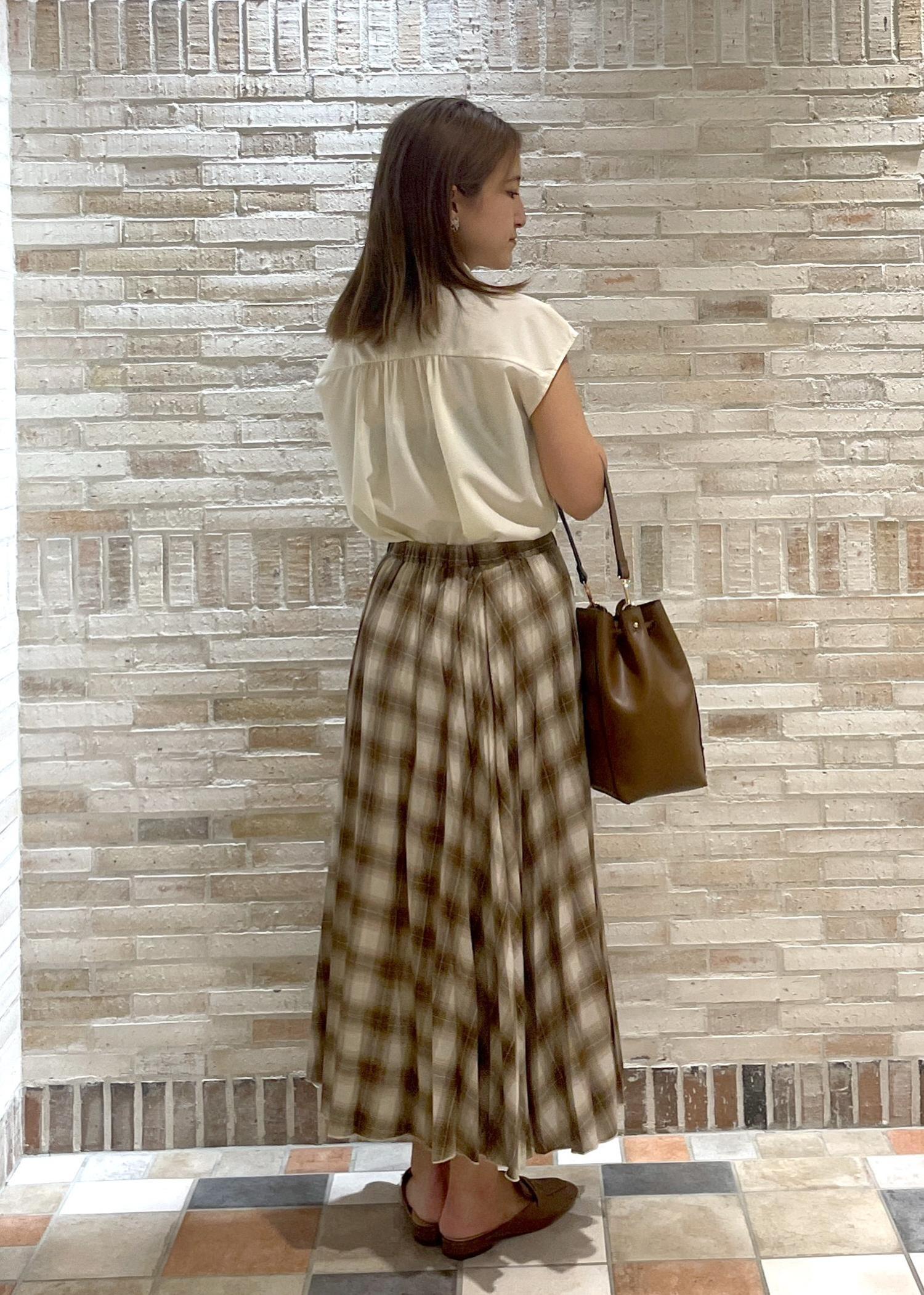 ROPÉ PICNICチェック柄プリーツスカートキャメル / F¥4,994レビュー161cmで脛あたりの丈感。