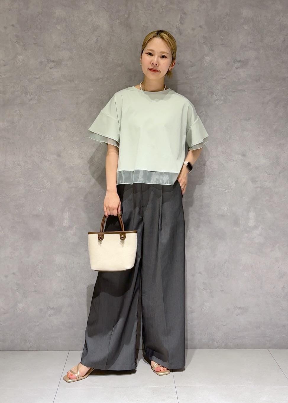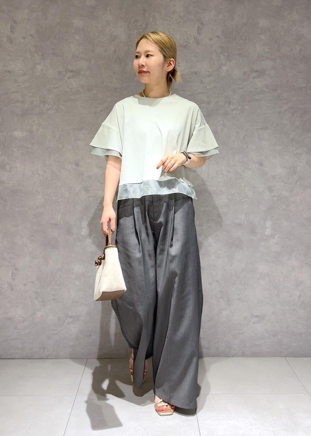 袖と裾にシアー素材を合わせて涼しげでシンプルながらオシャレ見えするトップスです。 -