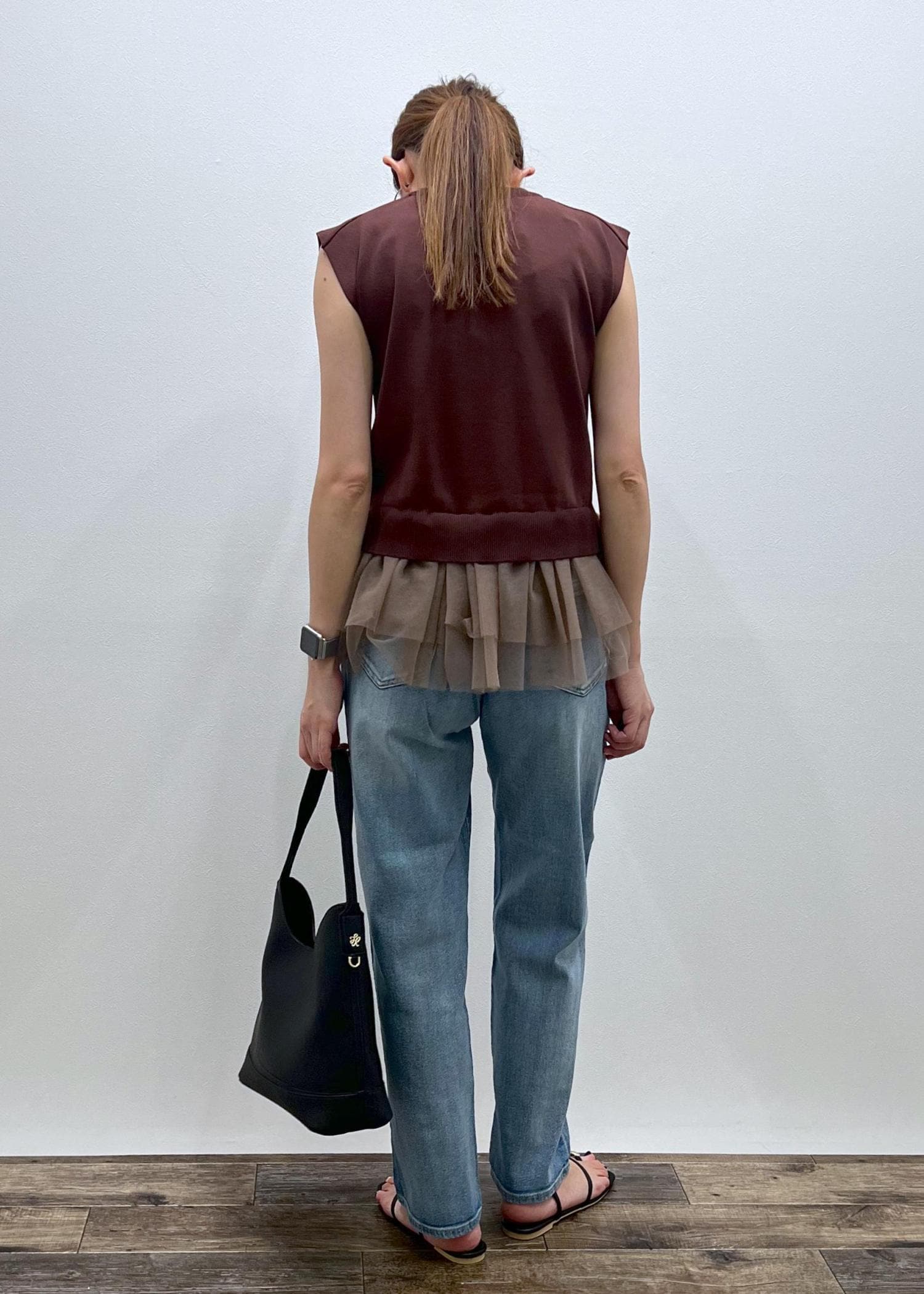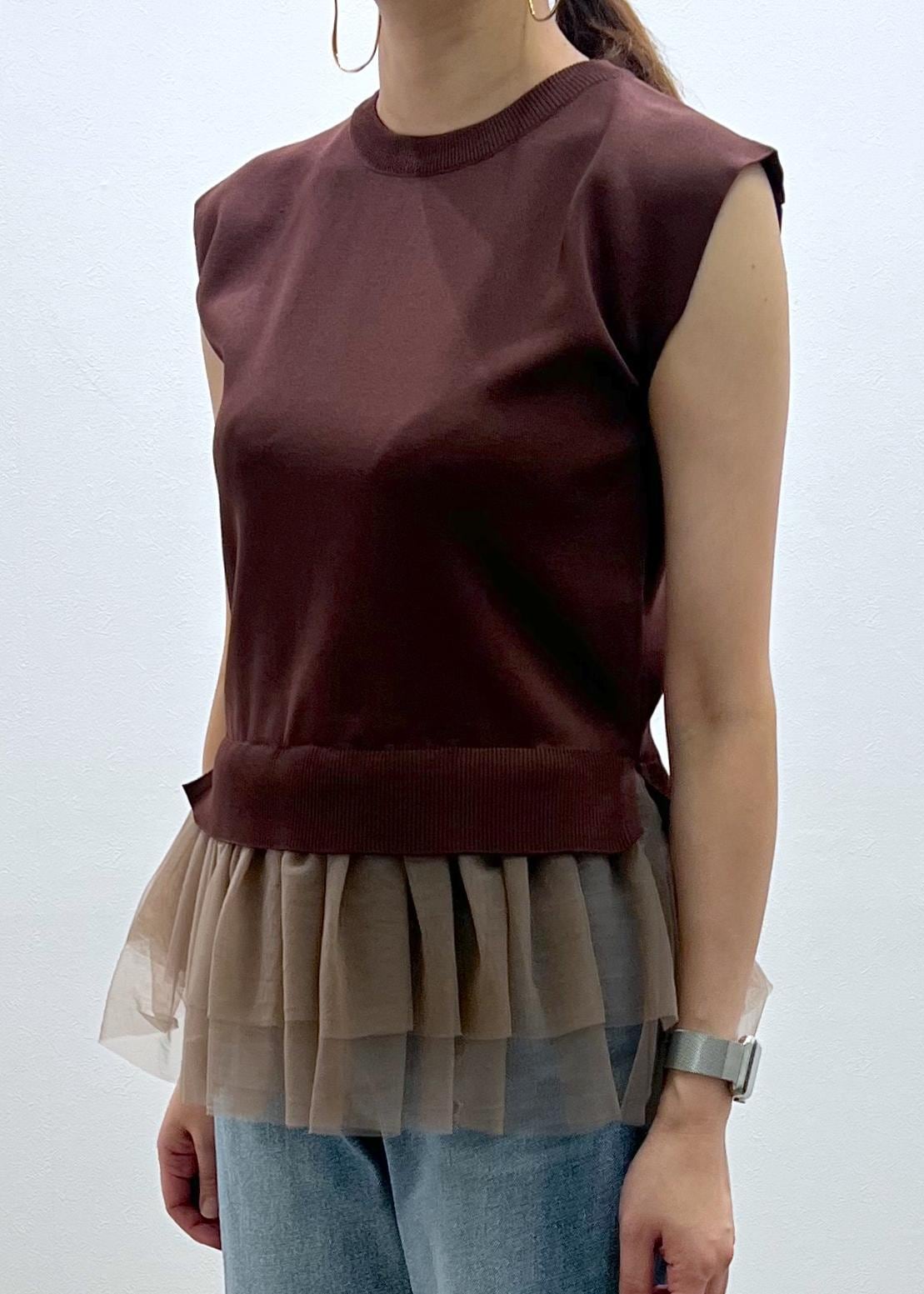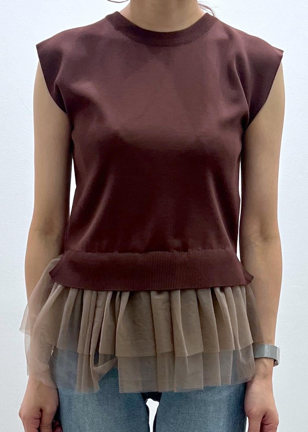 ROPÉ PICNICチュールドッキングプルオーバーブラウン / F¥2,992レビューシャリ感のあるサラッとした肌触りでチュールドッキングが高見えするのが◎