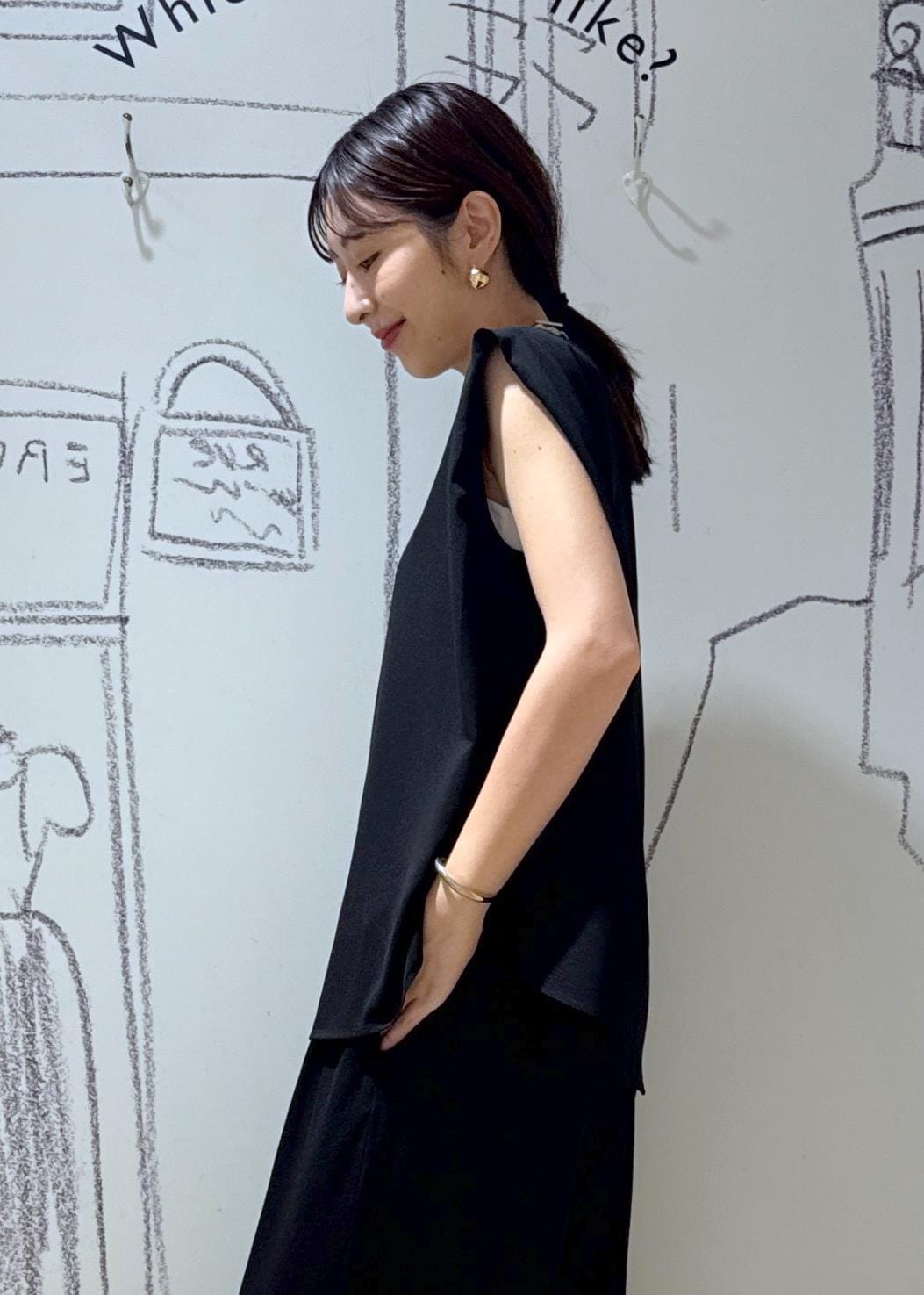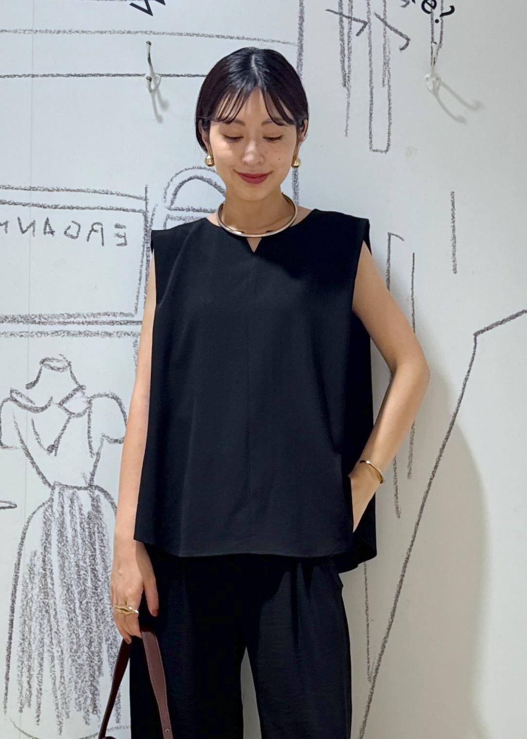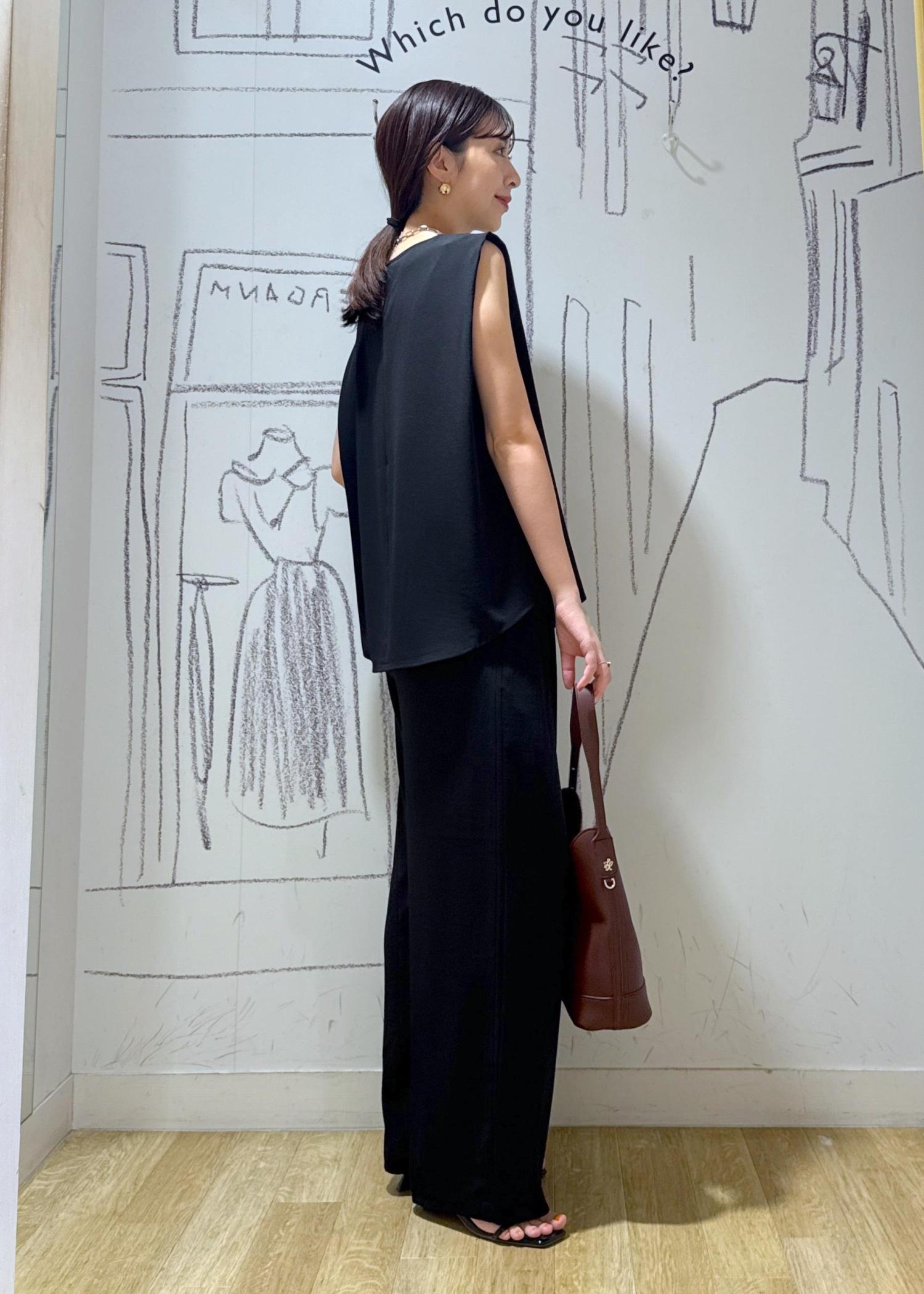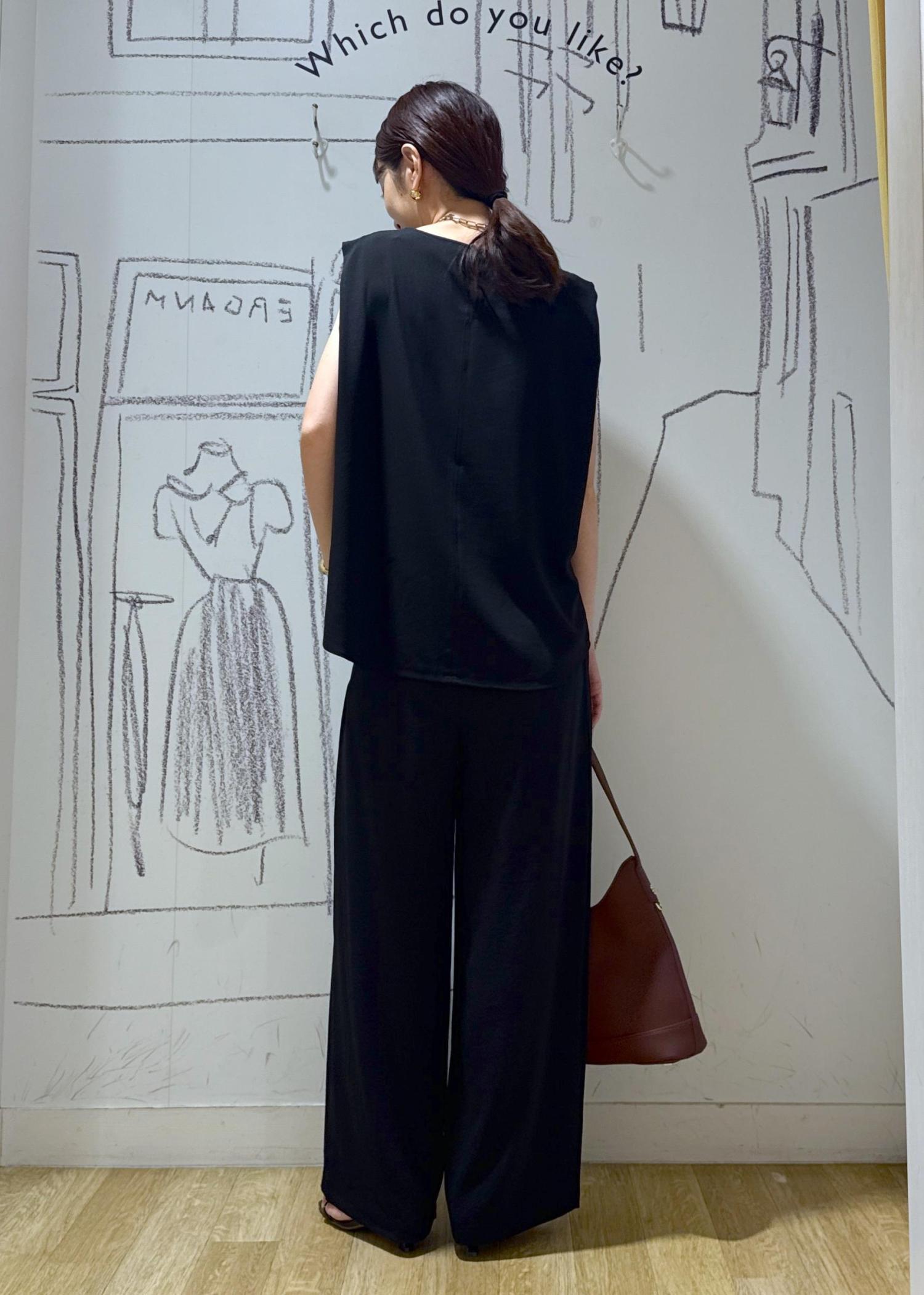 ROPÉ PICNICジョーゼット肩タックブラウス/セットアップ対応ブラック / 38¥2,250レビュー前後差のある着丈で後ろはお尻がちょうど隠れるくらいの長さ。とろみのある素材ですが脇のあたりにタックが入っているので立体感があり高見えします。インアウトどちらでも様になる美シルエットです。袖口は大きめなので見えてもいいインナー合わせが必須。