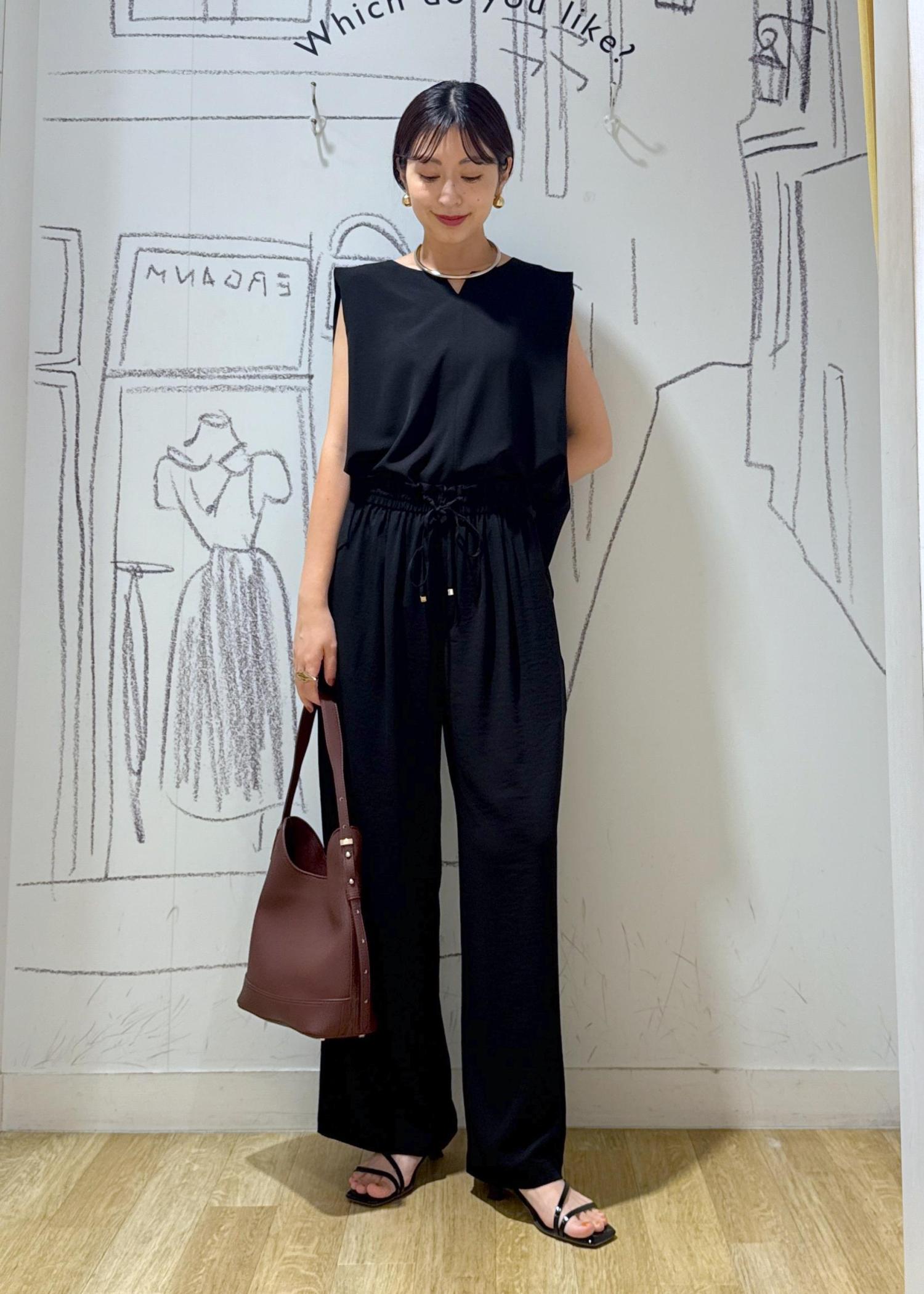 ROPÉ PICNICジョガーイージーワイドパンツ/セットアップ対応ブラック / 38¥4,391レビューサラサラ薄手でリラクシーなパンツです。シワが付きづらいのも高ポイント!とろみがありストンと落ちるシルエットなのでワイドパンツの中でもスッキリ見えます。162㎝で少し足元に溜まる長さ。ウエストの紐でもう少しハイウエストに履くことも可能です。