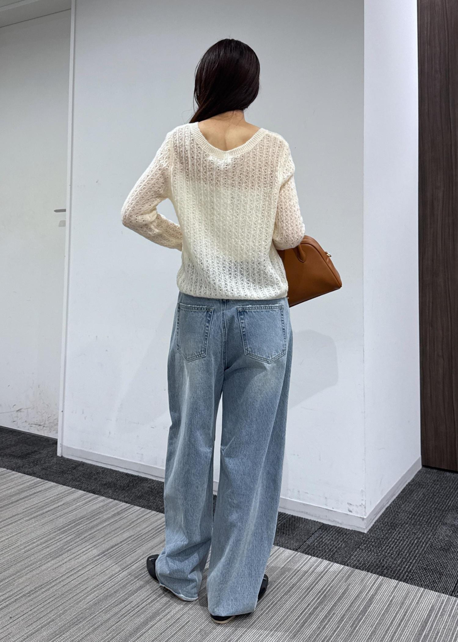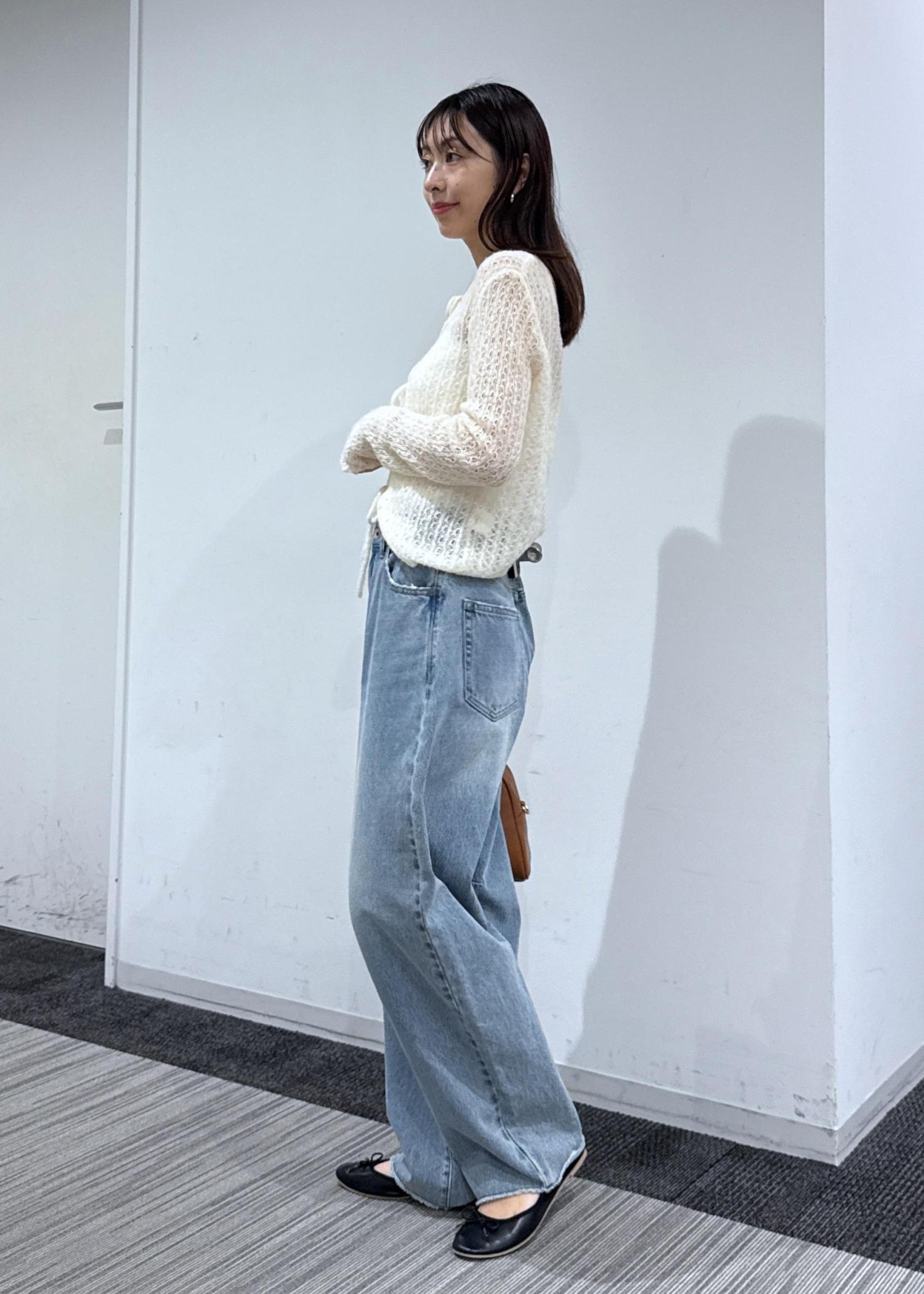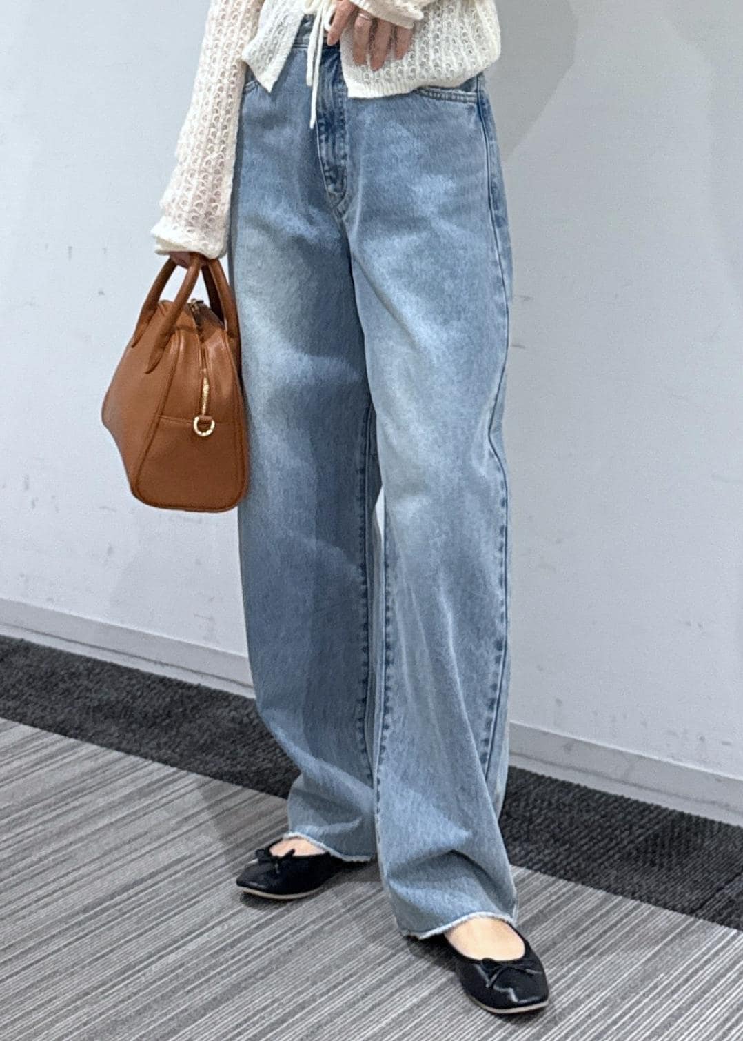 ROPÉ PICNIC【emur/エミュール】ワイドストレートデニムパンツブルー / 38¥10,989レビューウエストは大きめなのでそのまま履くと腰履きっぽくなるゆとりがあります。柔らかい生地で屈んだり立ったりの動作も楽です。ワイドシルエットですが真っ直ぐ綺麗に落ちてくれるのでハンサムな雰囲気で履きたい方にもお勧めです。爽やかさのあるライトブルーで今の季節にもピッタリのカラーです。