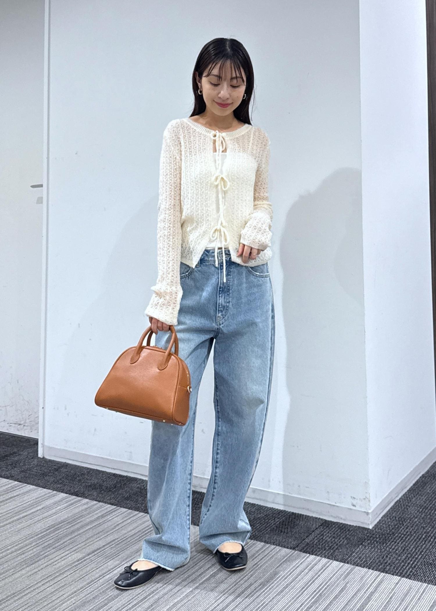 ROPÉ PICNICレース編みメッシュニットカーディガンキナリ / F¥3,993レビュー身幅はゆとりがありますが袖幅は細く手元に溜まるルーズな長さ。フロントはリボン結びにしたりそのまま垂らしたりしても雰囲気があります。女っぽさを出したい時は是非着てほしいアイテムです。