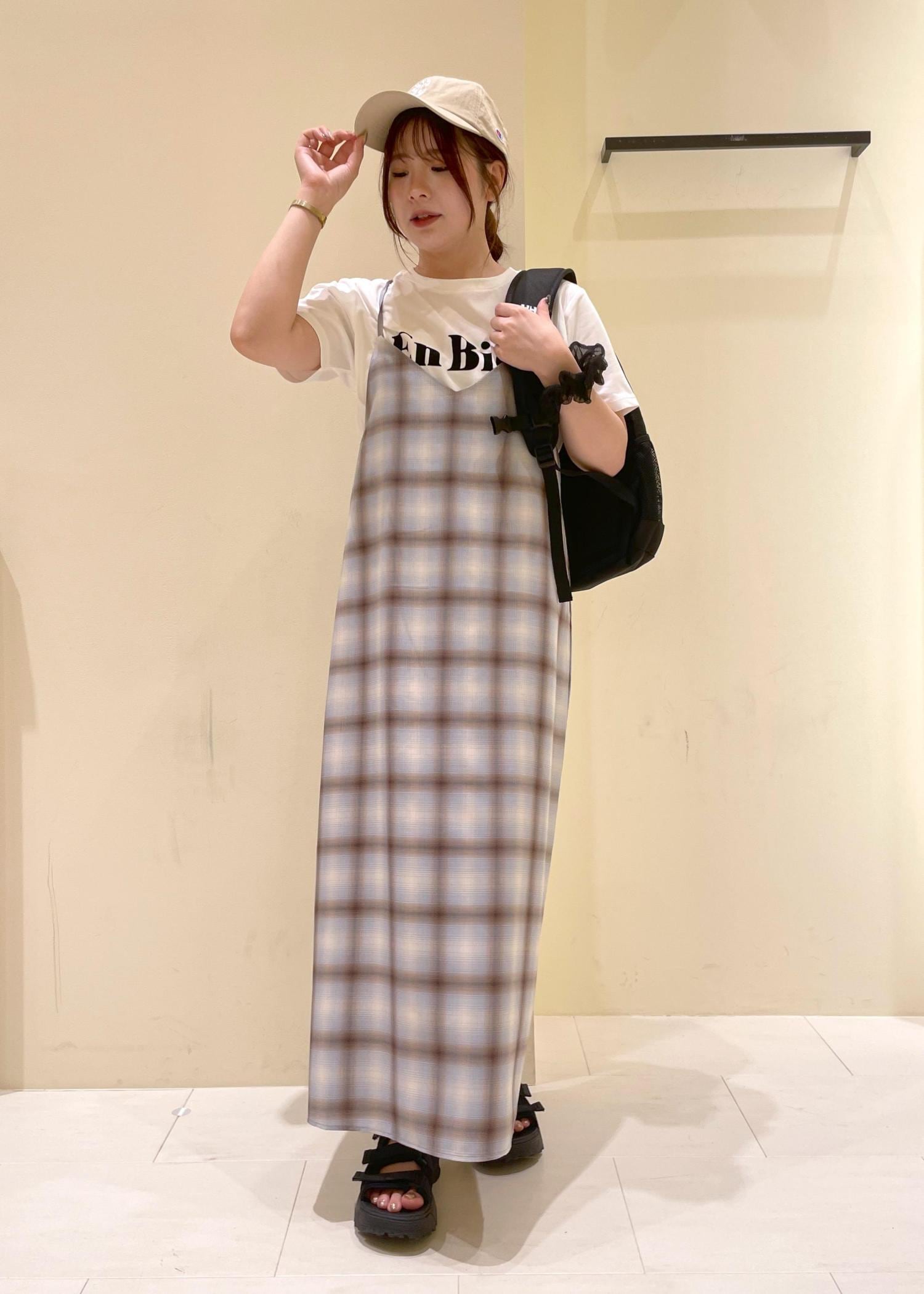 チェックキャミワンピースコーデ´-