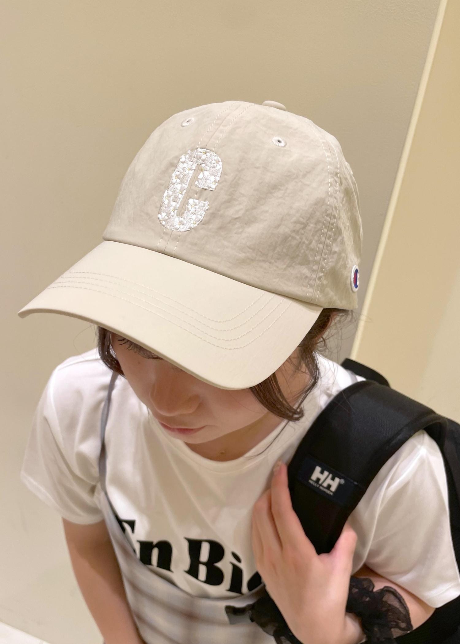 キャップとリュックでカジュアルスタイルに。