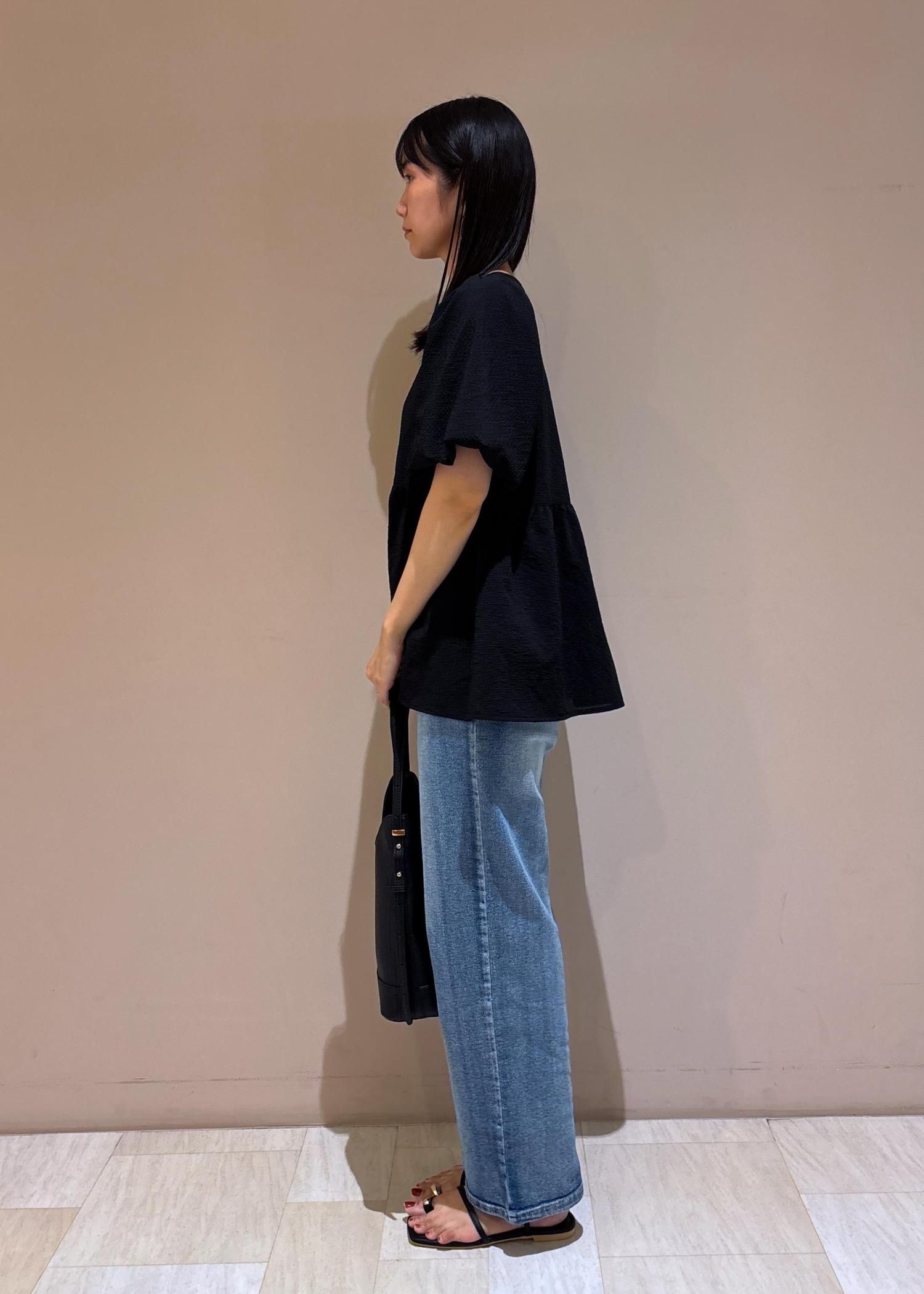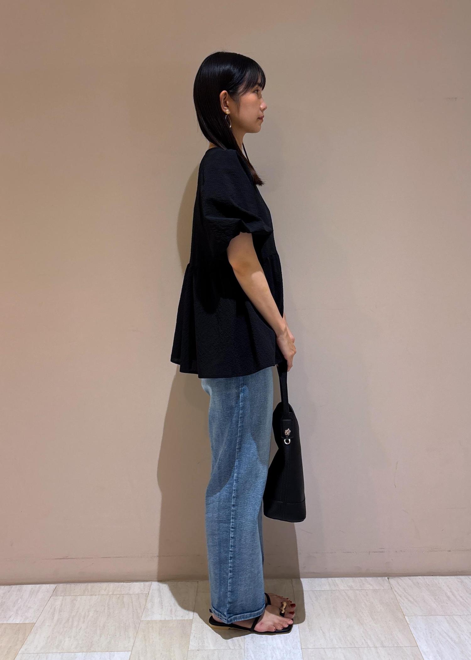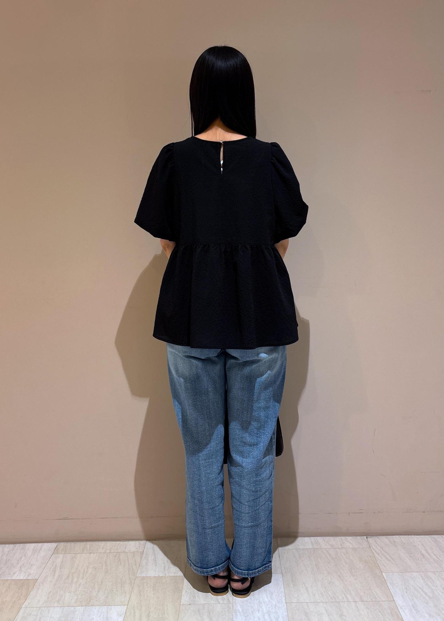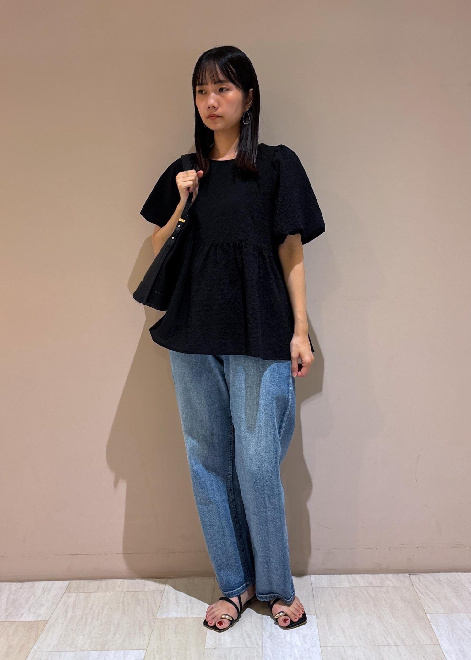 バルーン袖が二の腕を、ペプラムシルエットがお腹や腰まわりをカバーしてくれます。 -