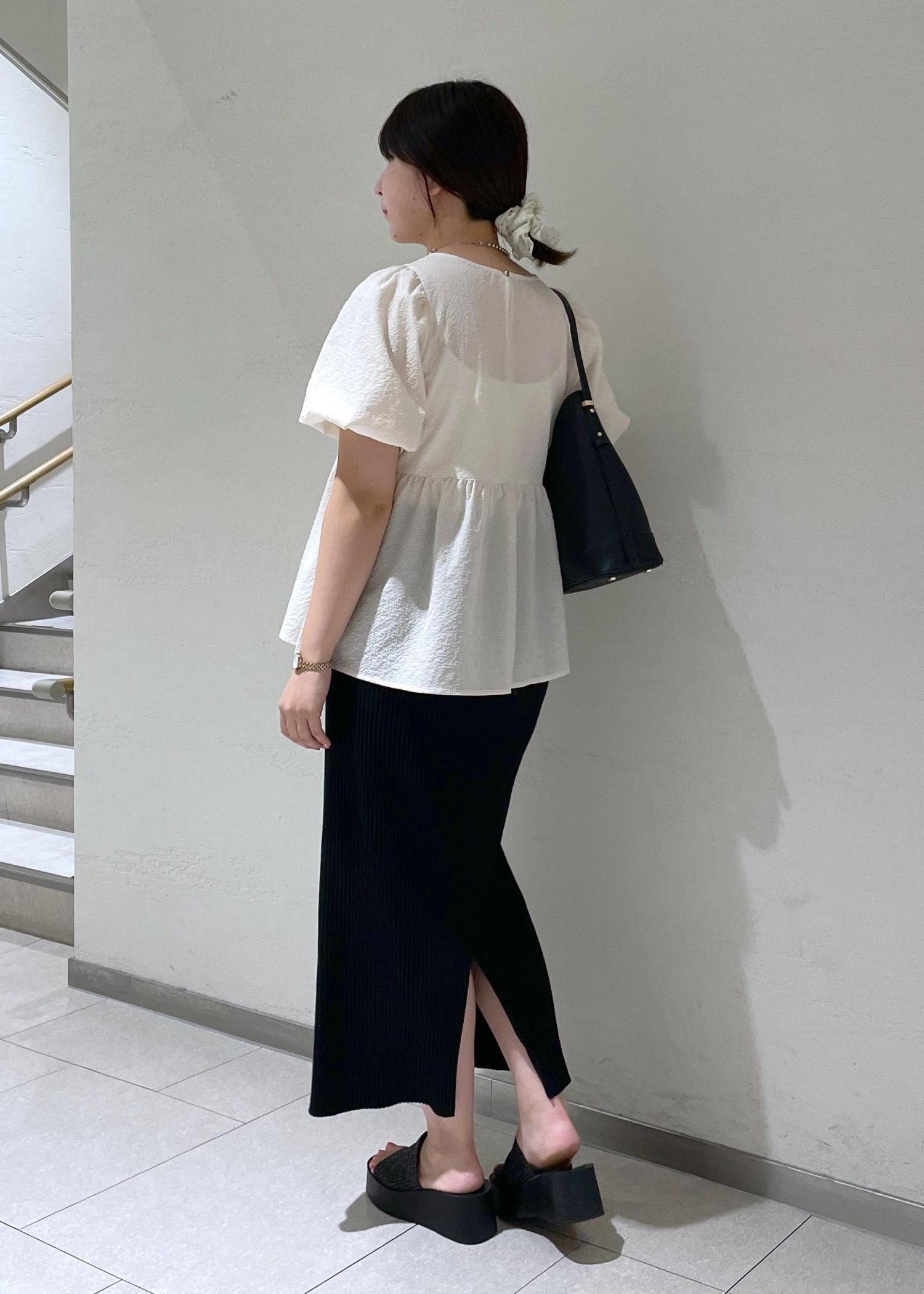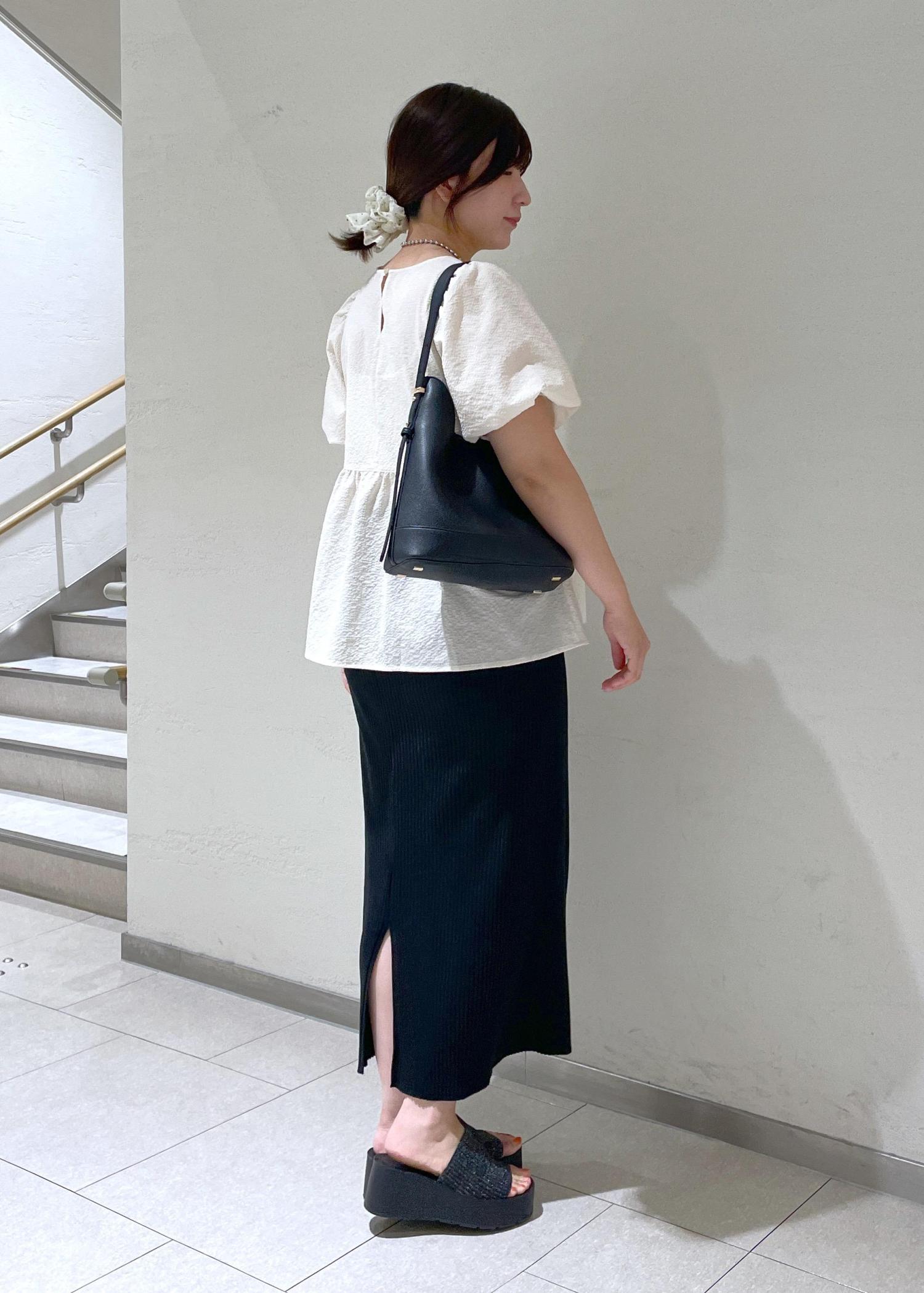 バルーン袖ブラウス×黒スカートコーデ