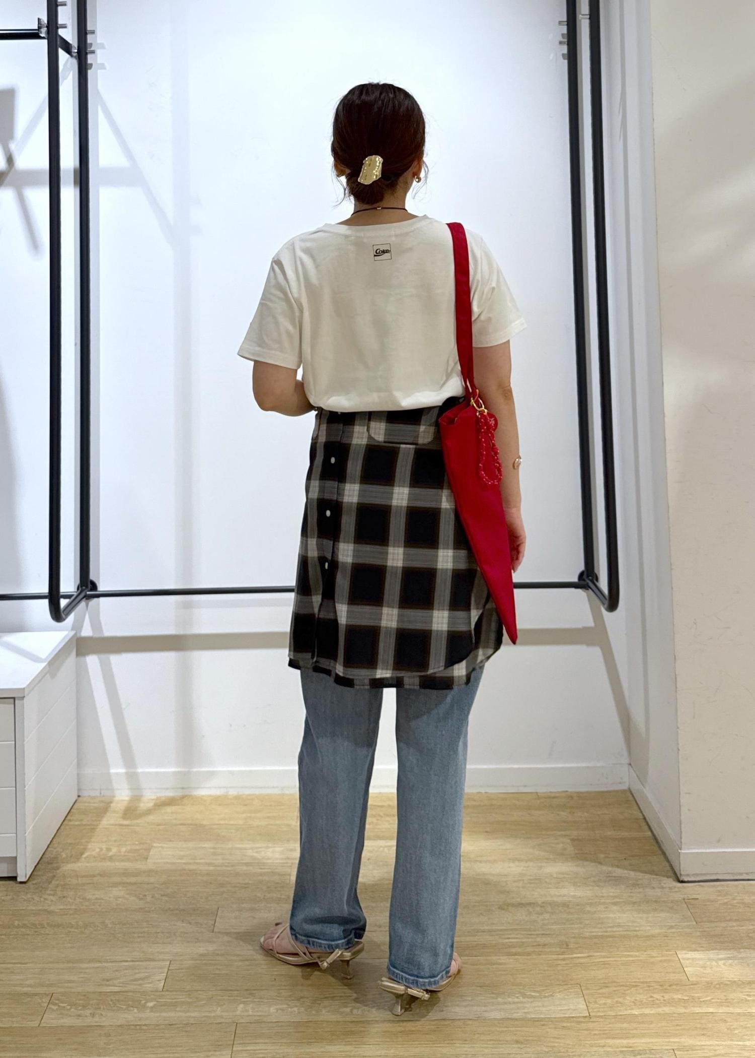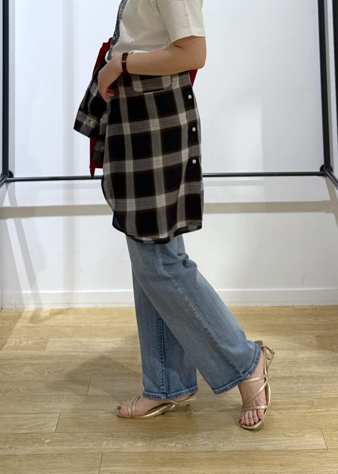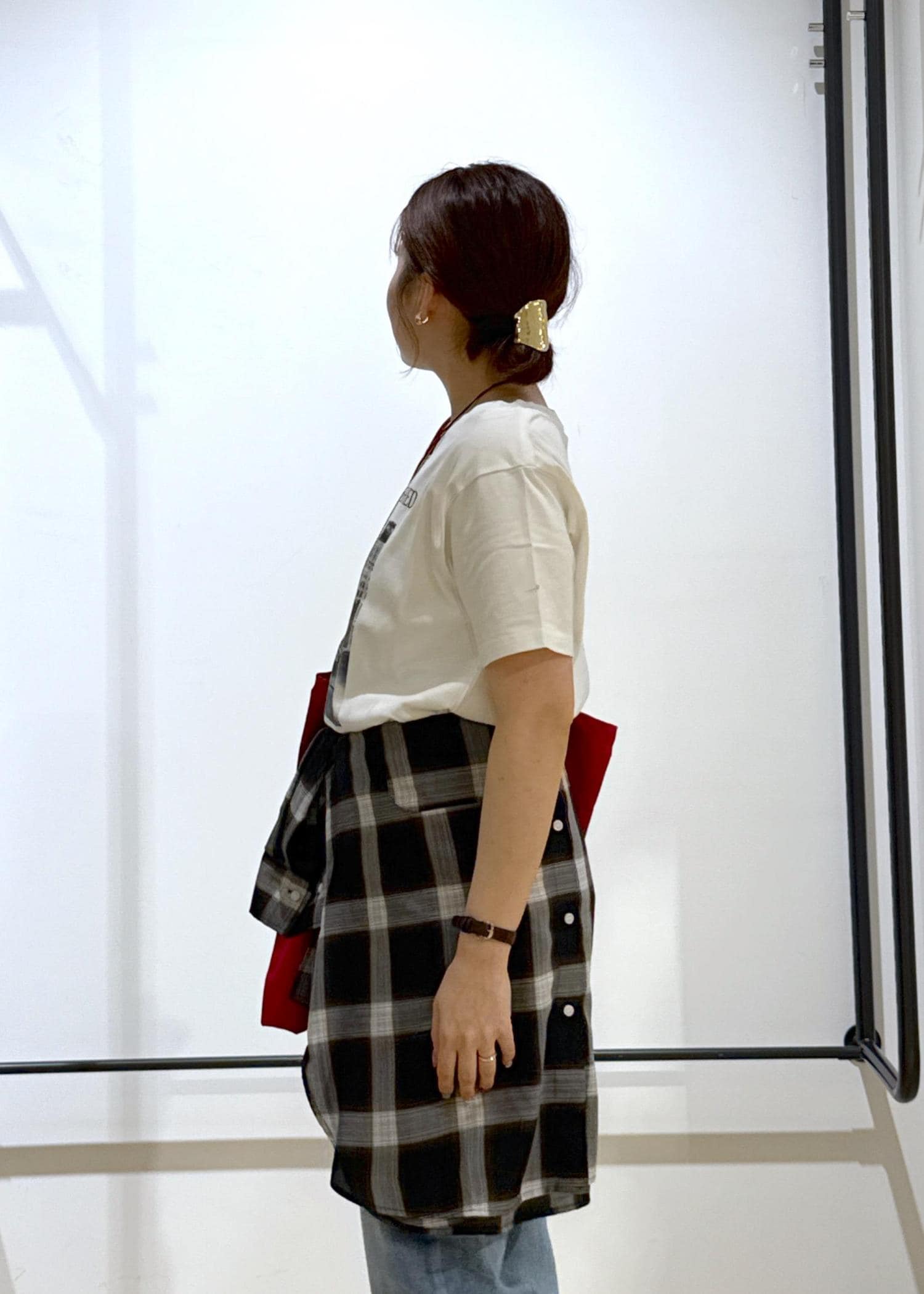 腰に巻いているシャツを羽織れば秋口まで長く使えるコーデです☺︎