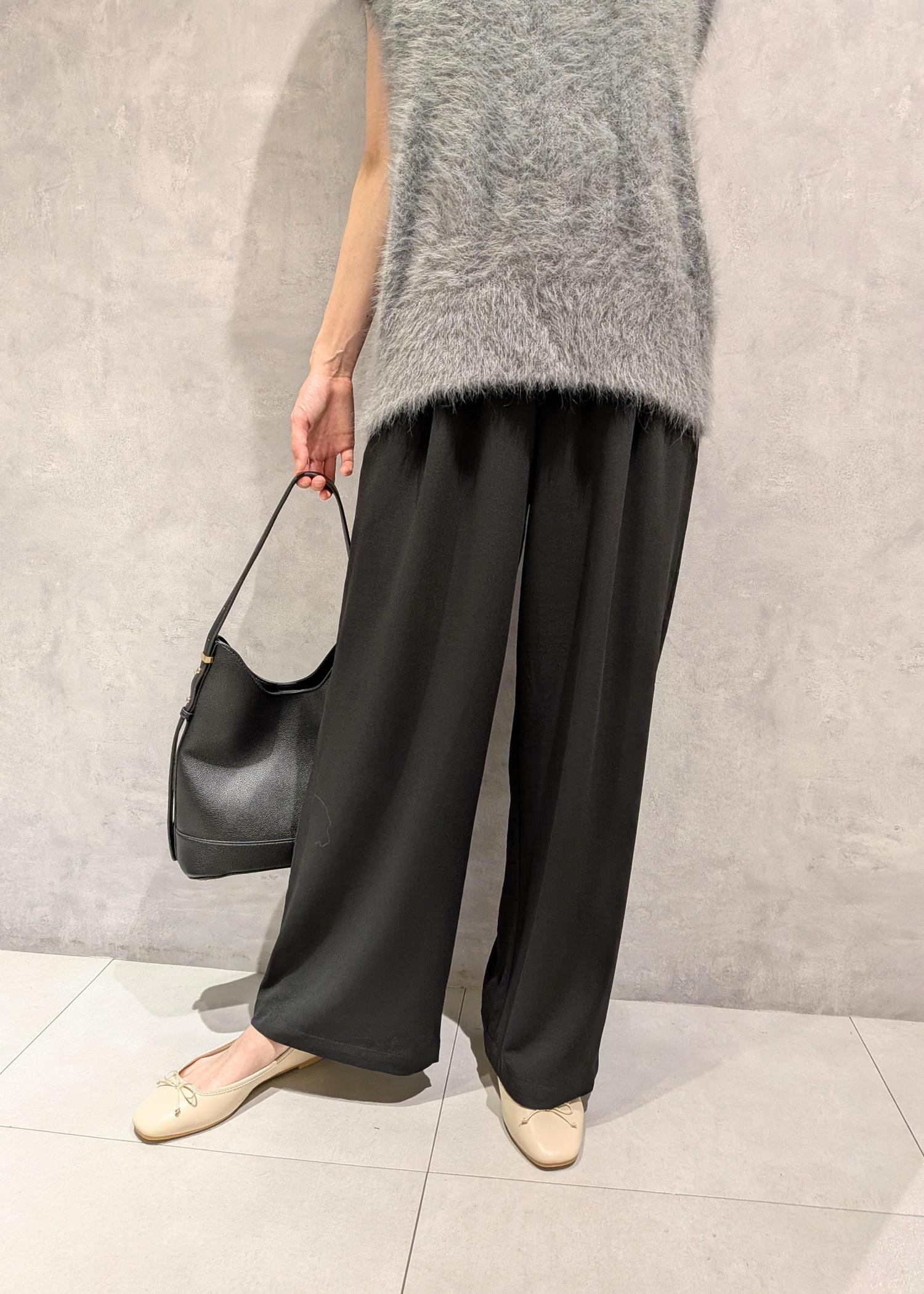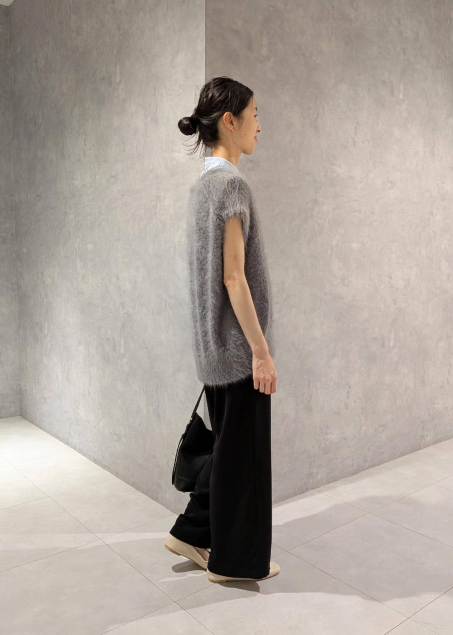 ワイドパンツと合わせて、リラックスしたキレイめな休日のコーディネートになりますよ。
