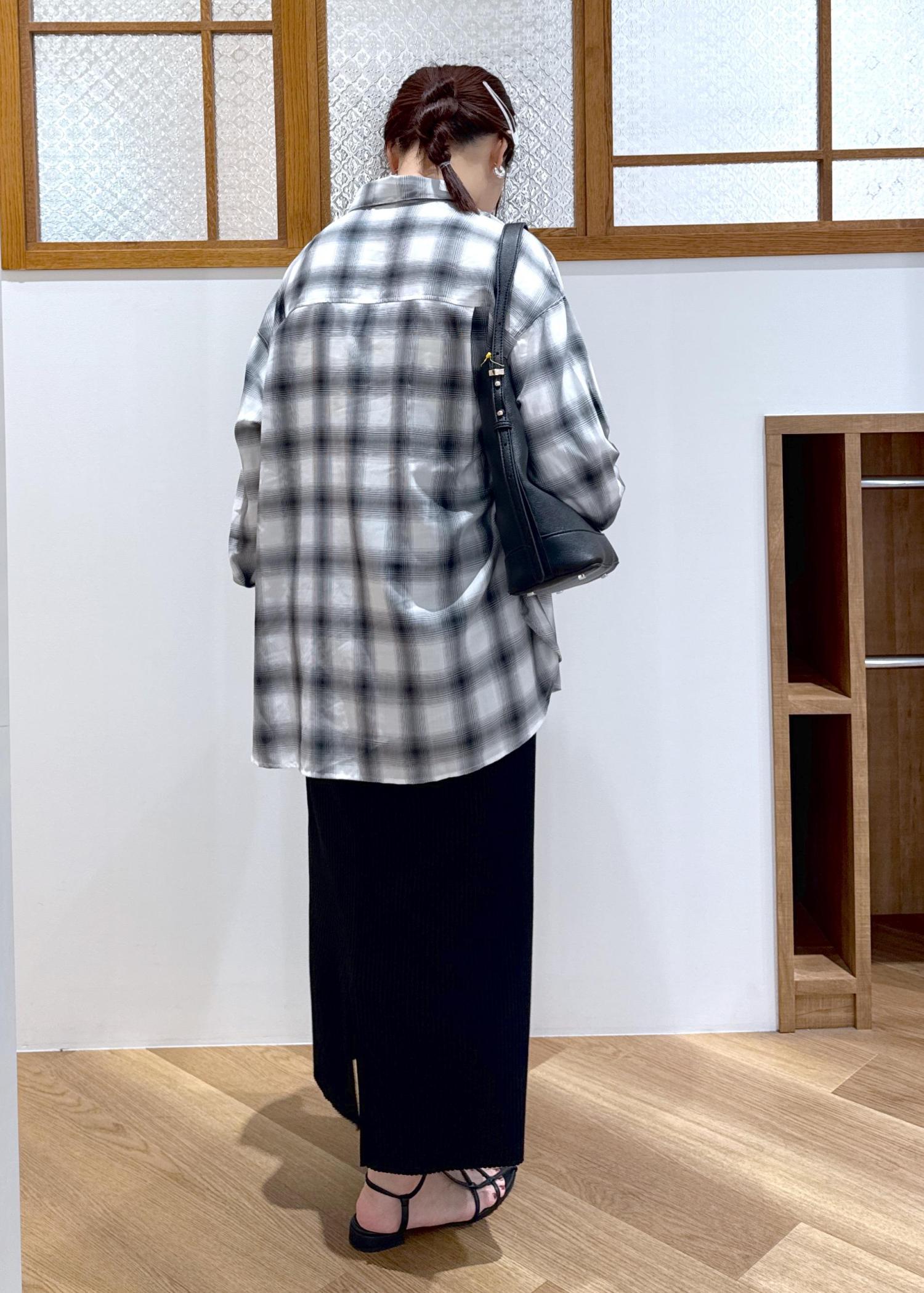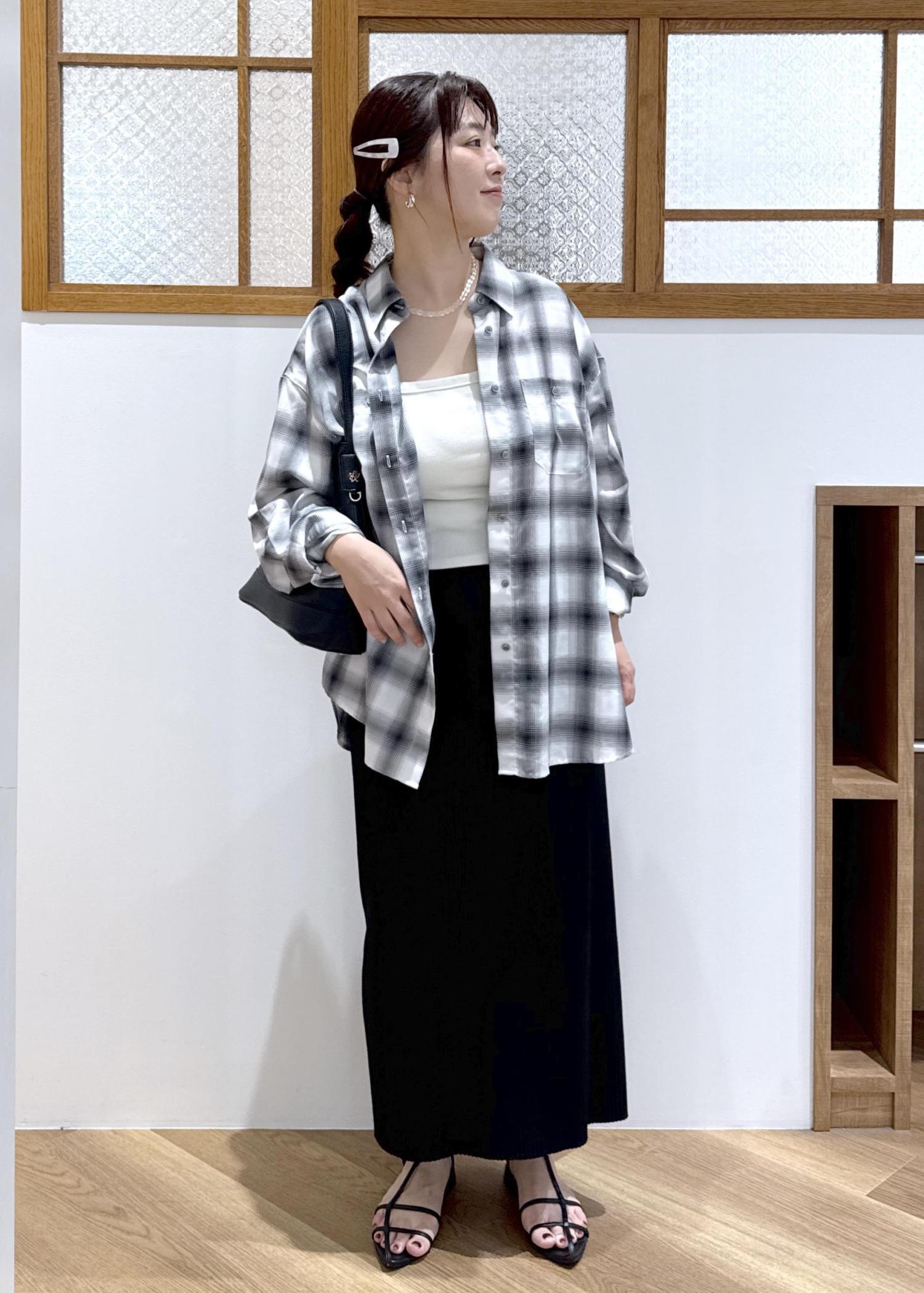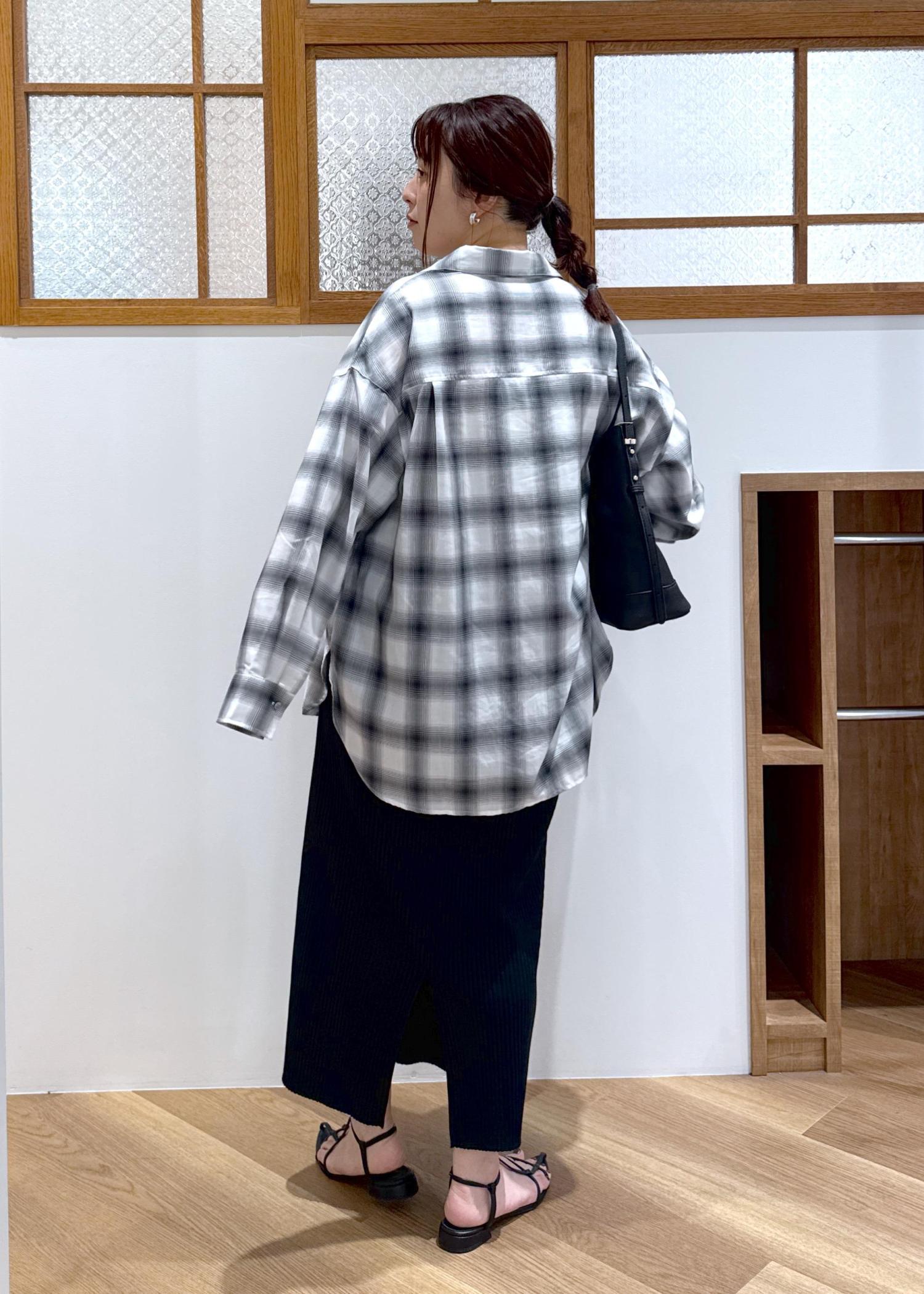 ロペピクニックのシャツはとろみがあり軽く、通気性も良いので、今は冷房・日差し対策で羽織使い、秋からはメインで使えるアイテムです。