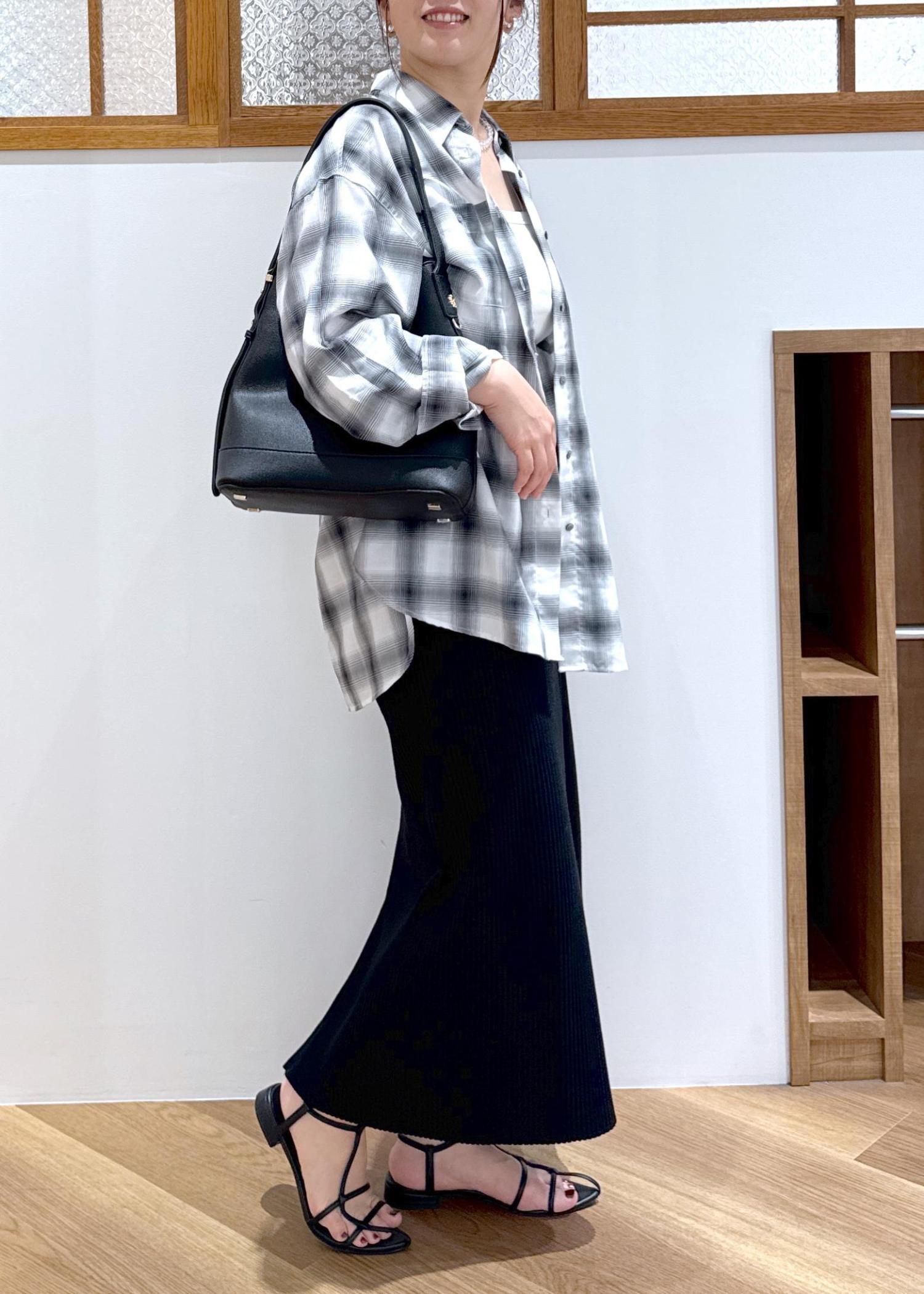 ブラックのリブ生地は季節問わず使えるので、持っていて損ないアイテムです! -