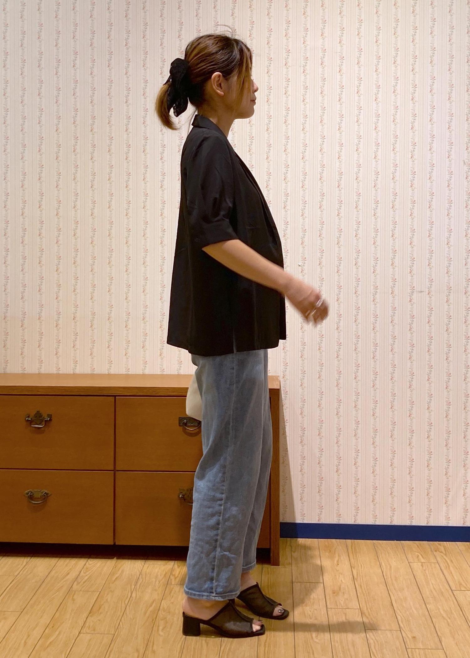 丈感はおしりにかかるくらいのやや長めの着丈です。