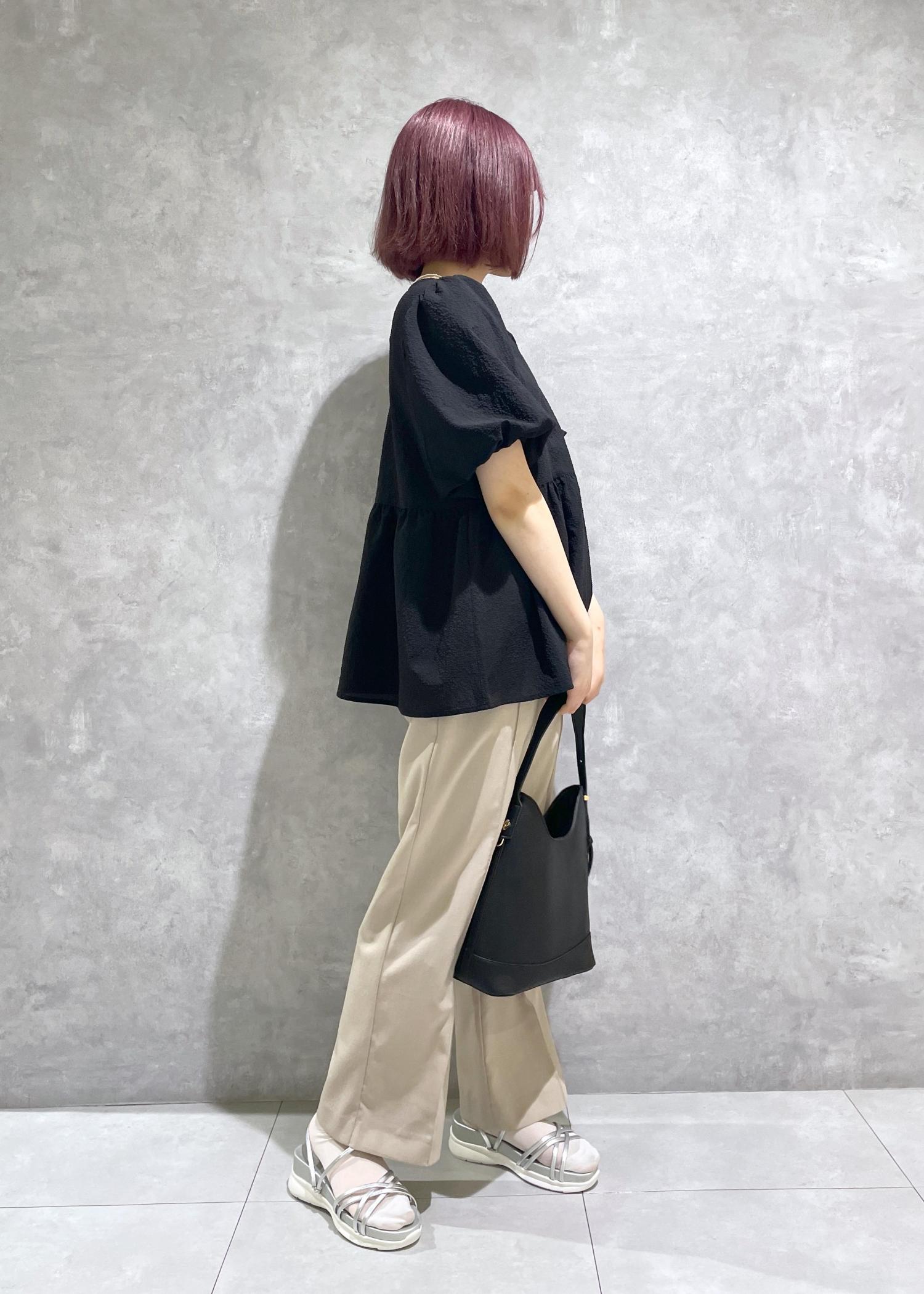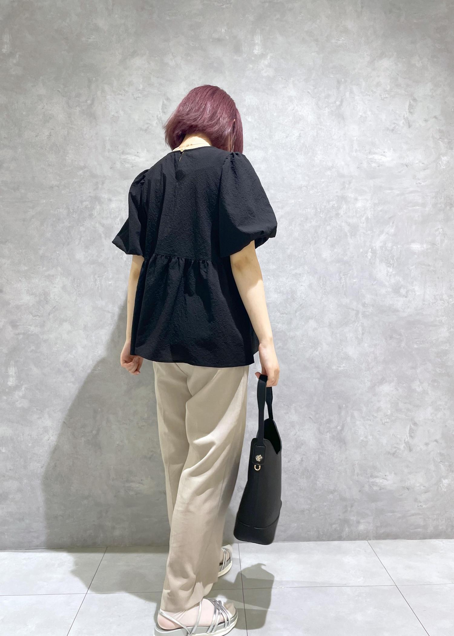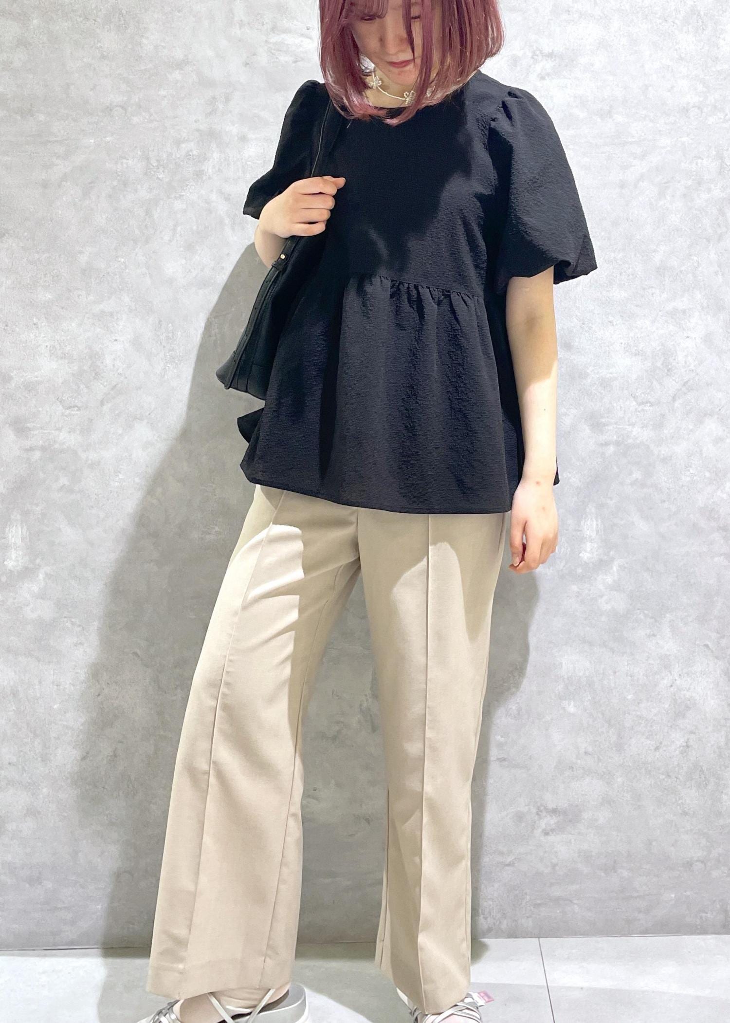 バルーンシルエットが可愛いブラウスを使ったコーディネート。