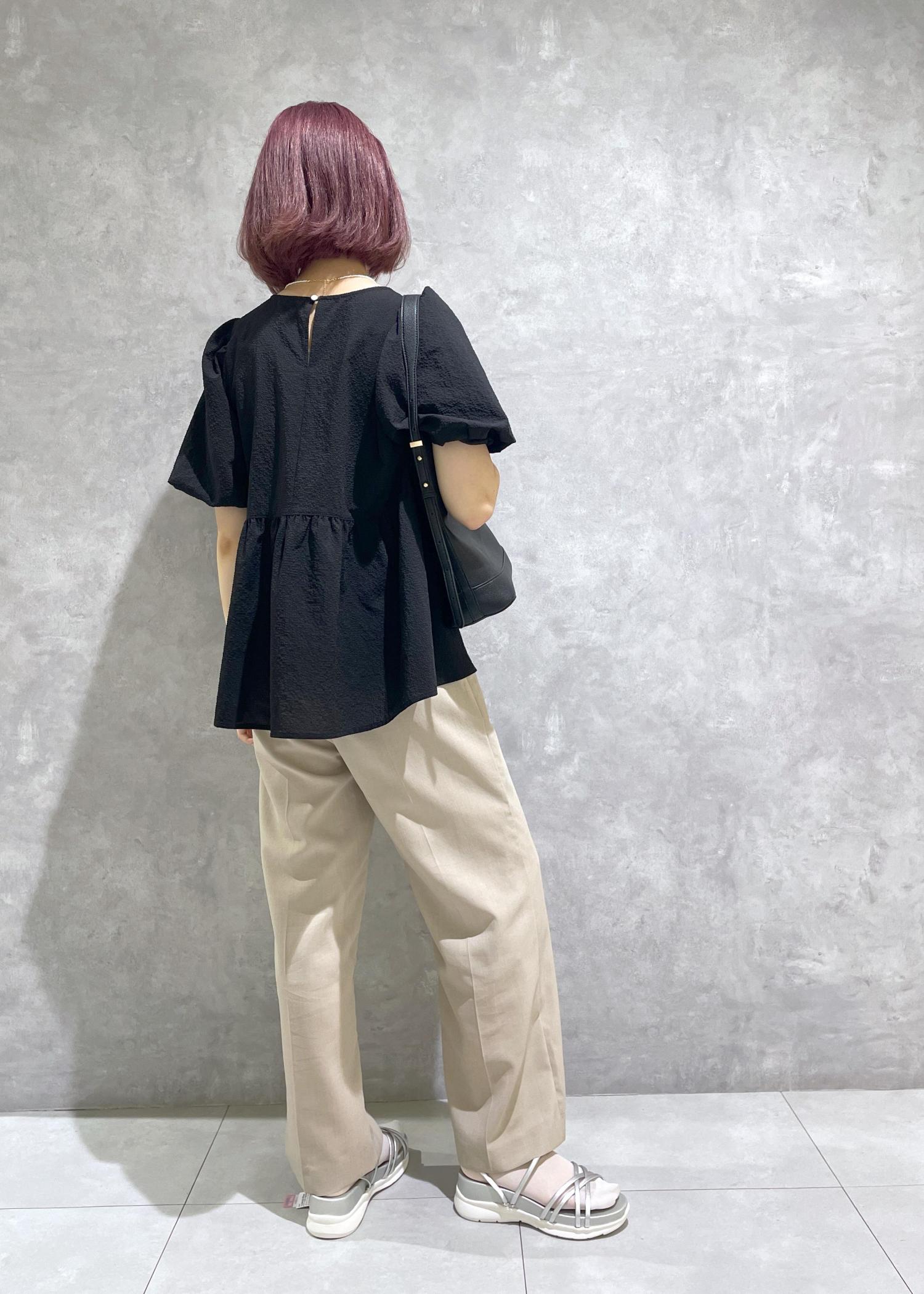 ふんわりシルエットのペプラムブラウスが主役のコーデ
