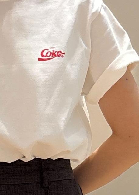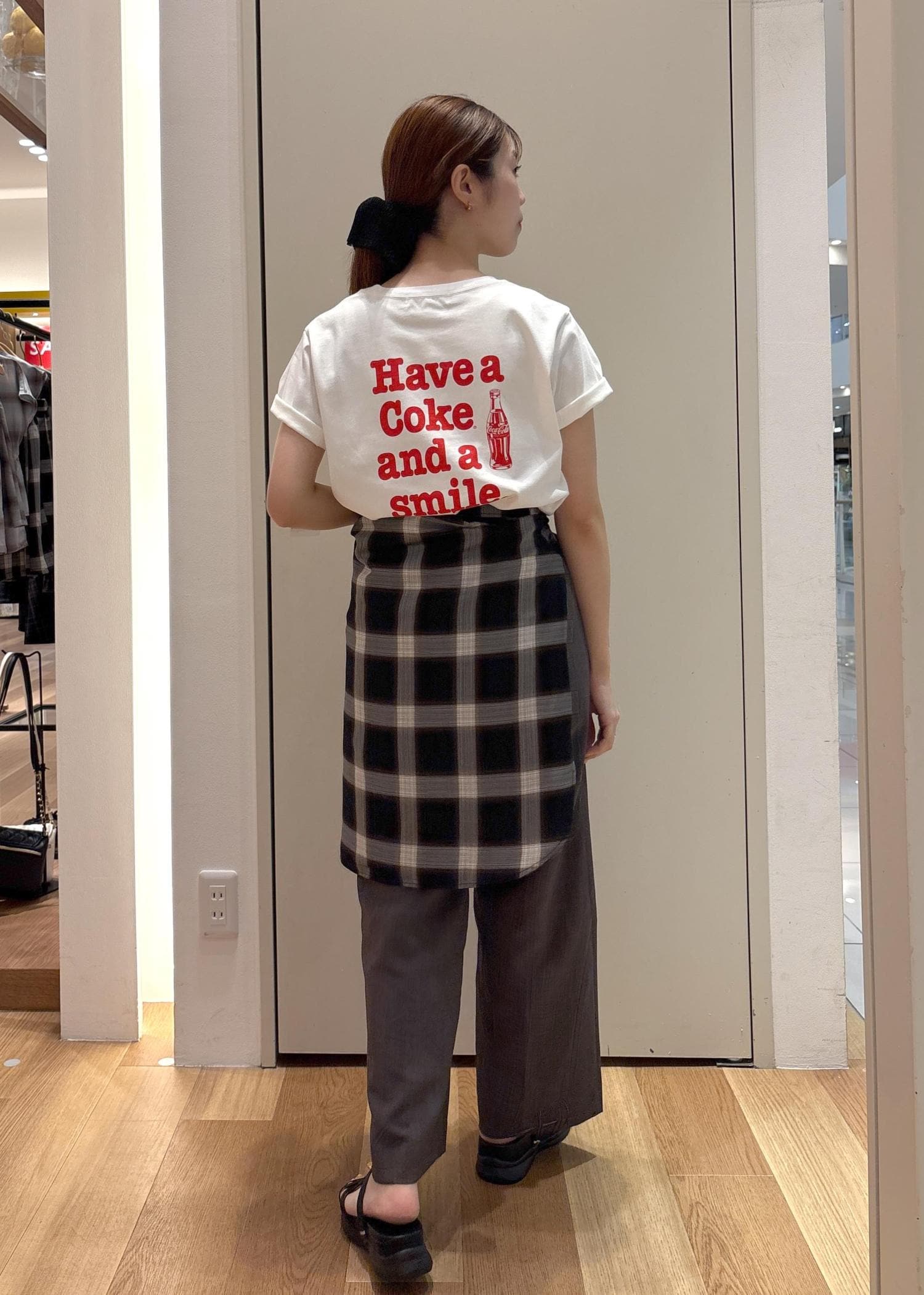 コカコーラコラボTシャツで、大人でも安心して着やすいコーデにしてみました。