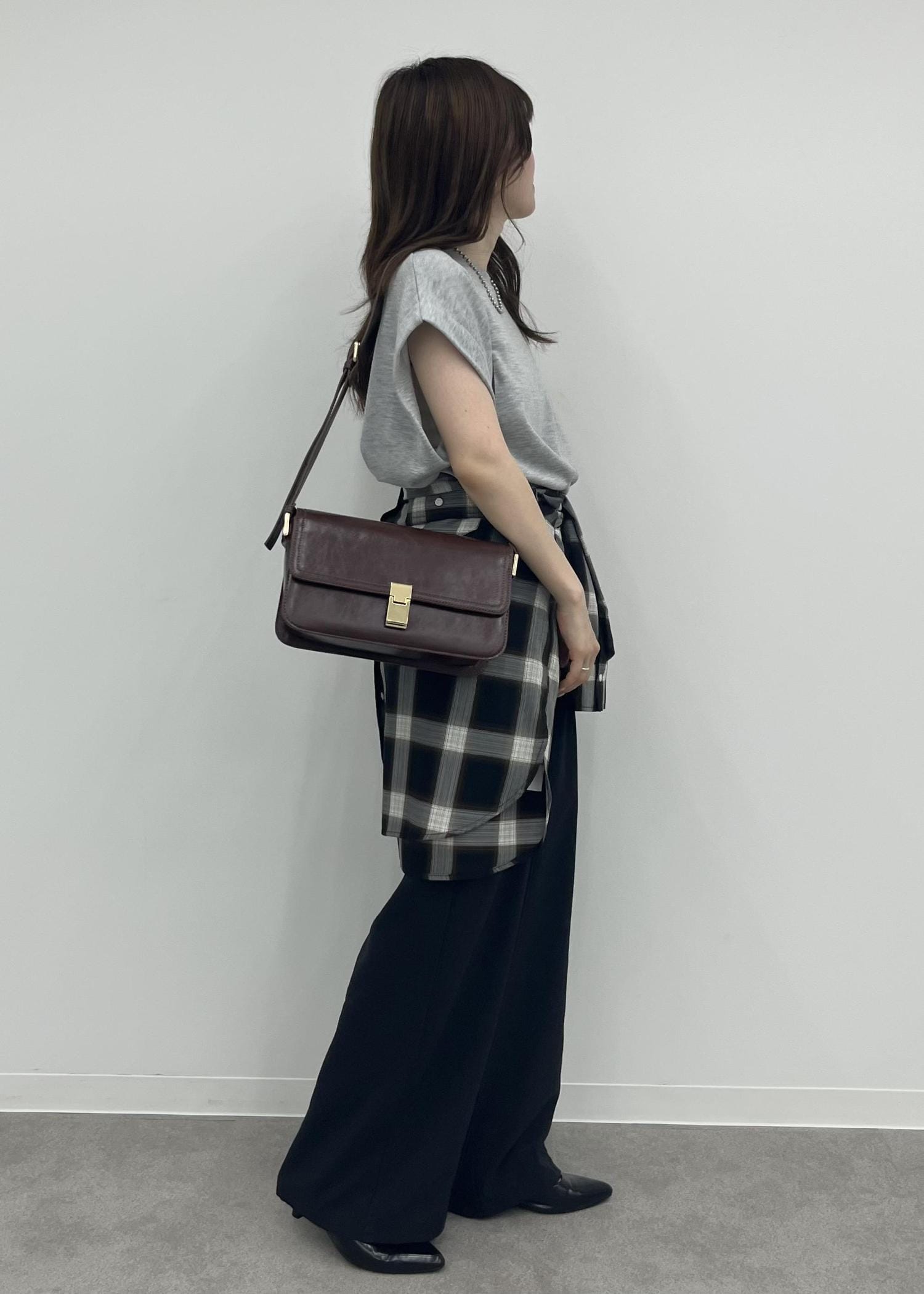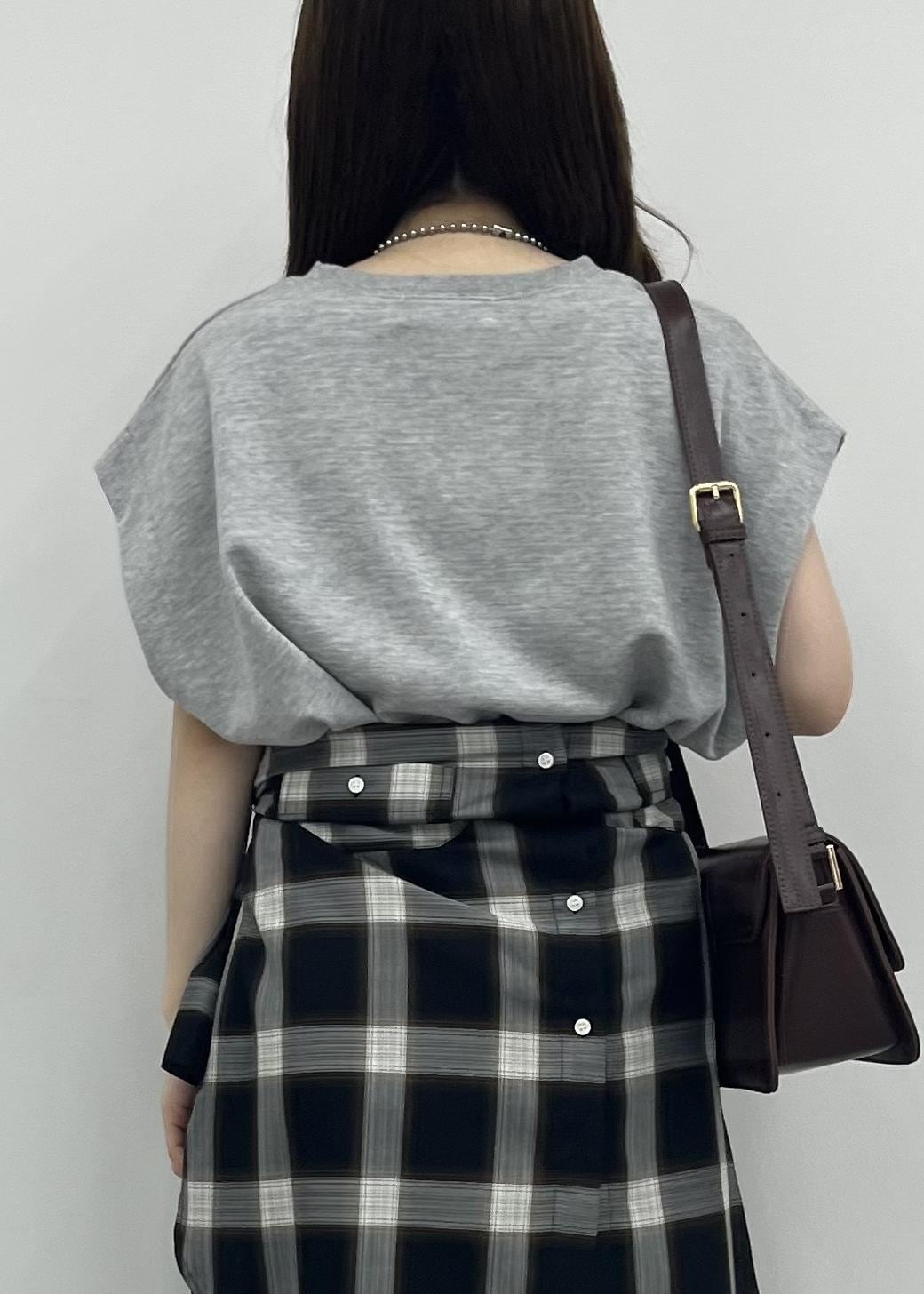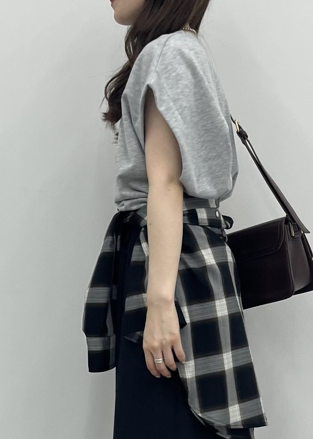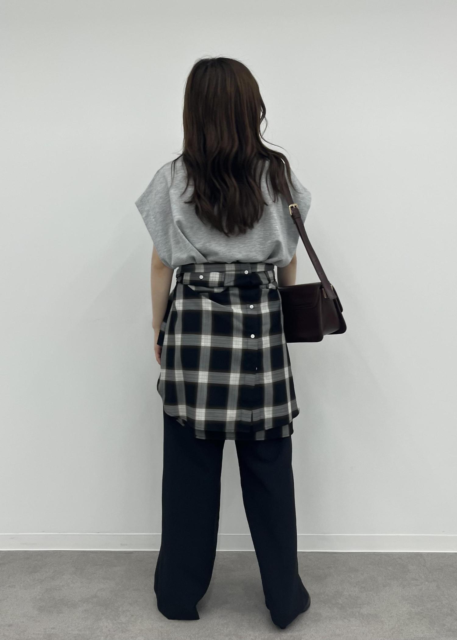 チェックシャツを腰巻きするとこなれ感が出るのでおすすめです。