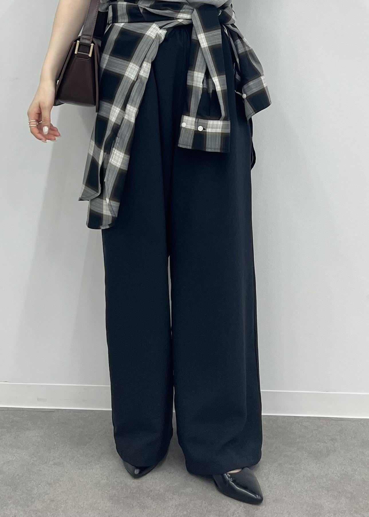 ワイドパンツですが落ち感があるのでフレアなトップスにもバランスよく合わせられます。